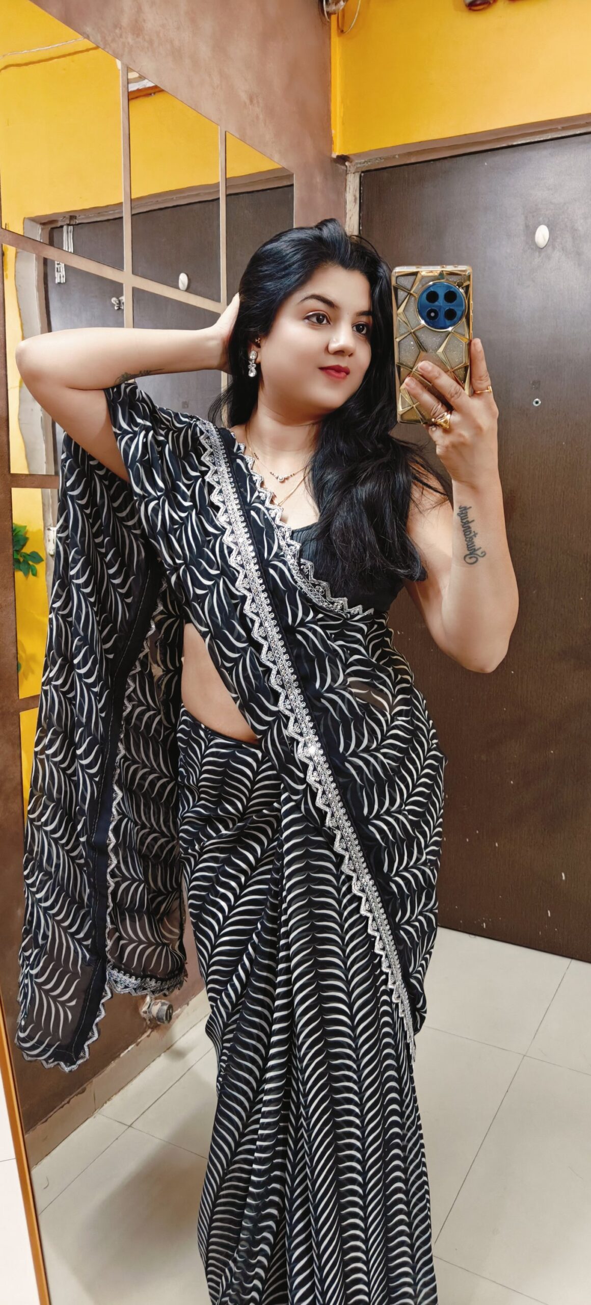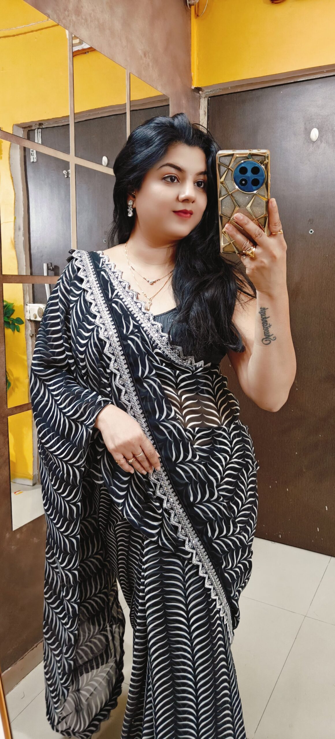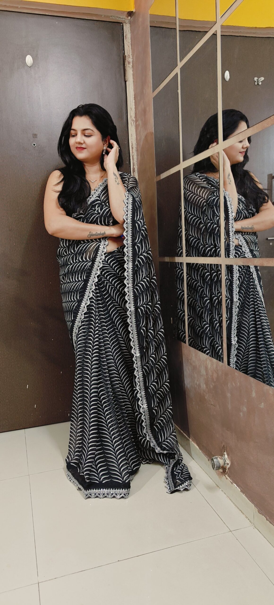Lehriya Georgette printed saree with heavy sequence work lace border