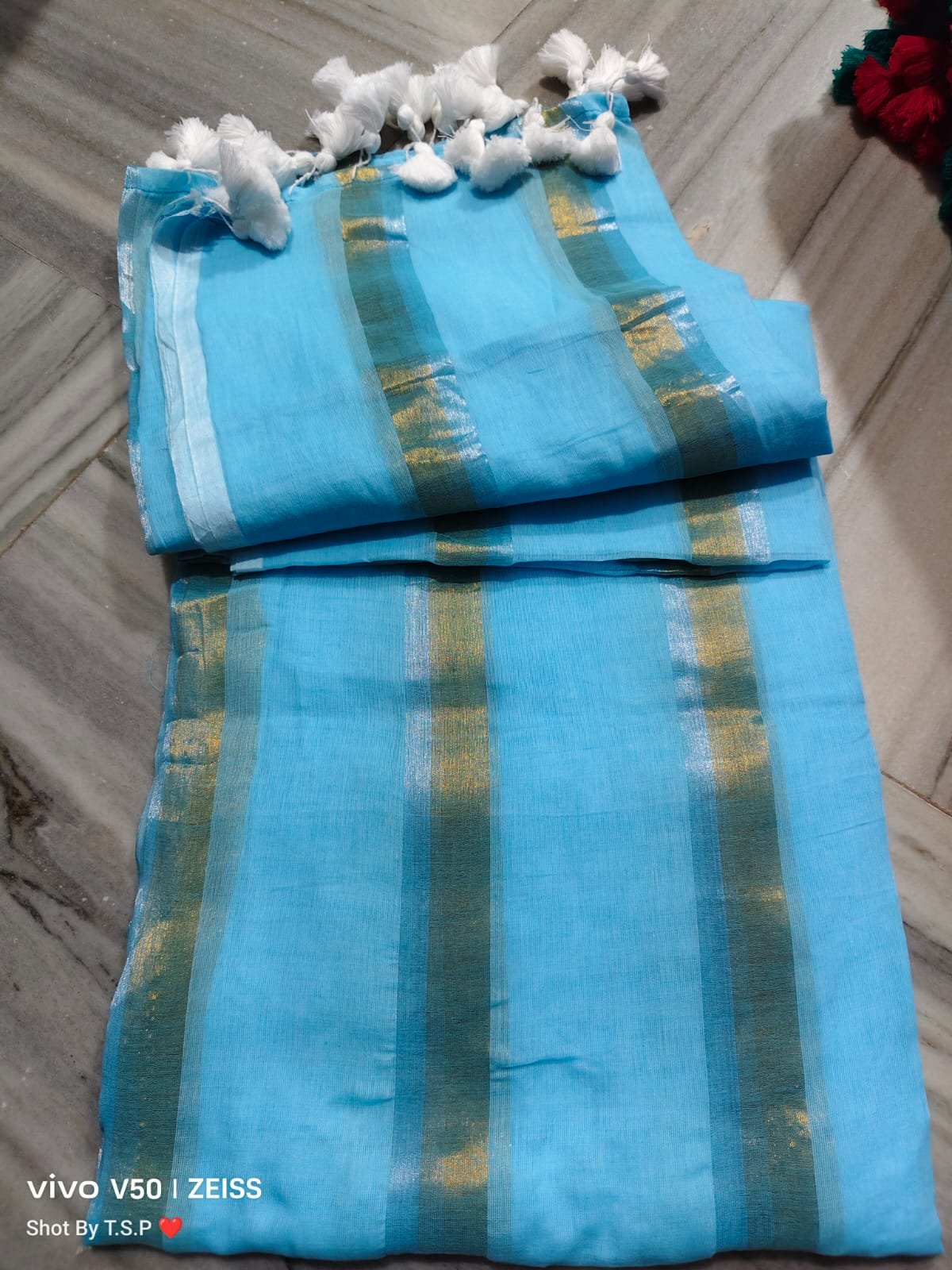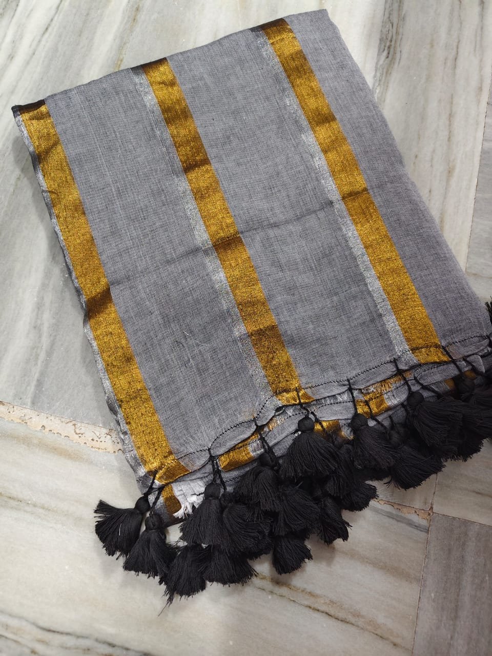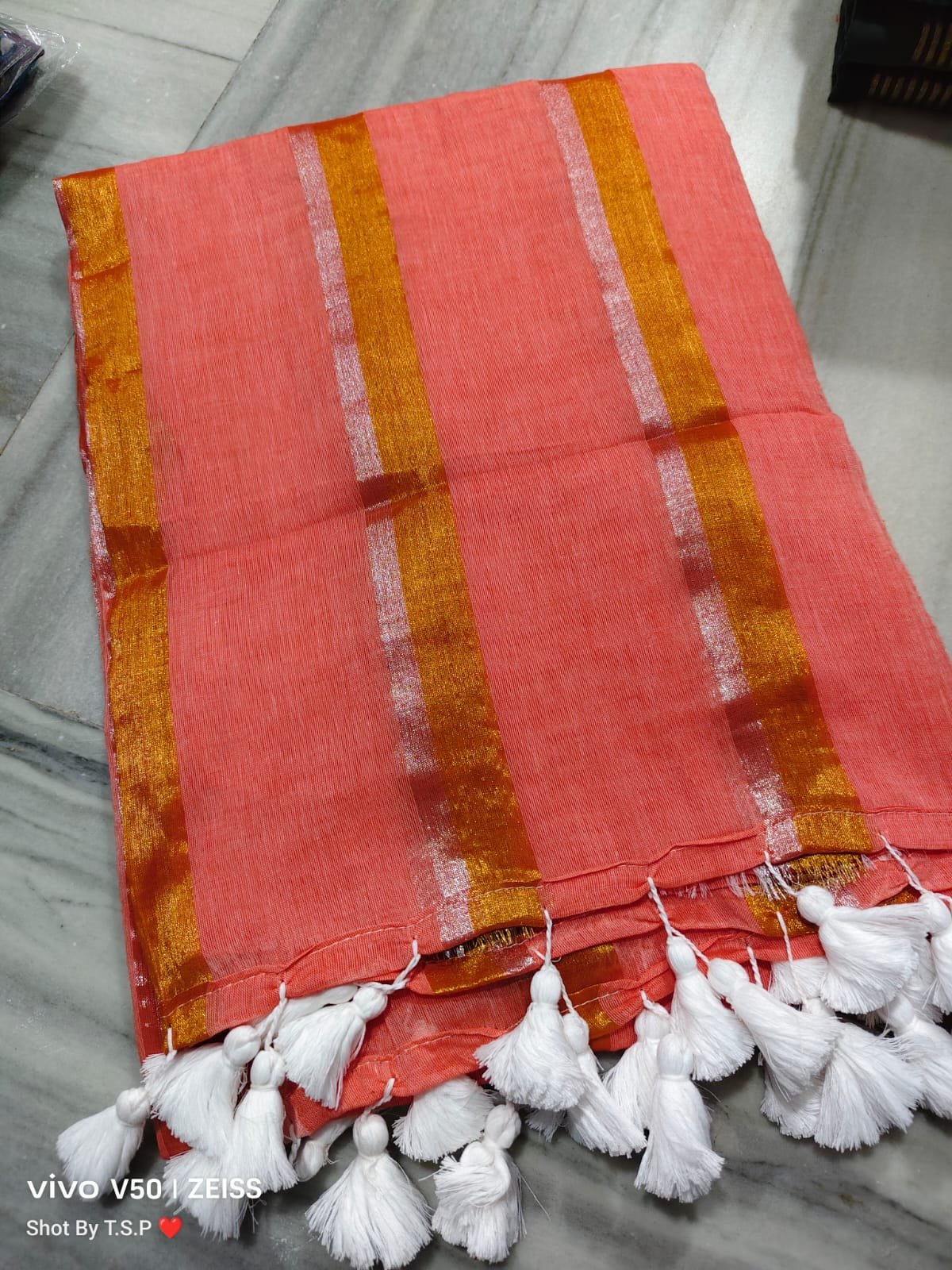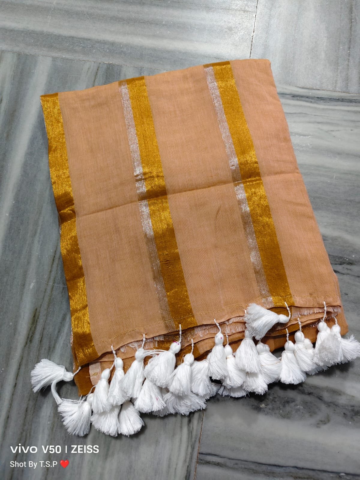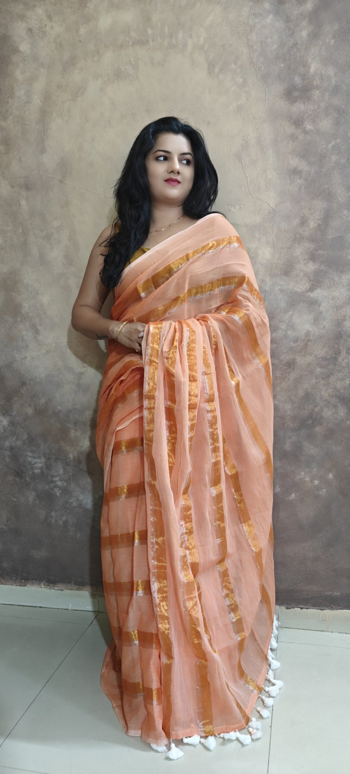 Mul cotton with golden Striped Saree