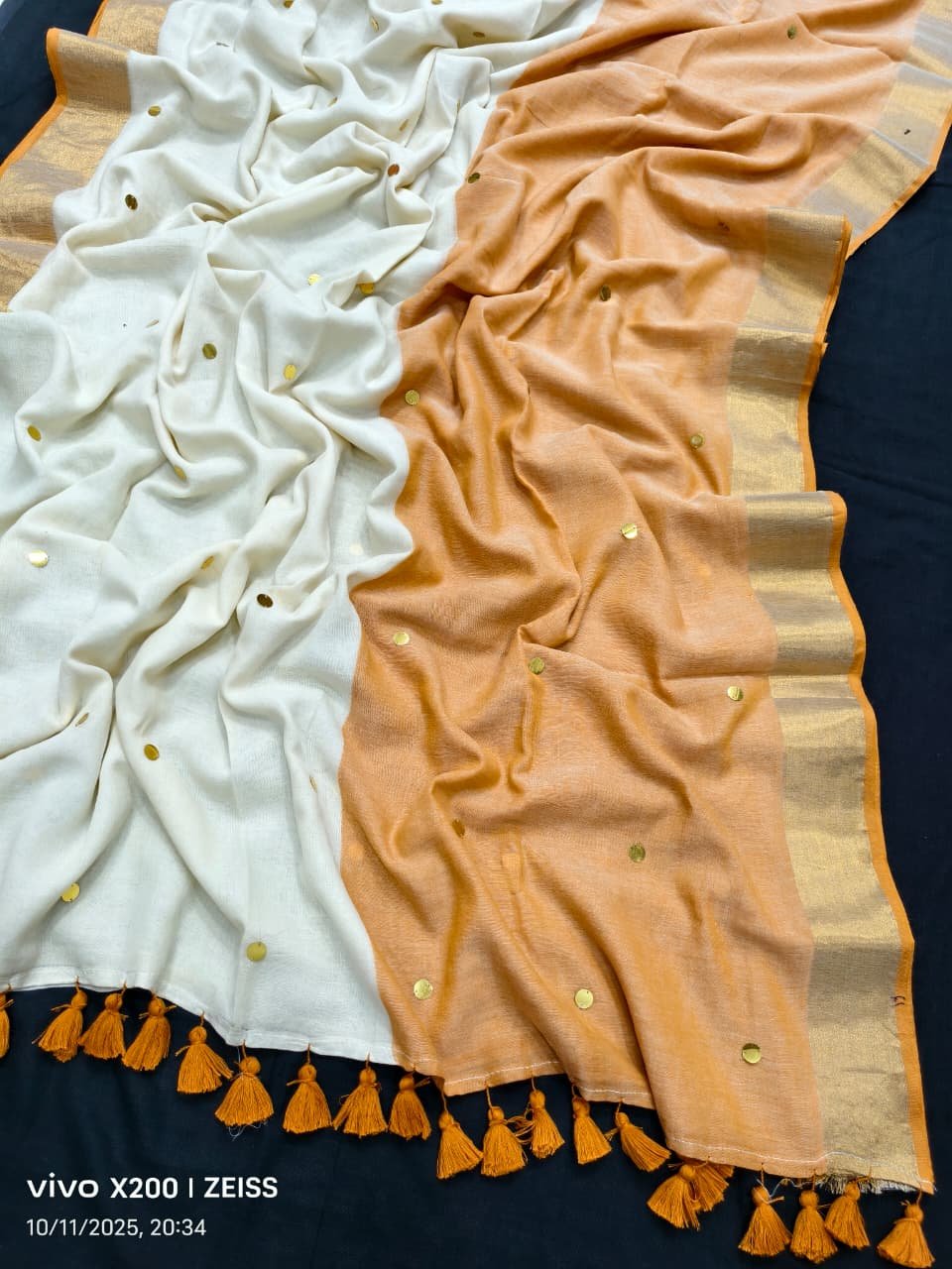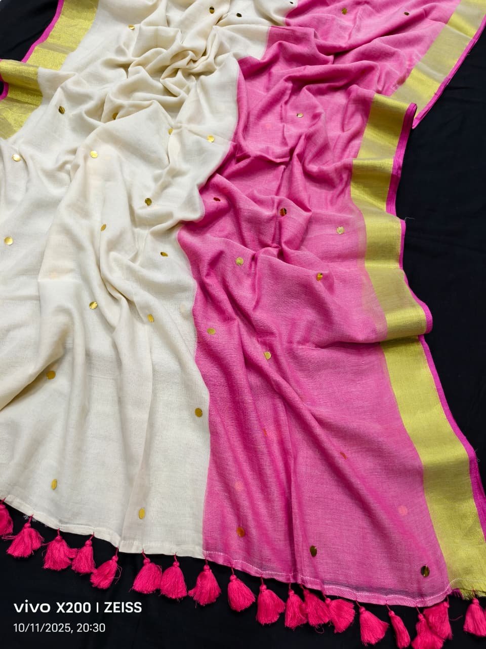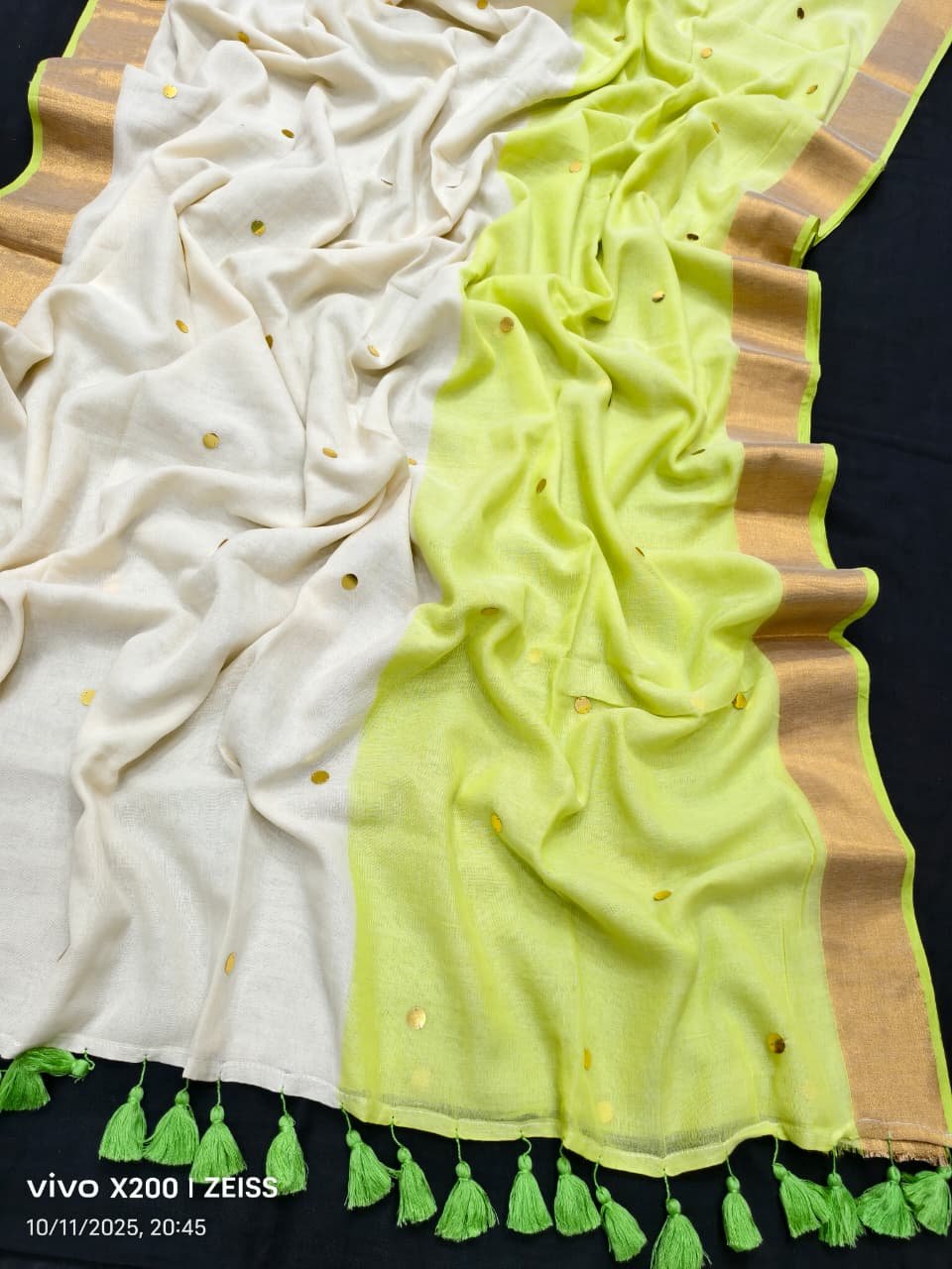 Pure mul cotton half n half two colour Saree with Ginni work
