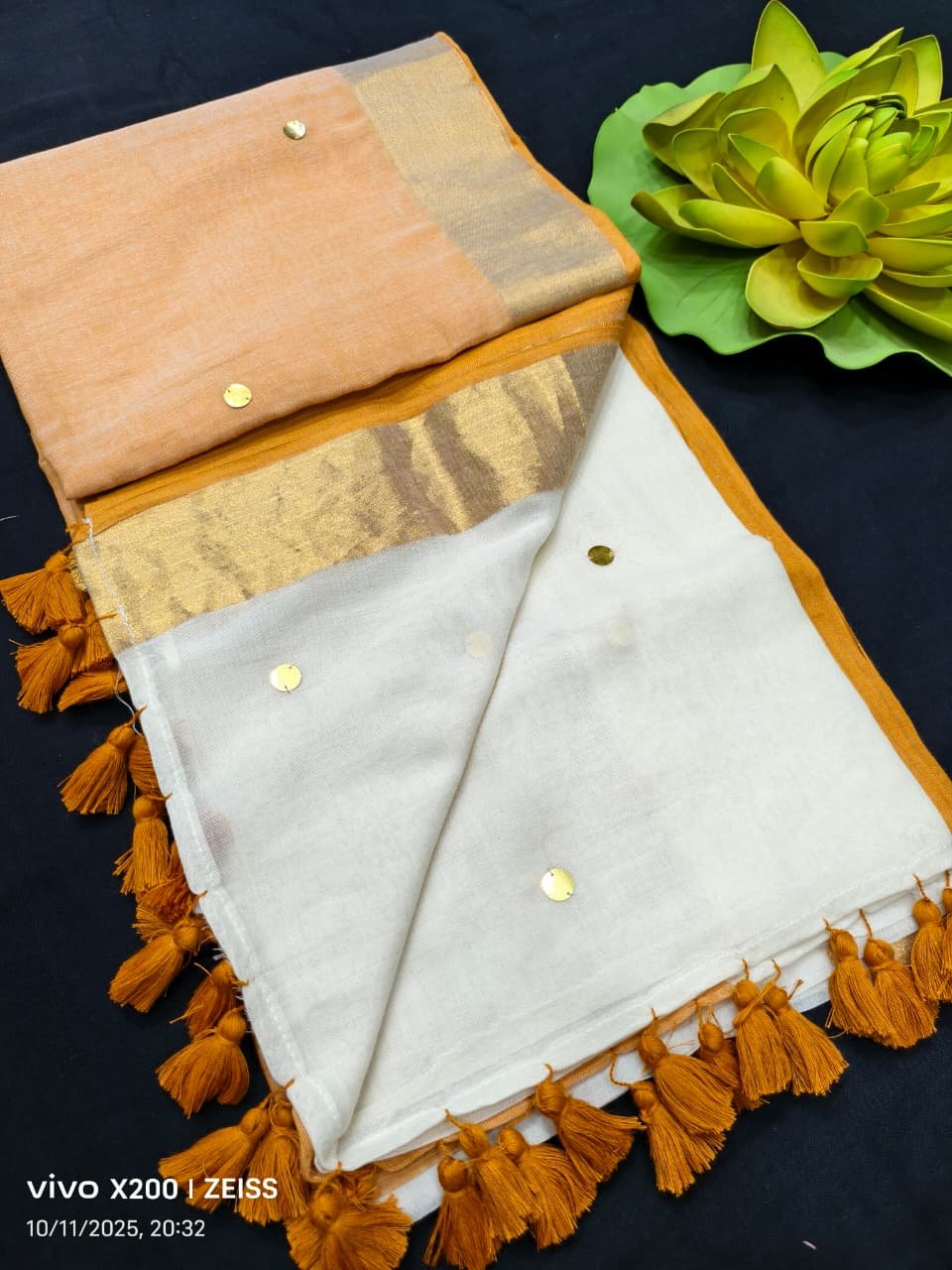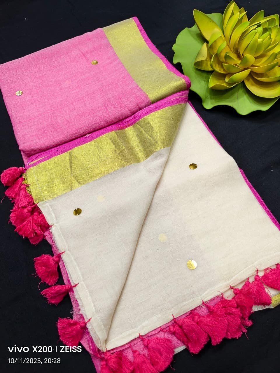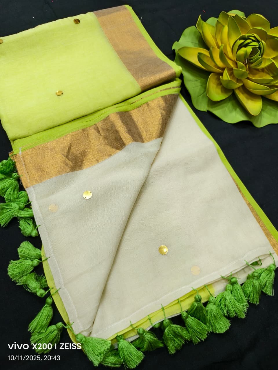 Pure mul cotton half n half two colour Saree with Ginni work