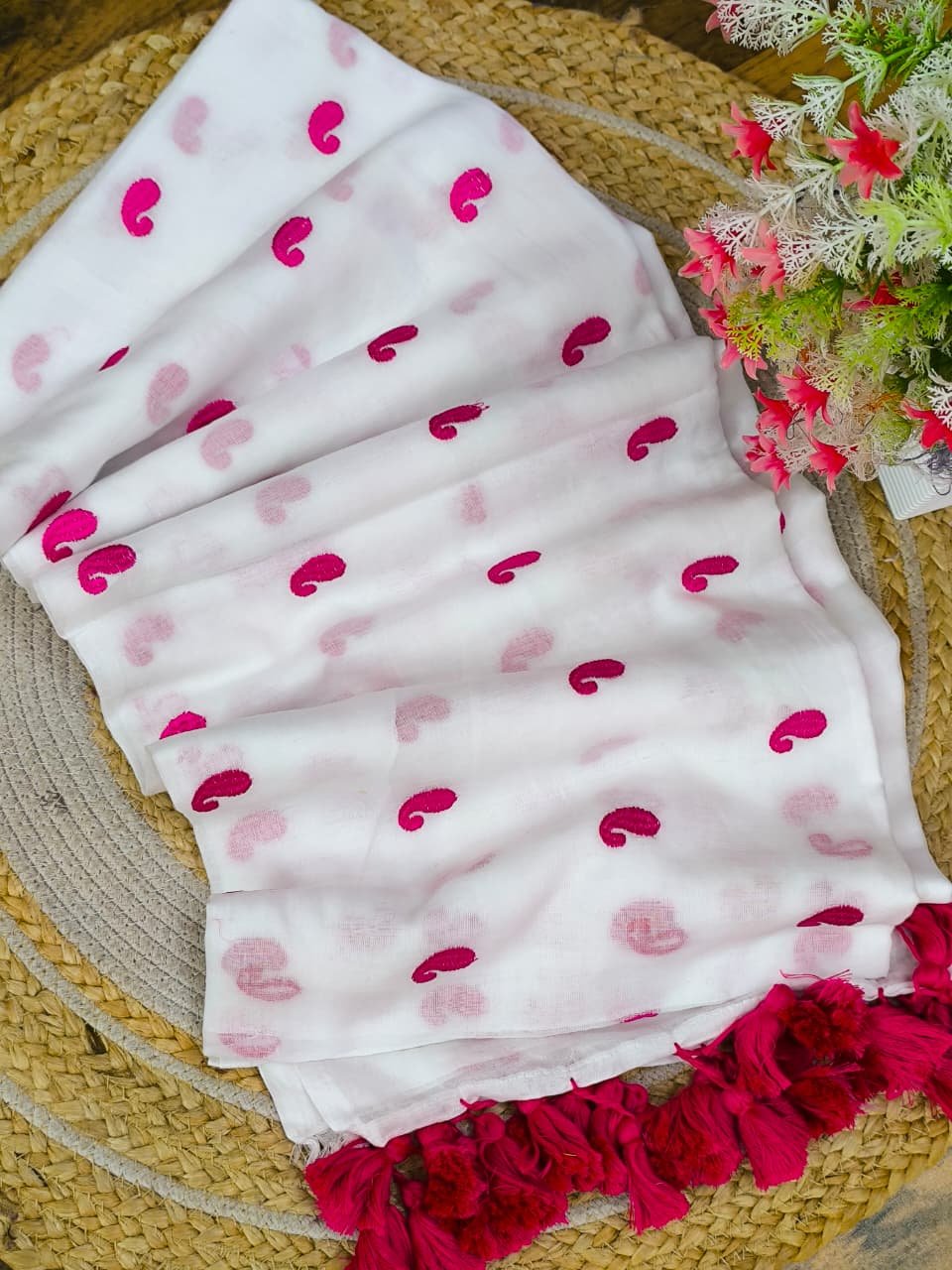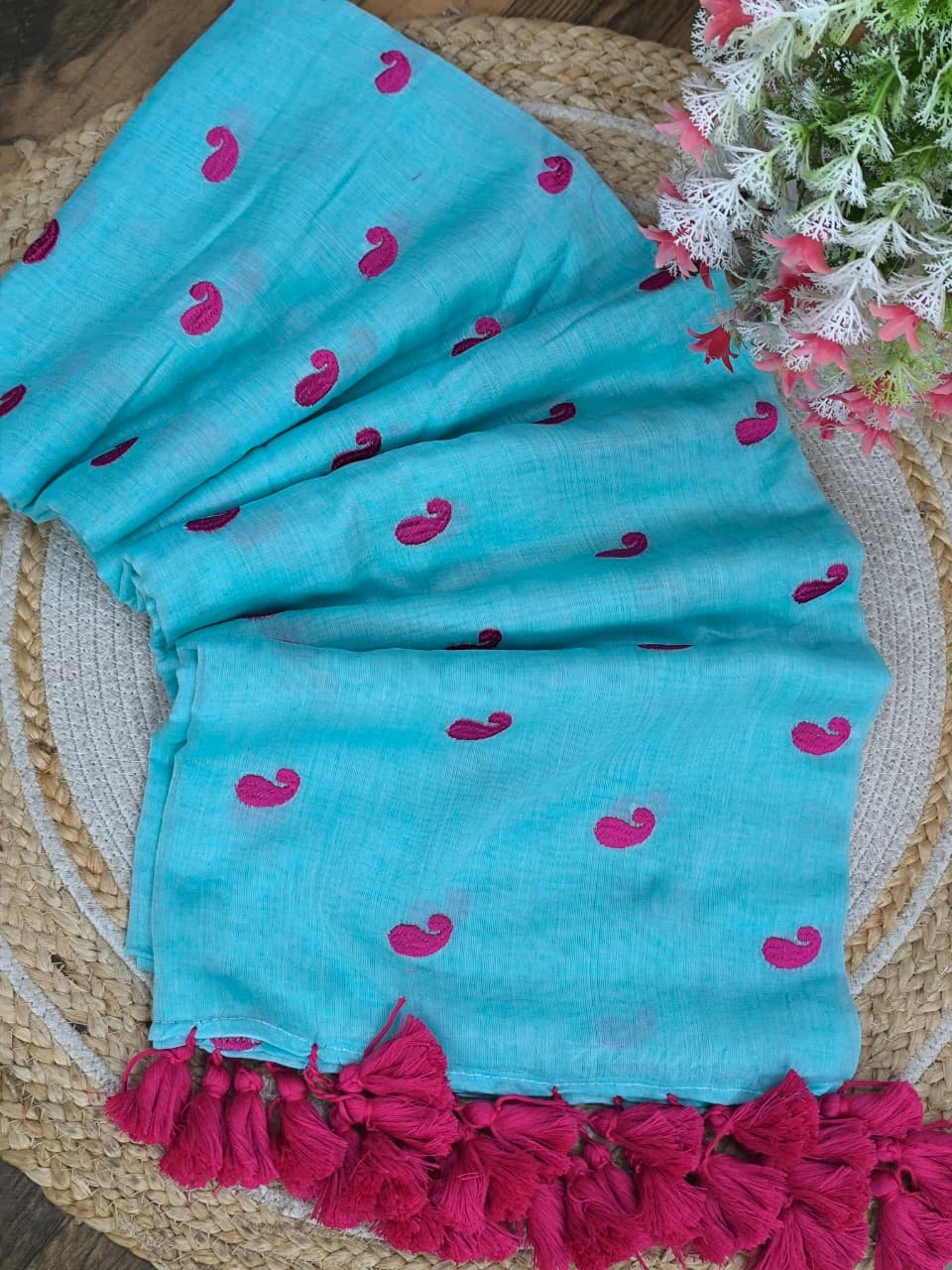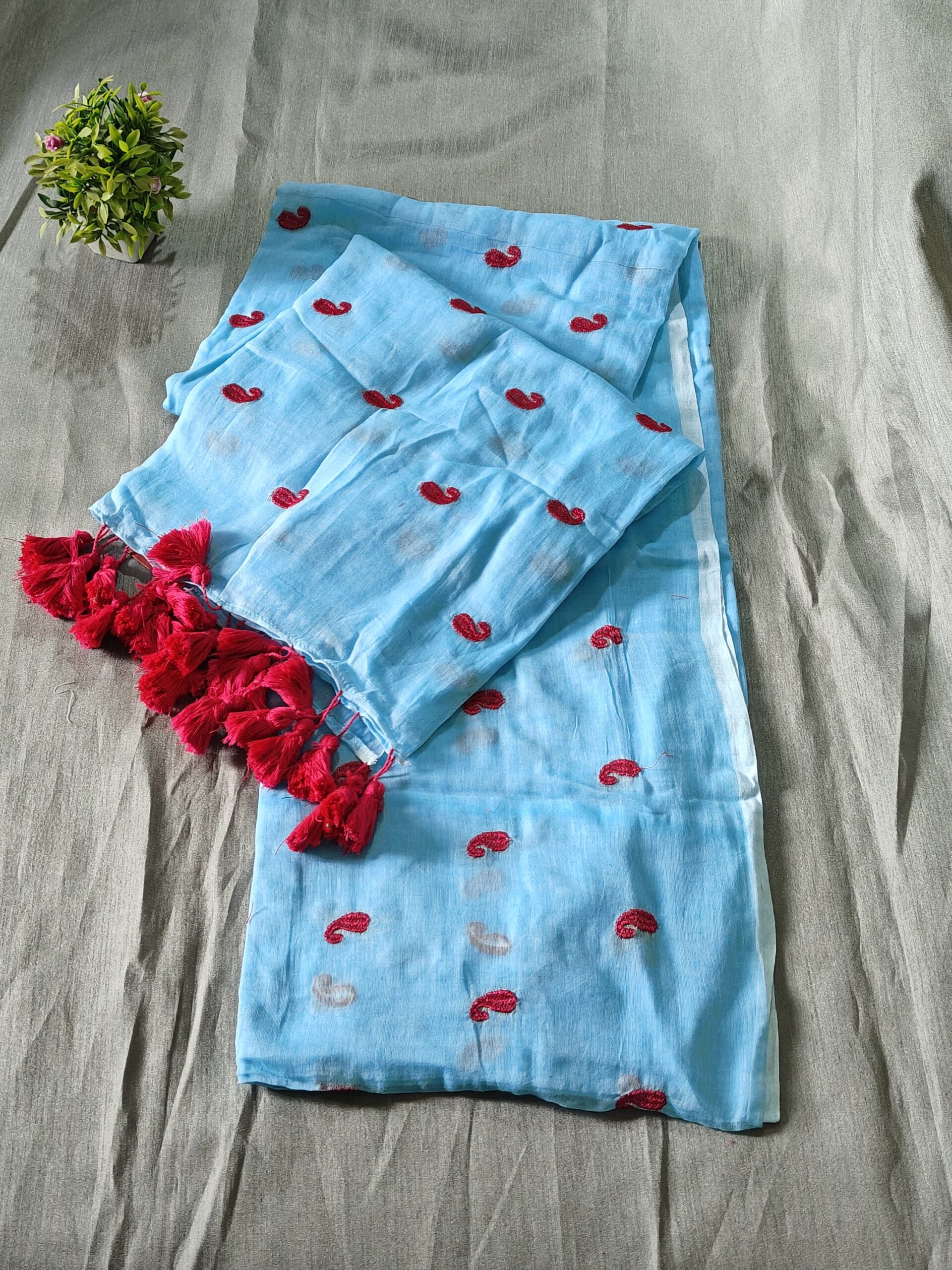 Pure Mul cotton Saree with koyari butta embroidery work all over saree