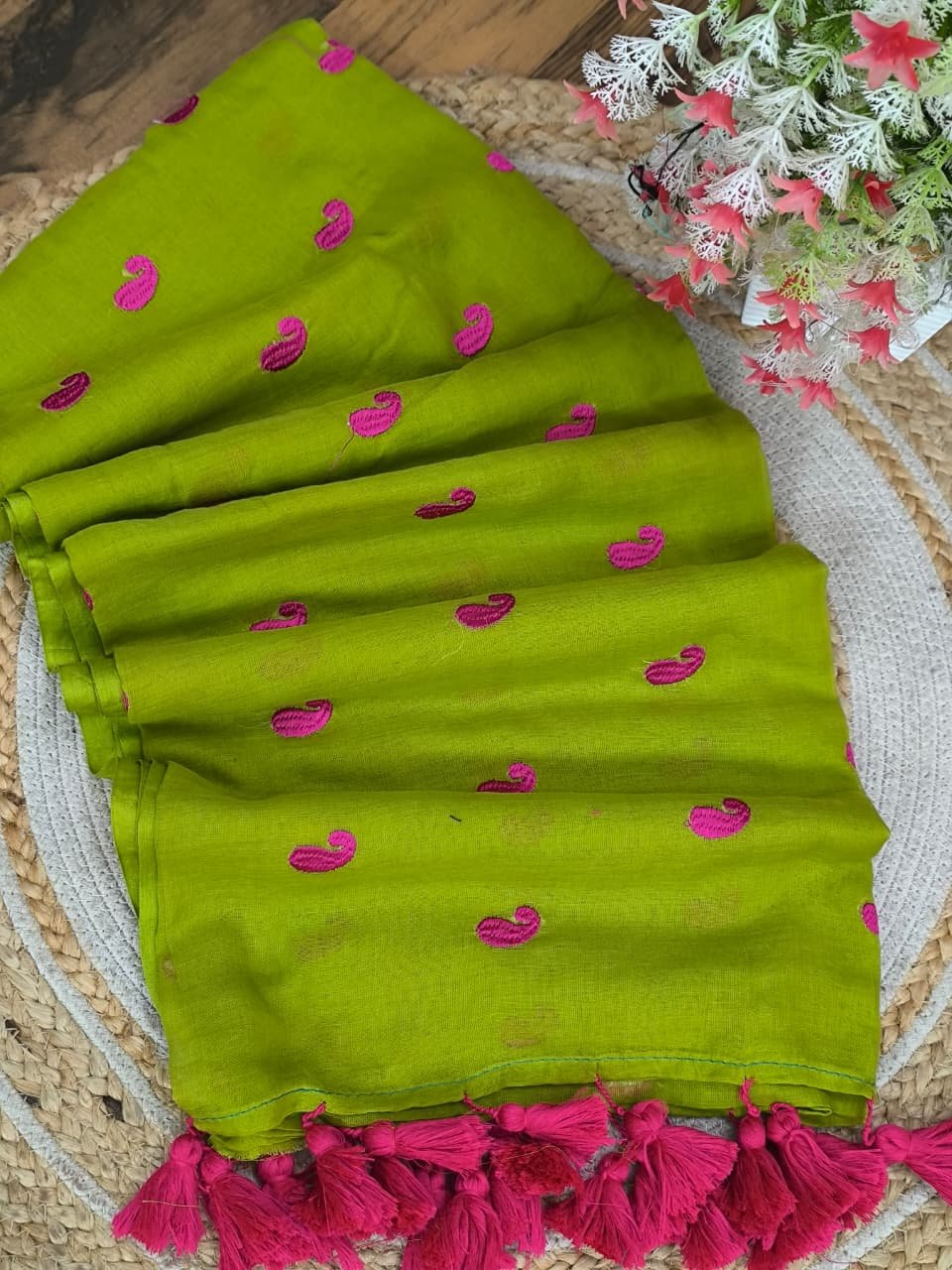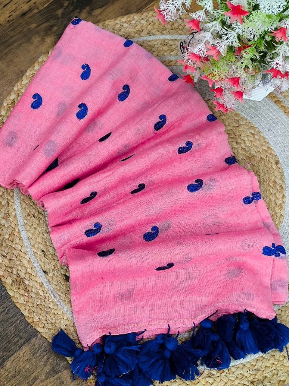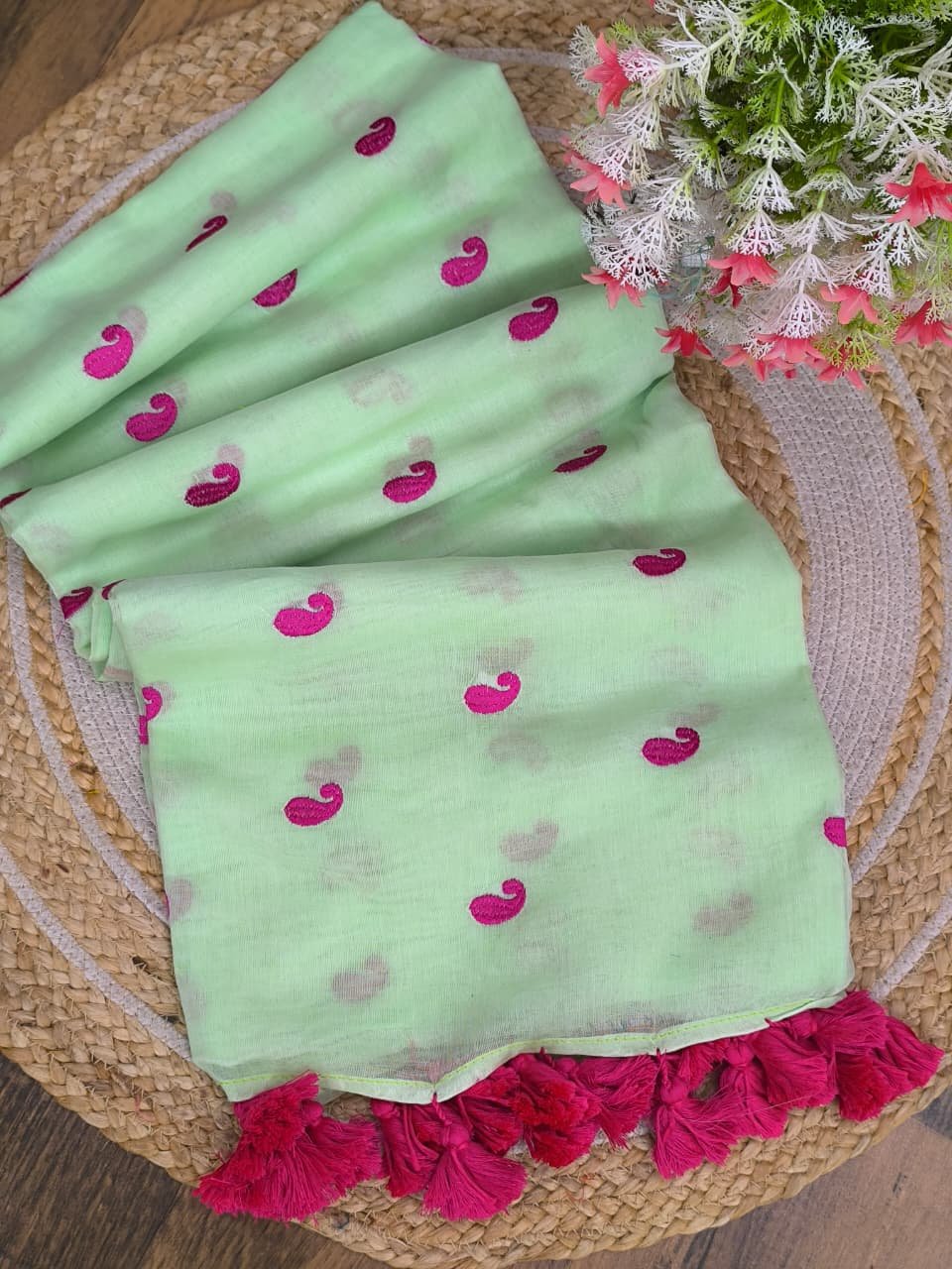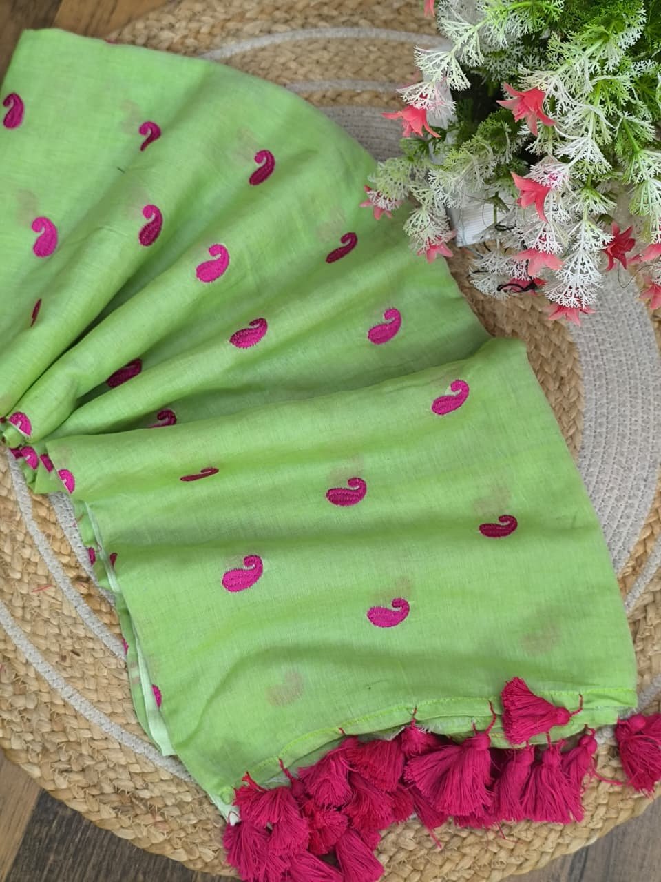 Pure Mul cotton Saree with koyari butta embroidery work all over saree
