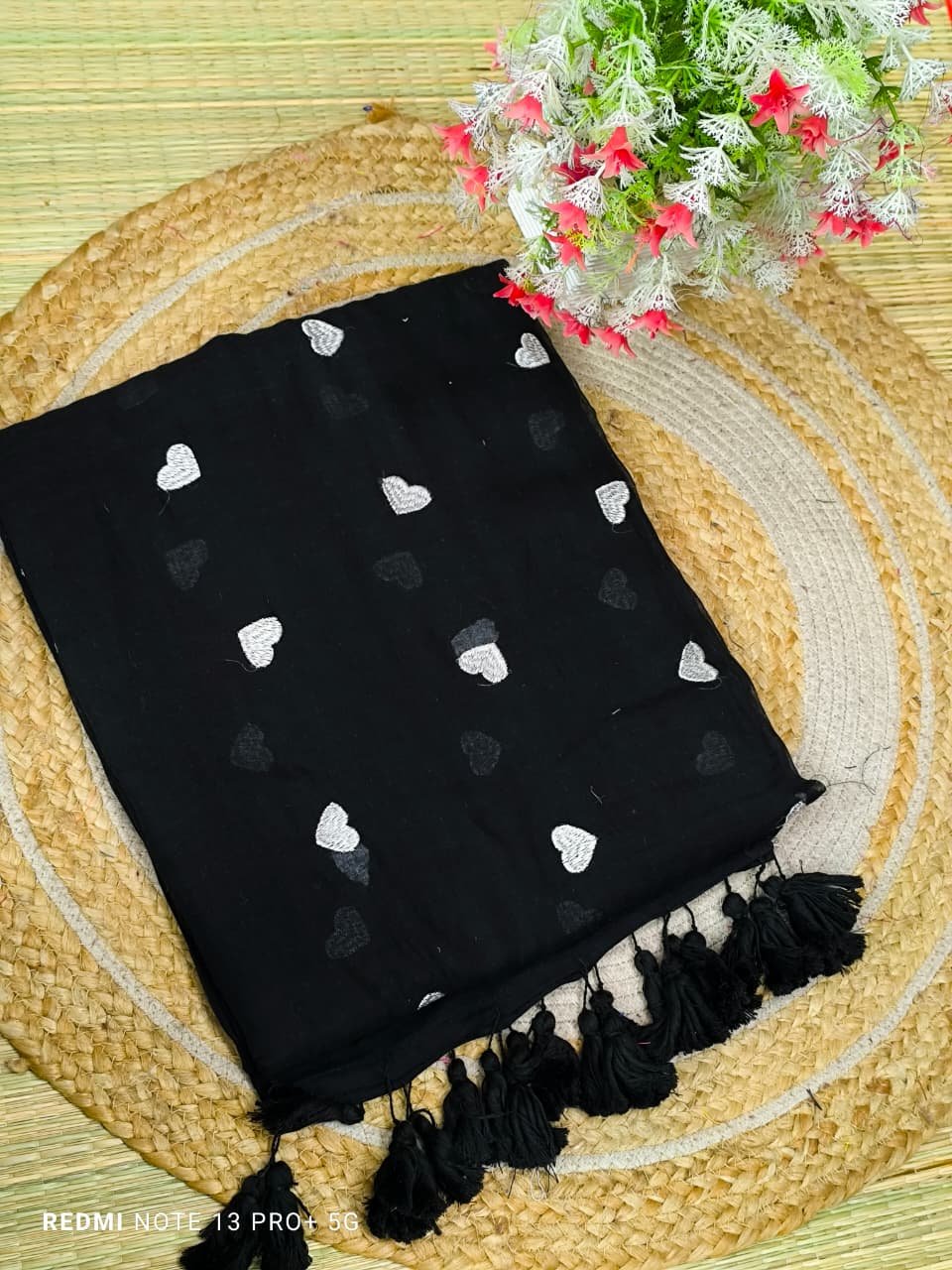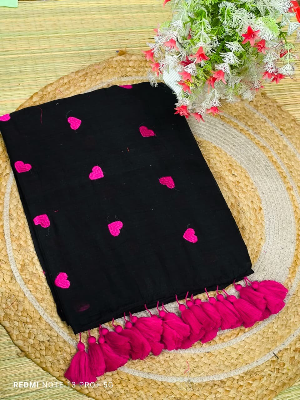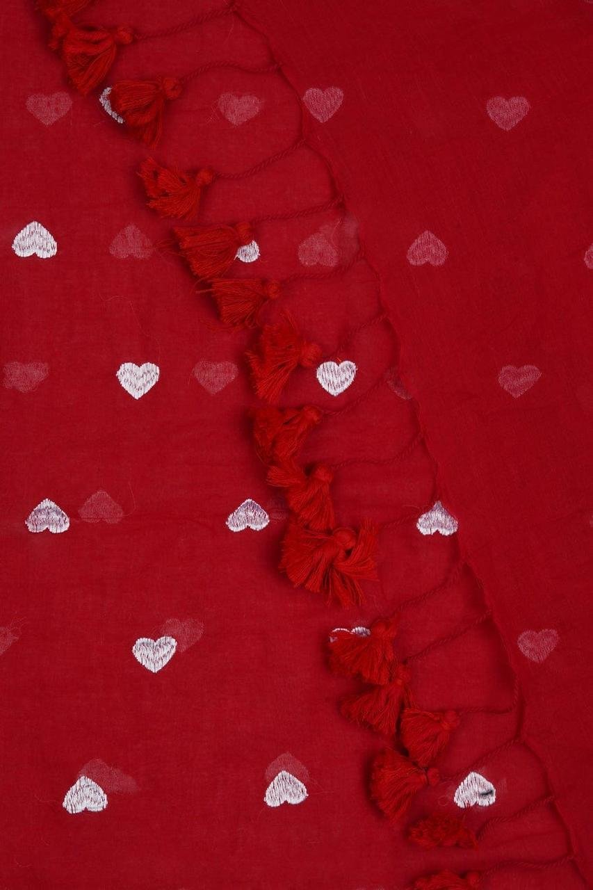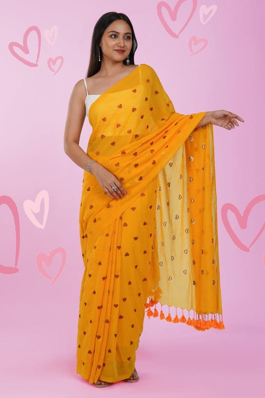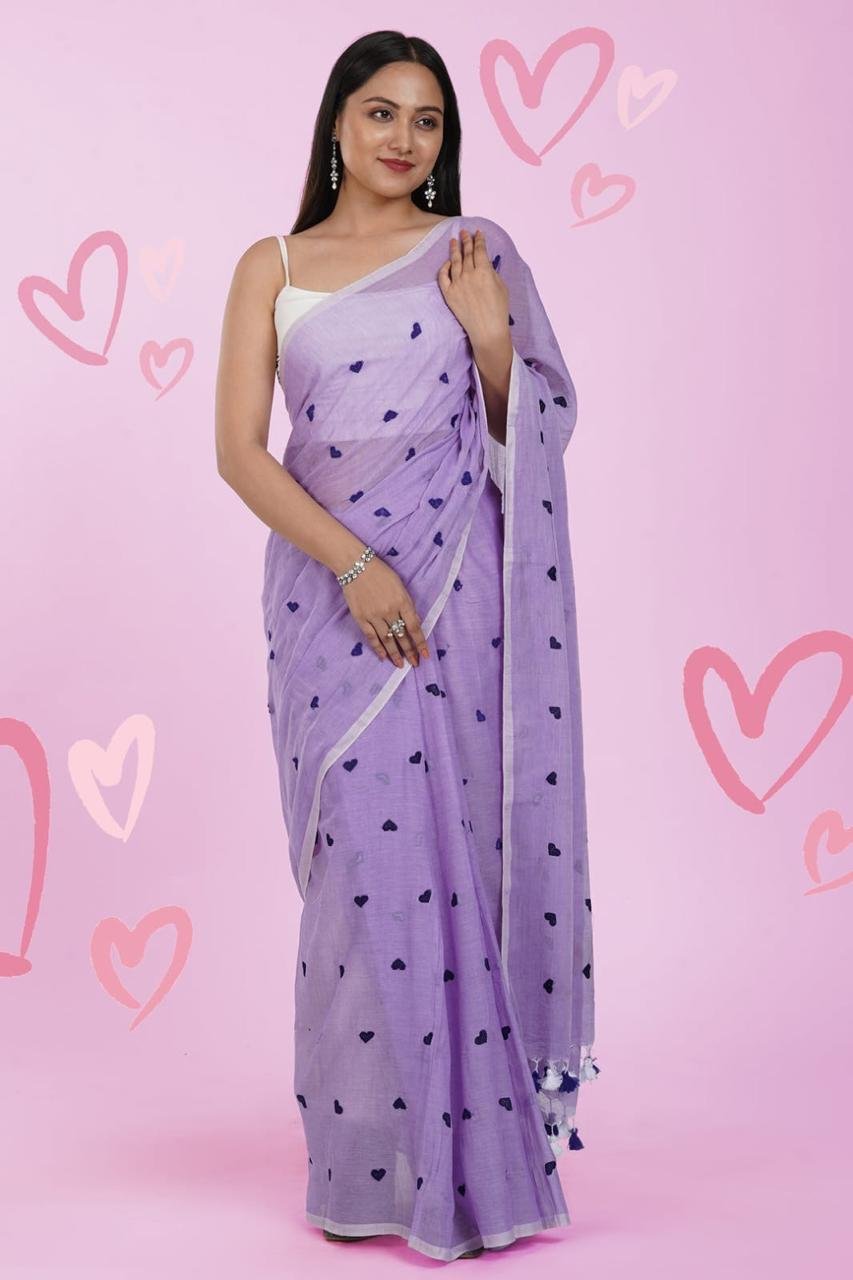 Mul cotton Saree with heart embroidery