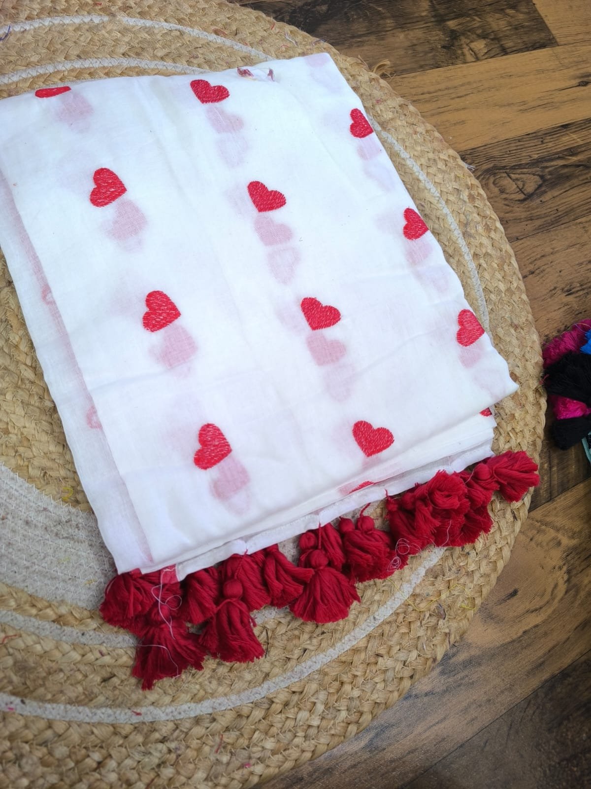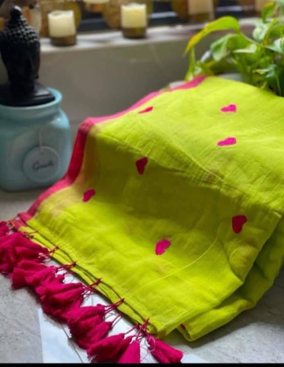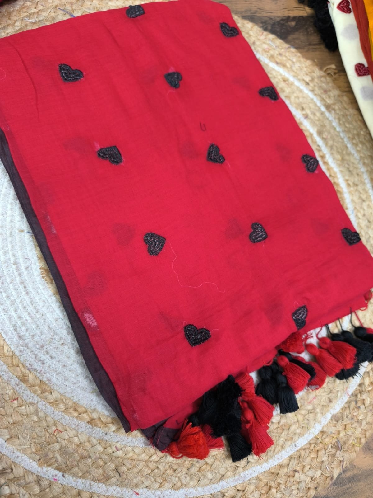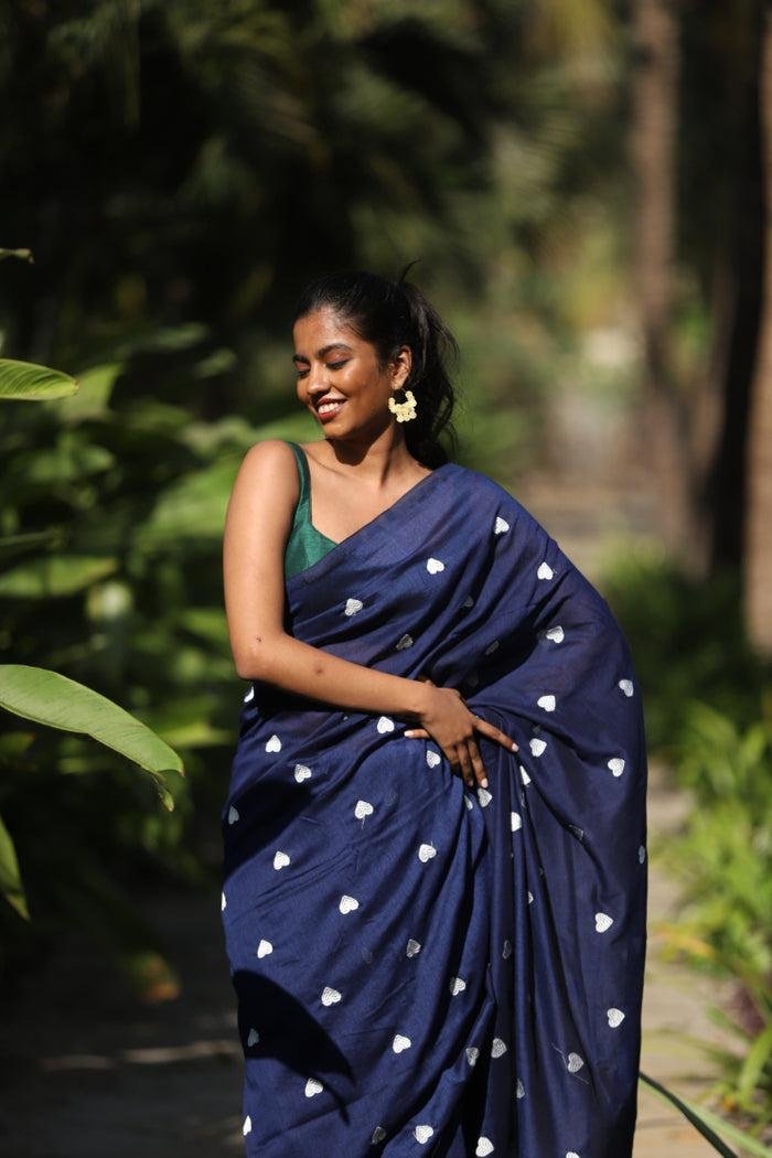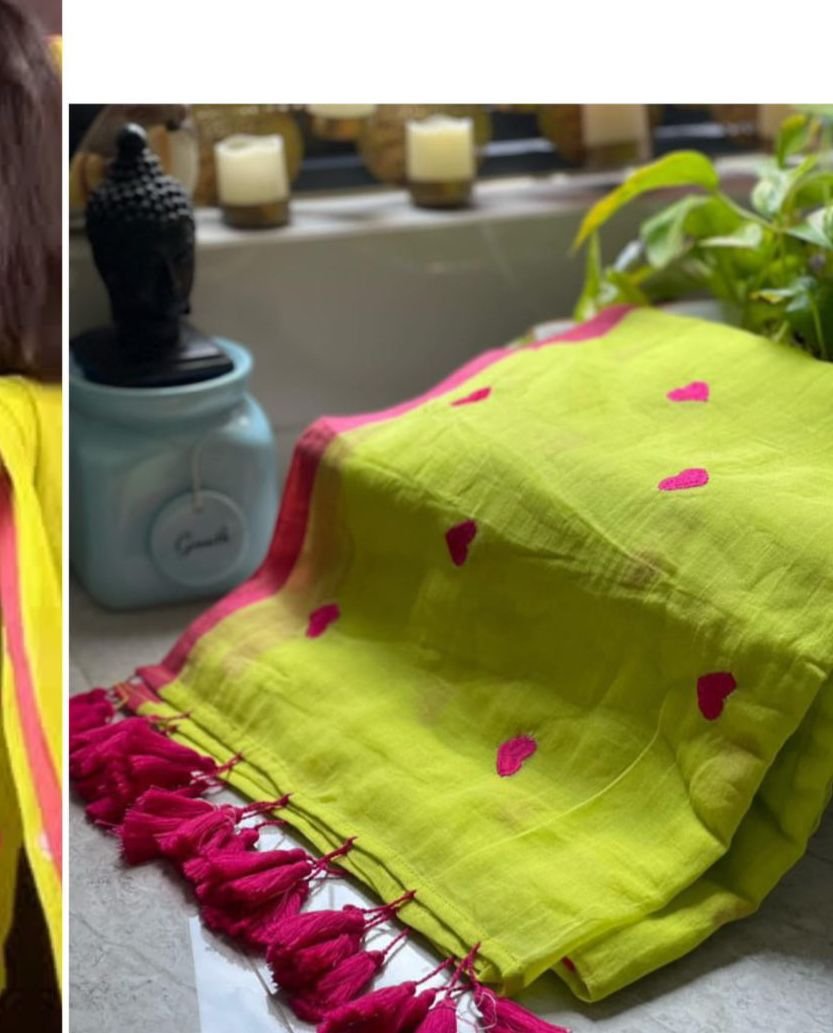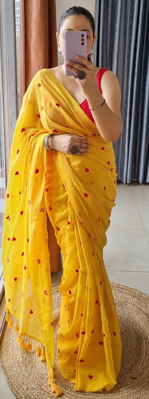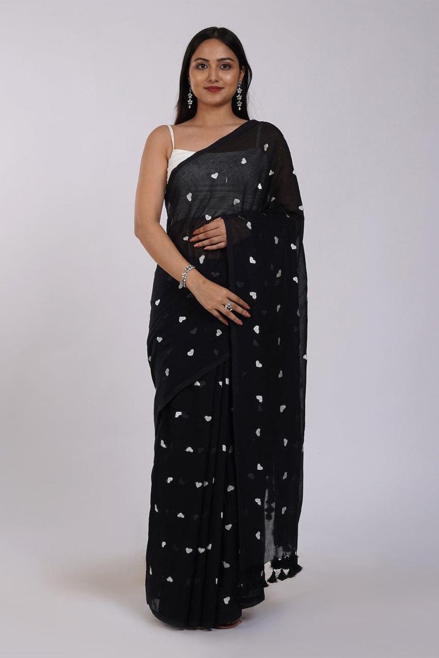 Mul cotton Saree with heart embroidery
