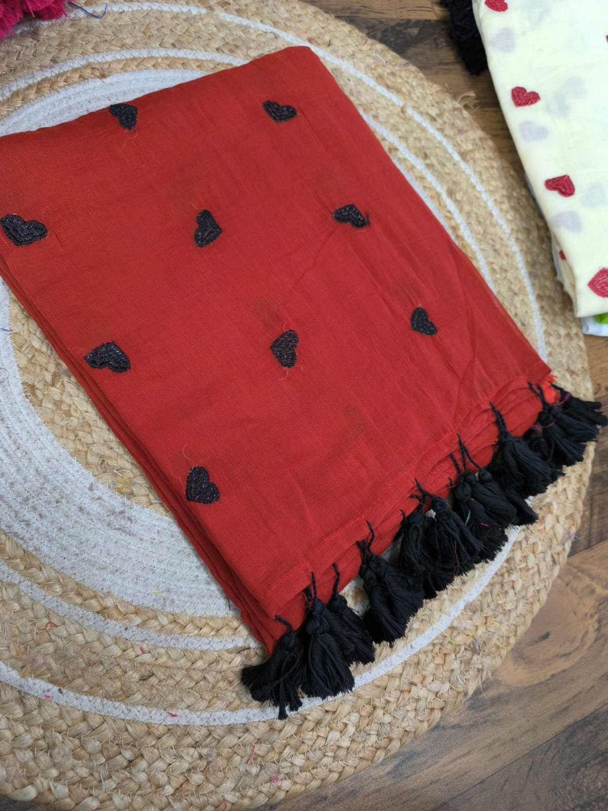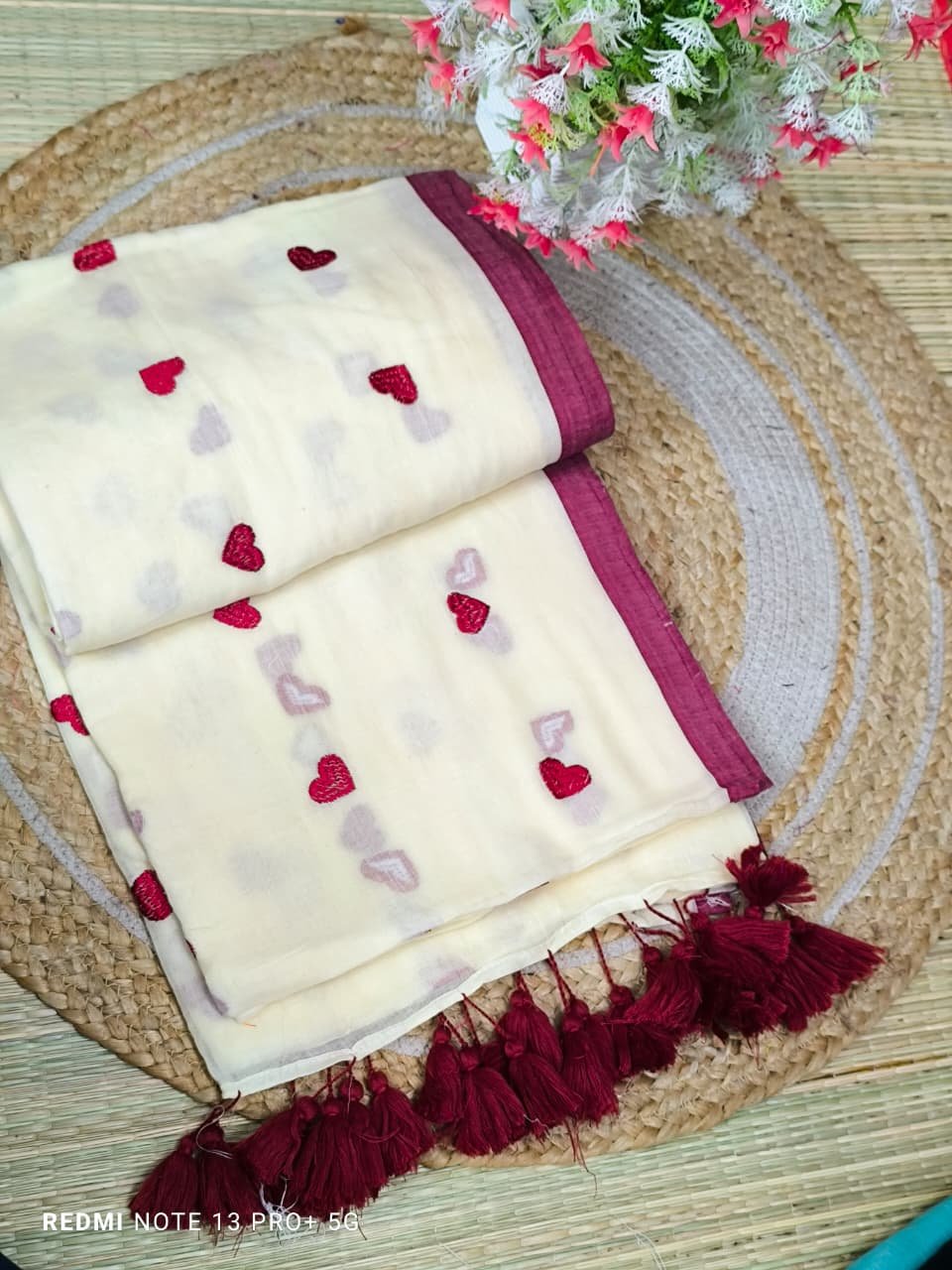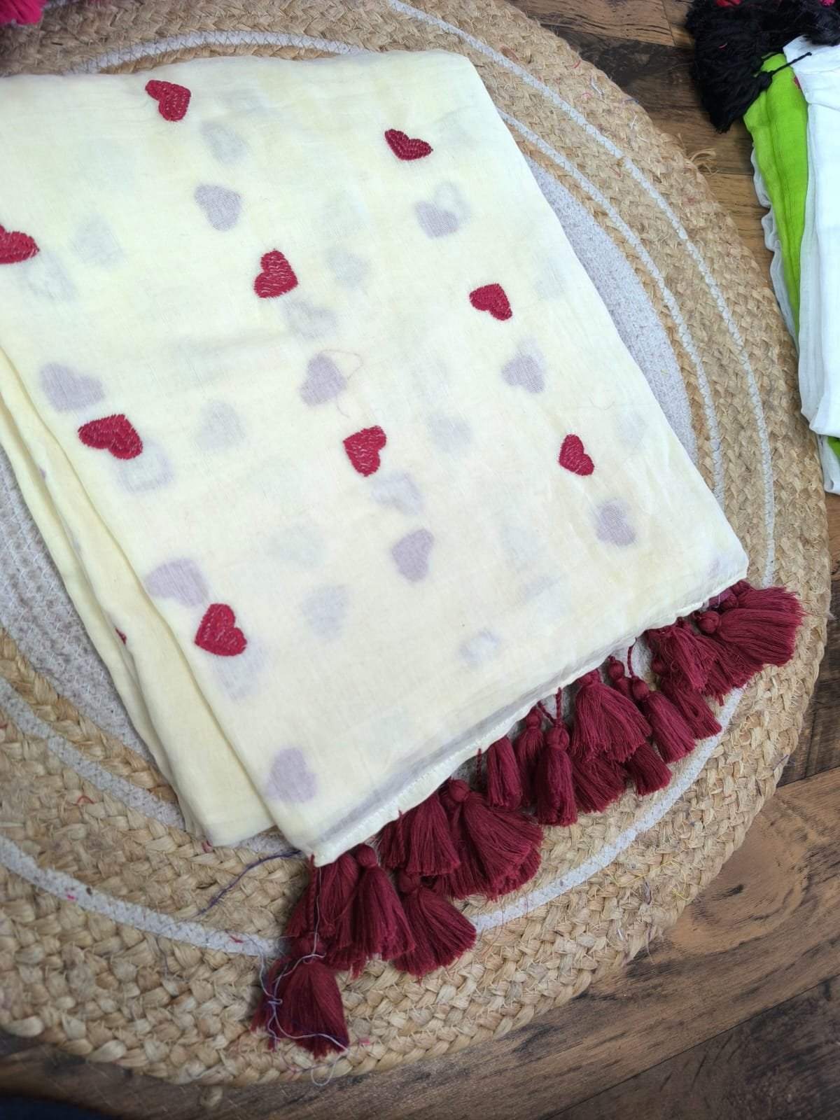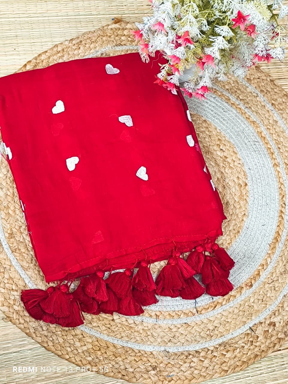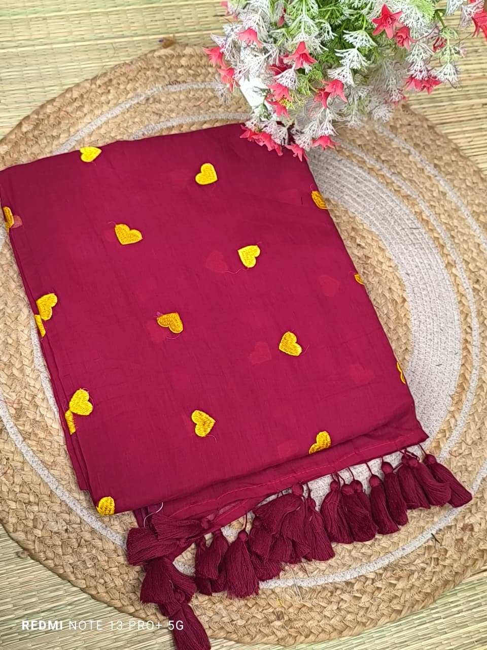 Mul cotton Saree with heart embroidery