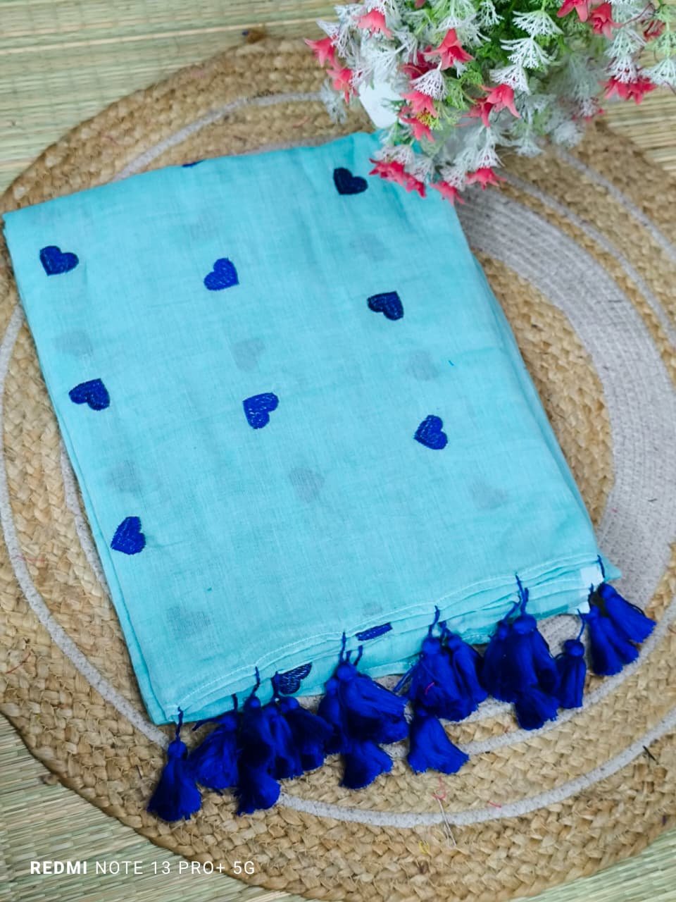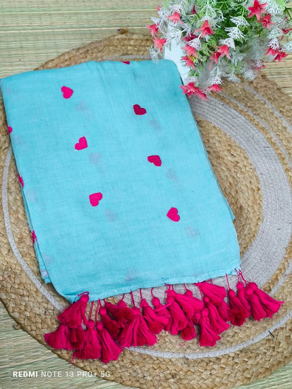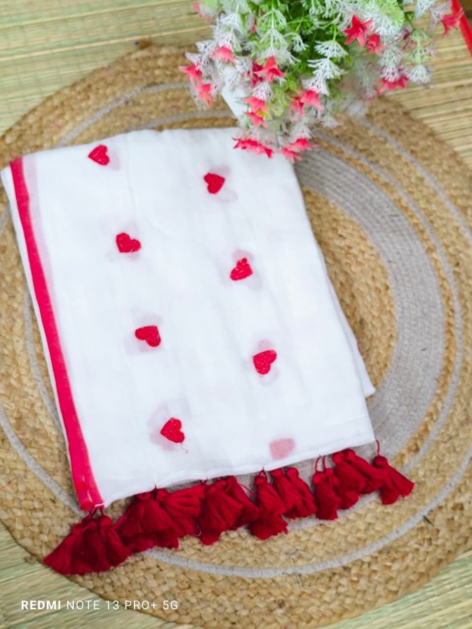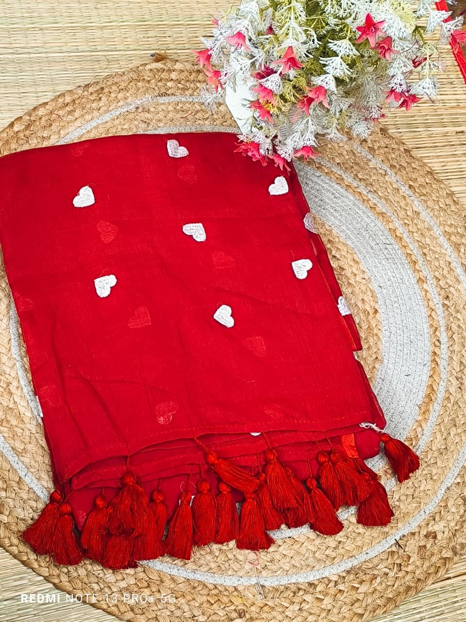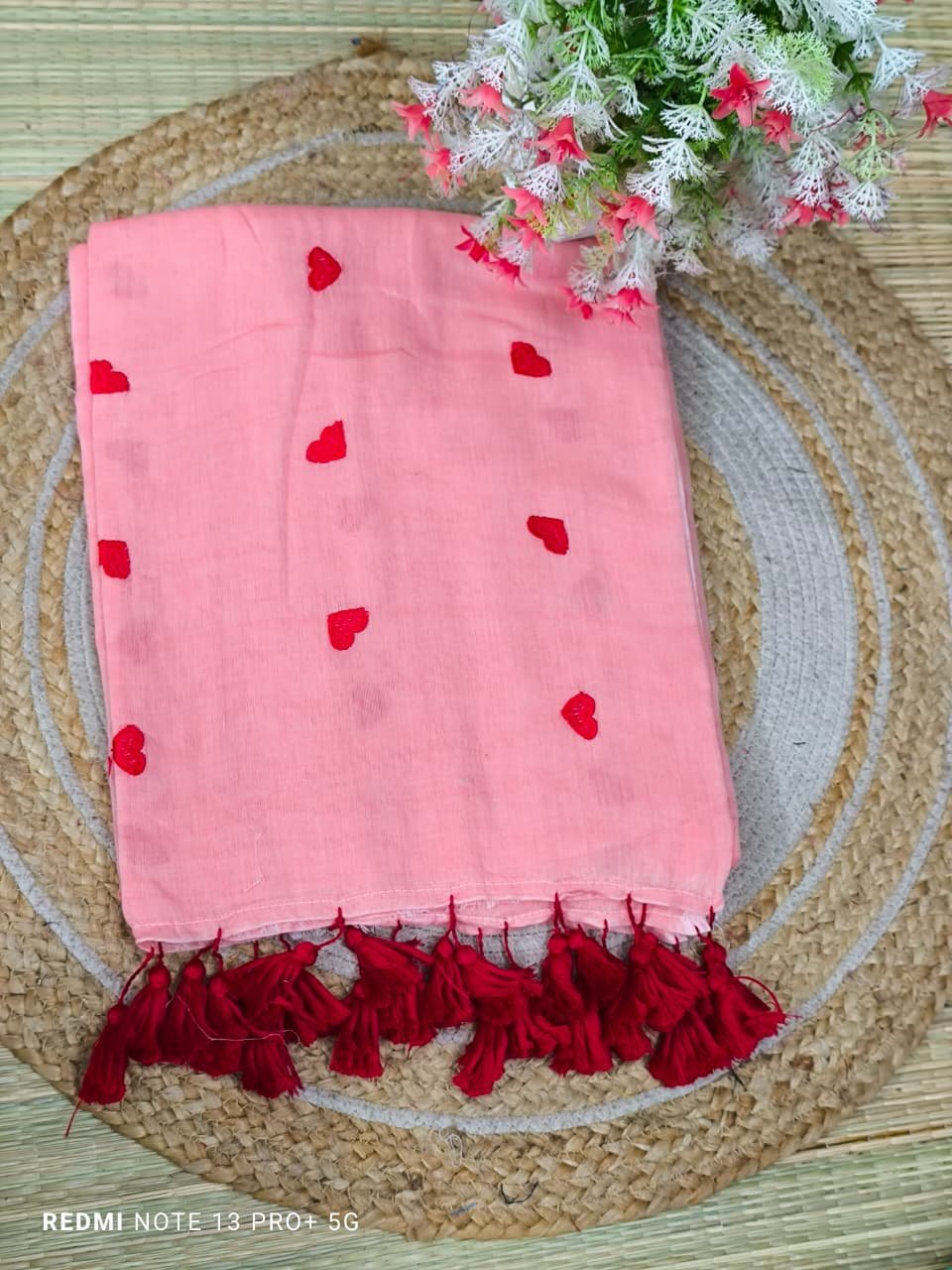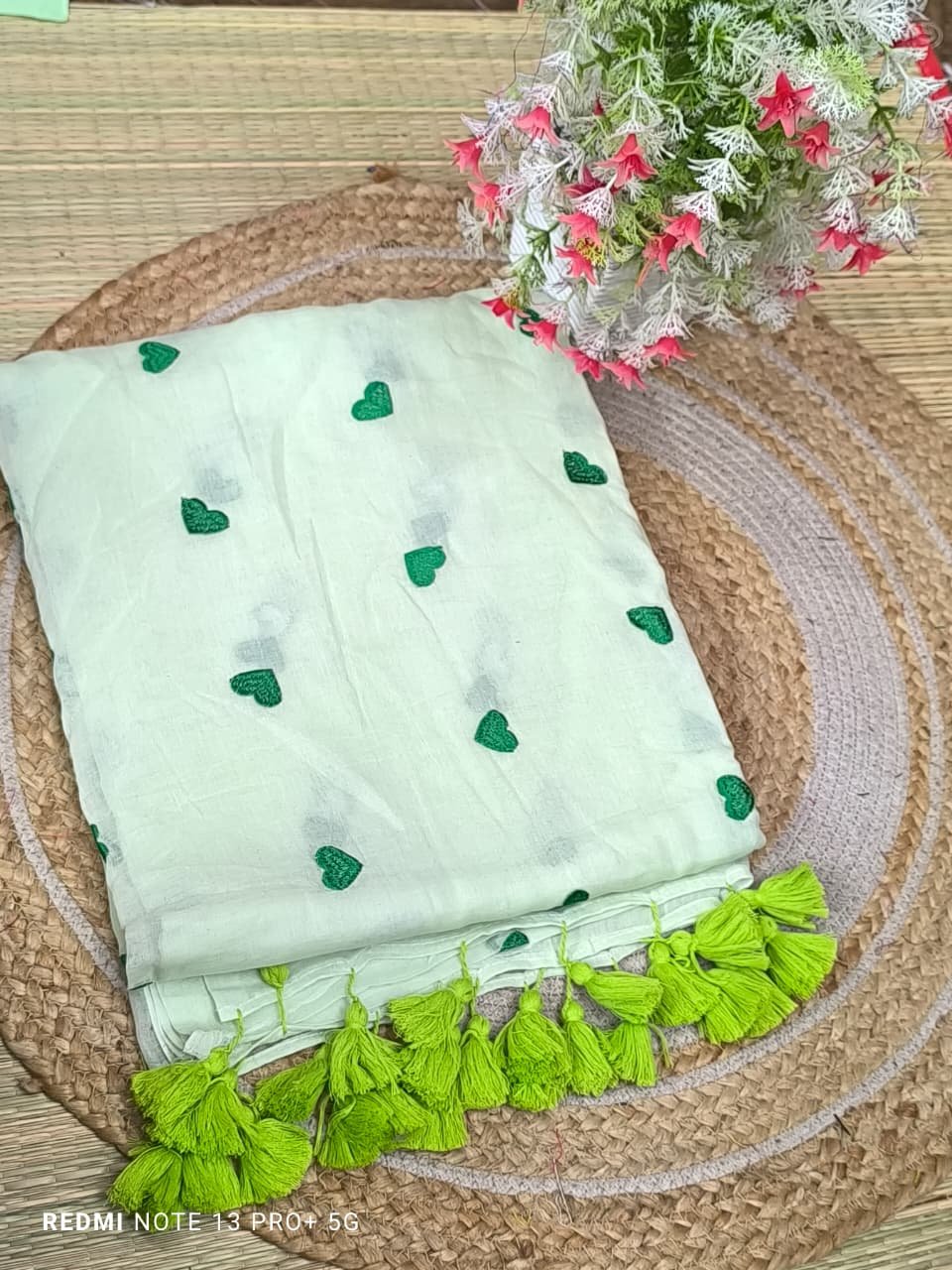 Mul cotton Saree with heart embroidery
