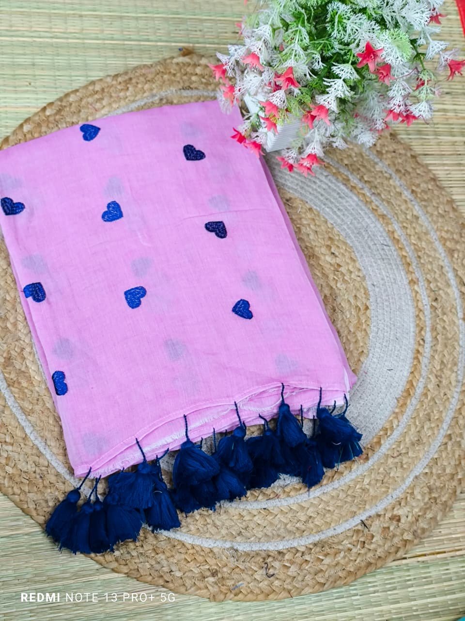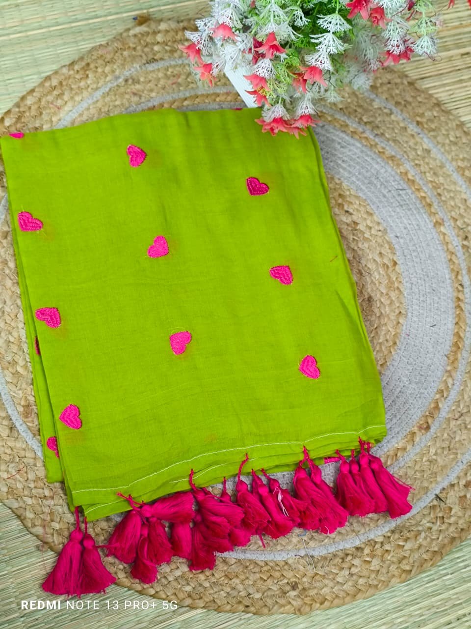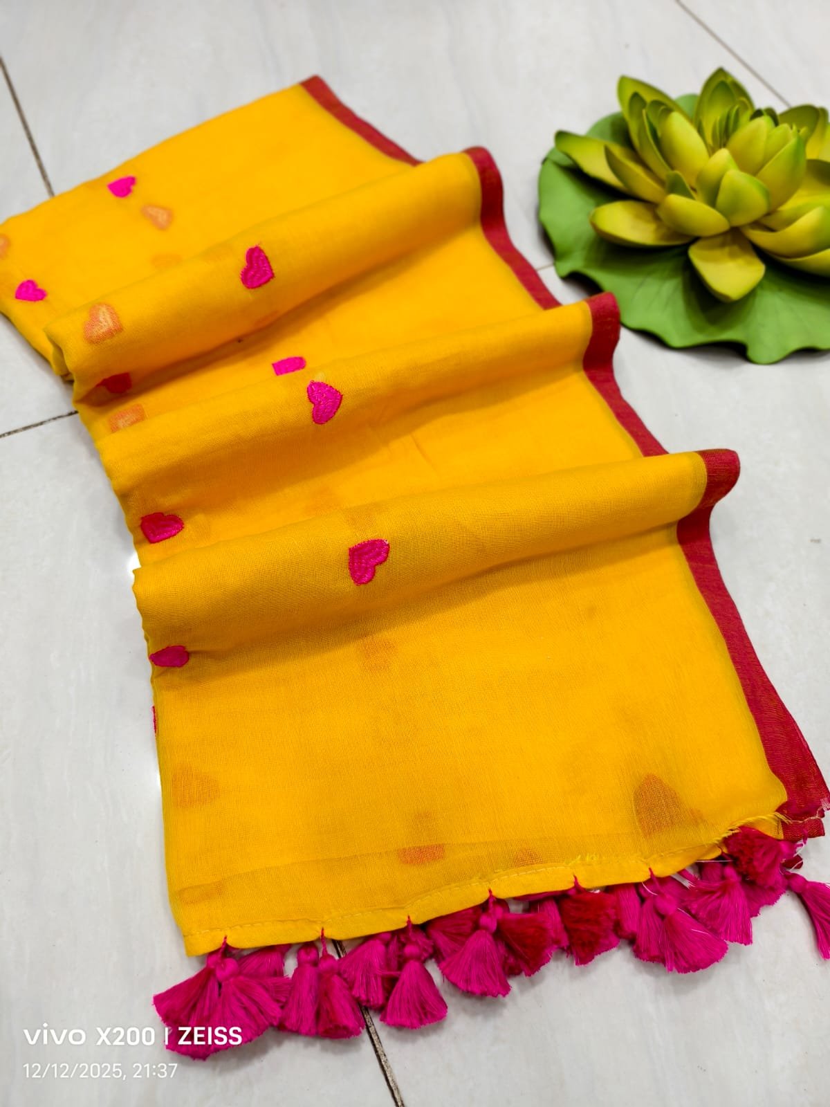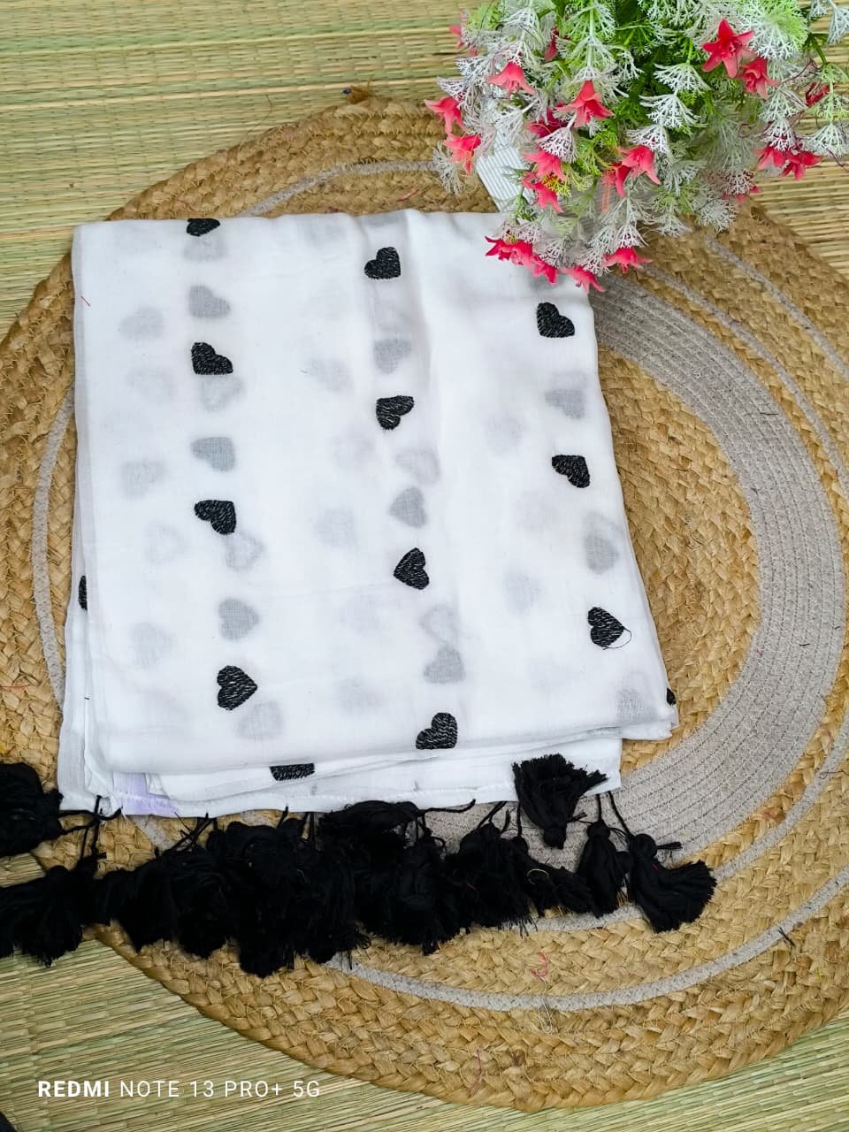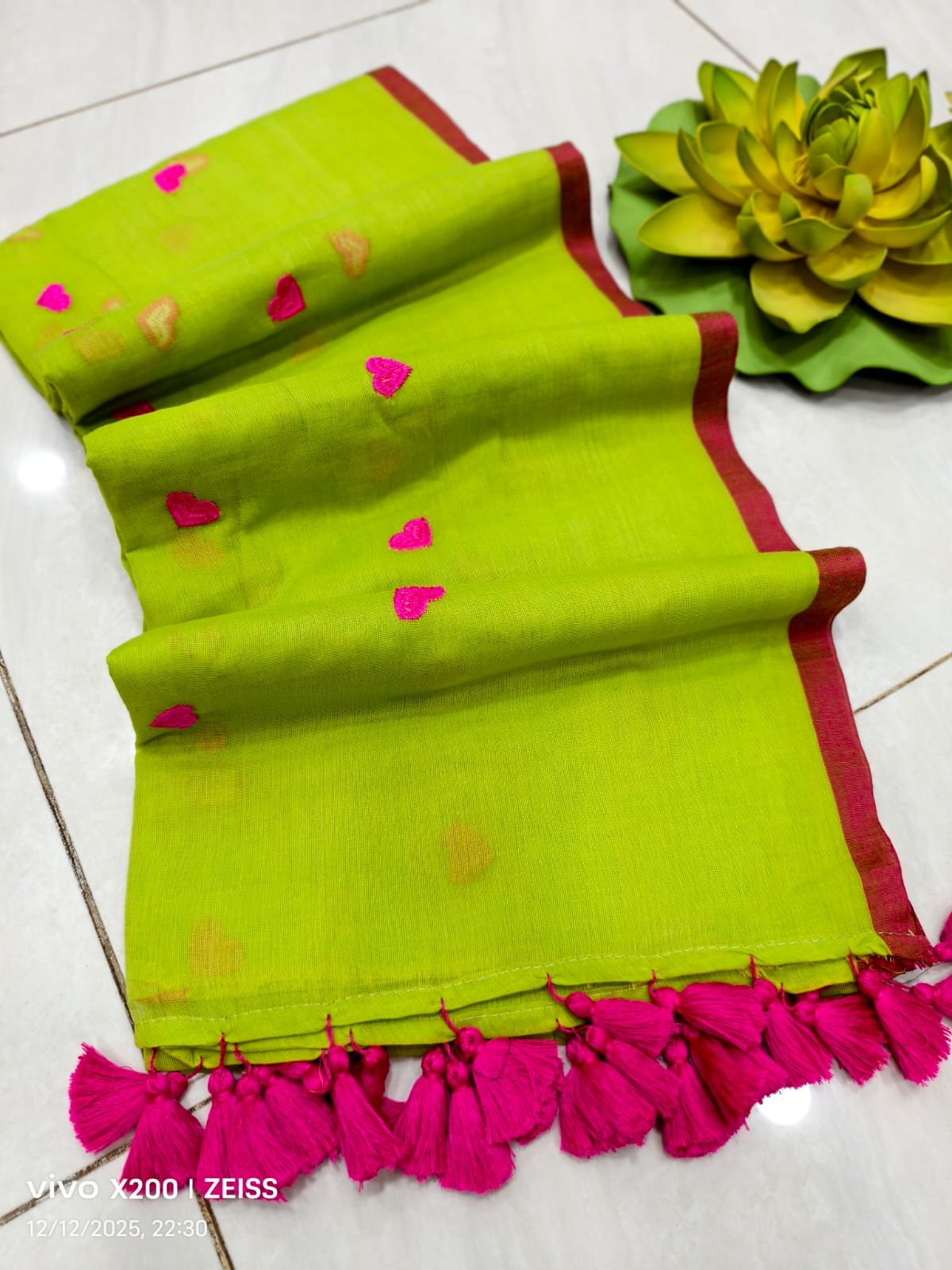 Mul cotton Saree with heart embroidery