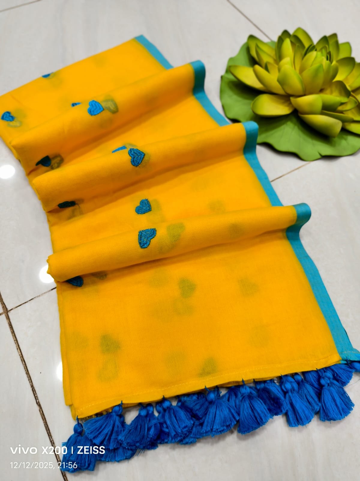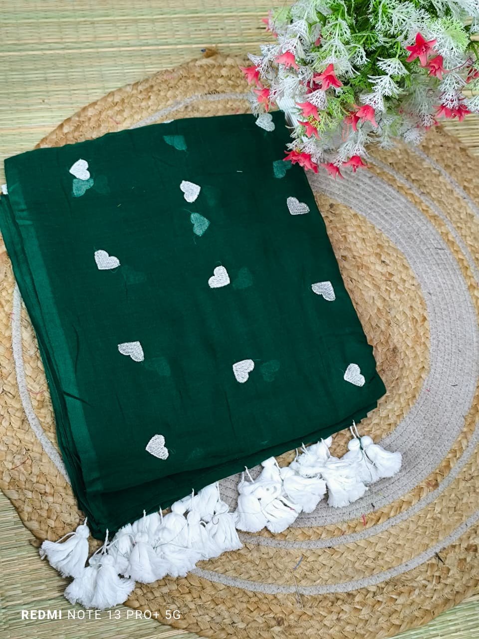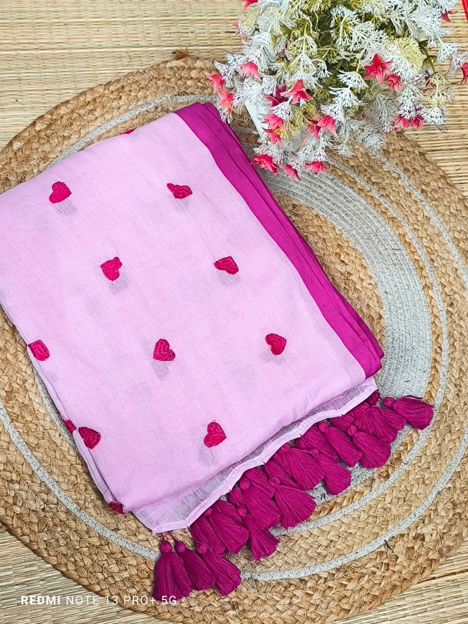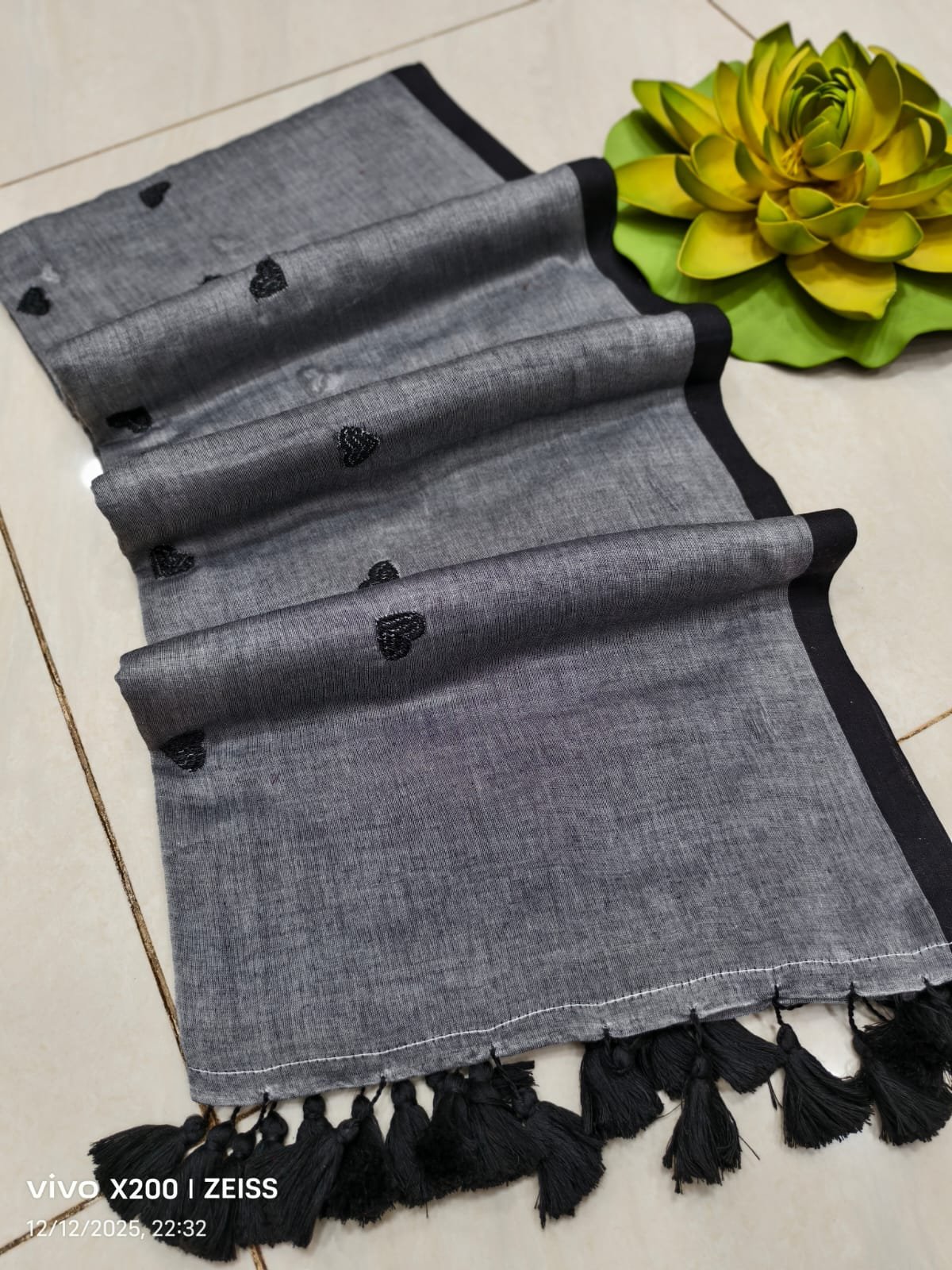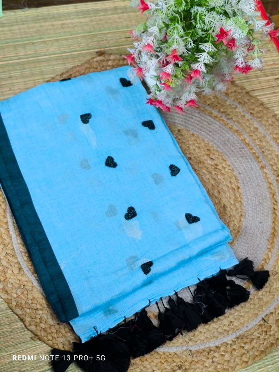 Mul cotton Saree with heart embroidery