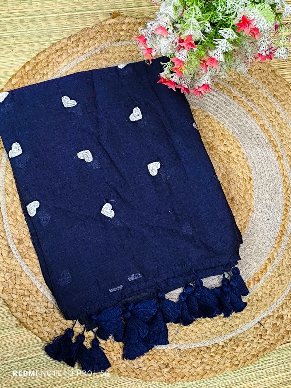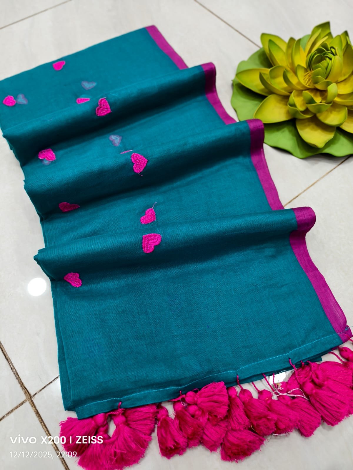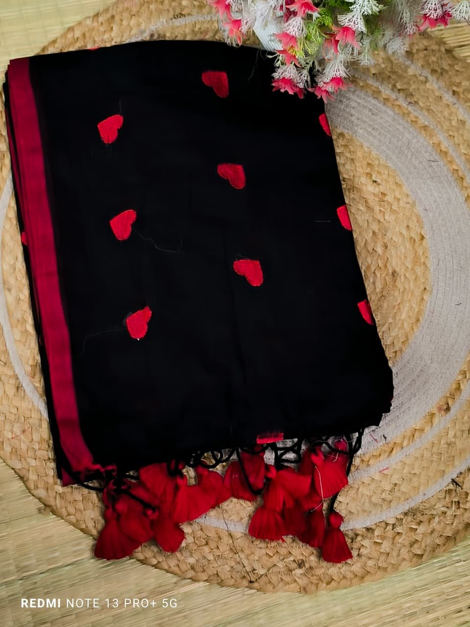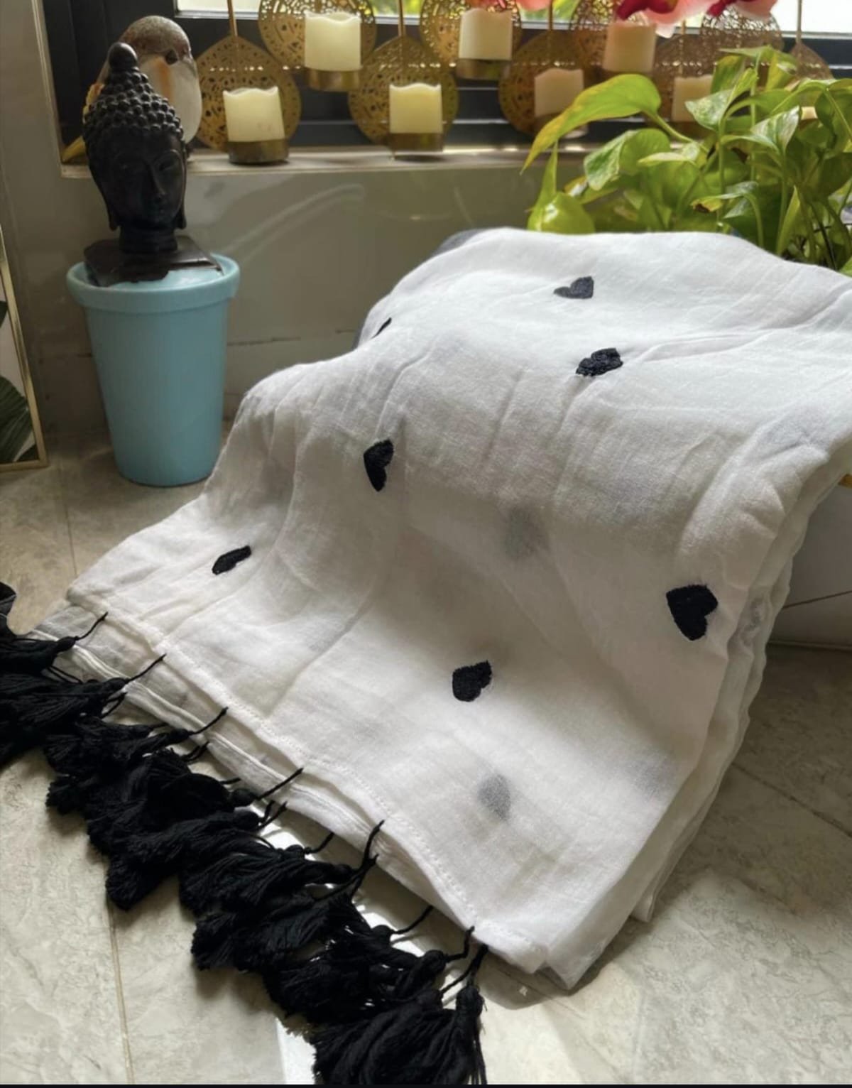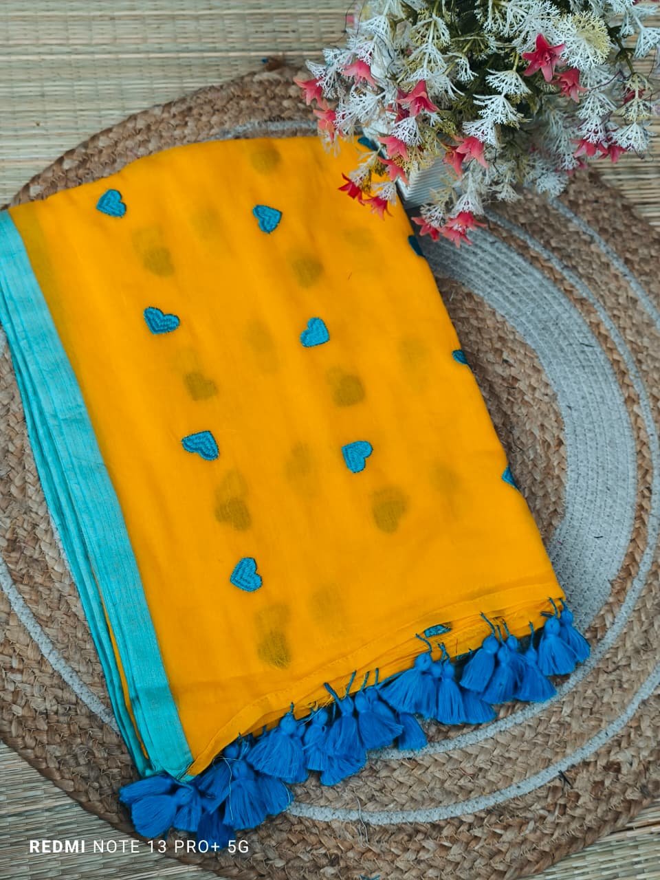 Mul cotton Saree with heart embroidery