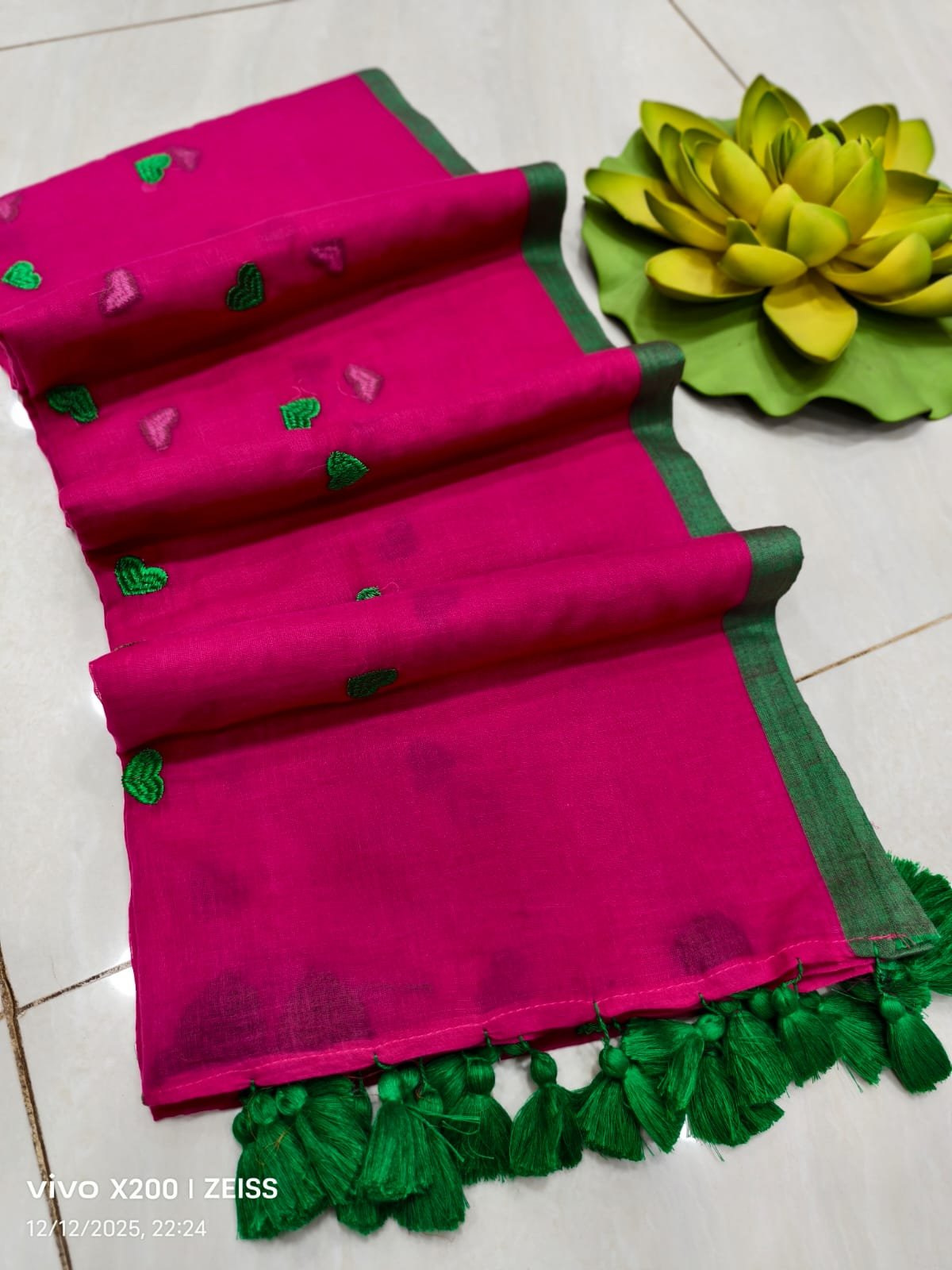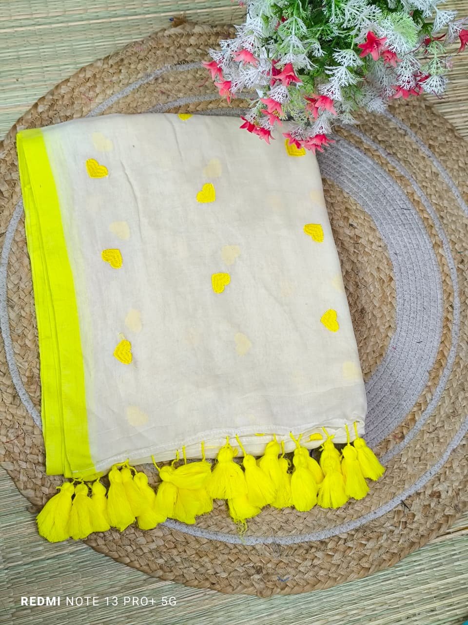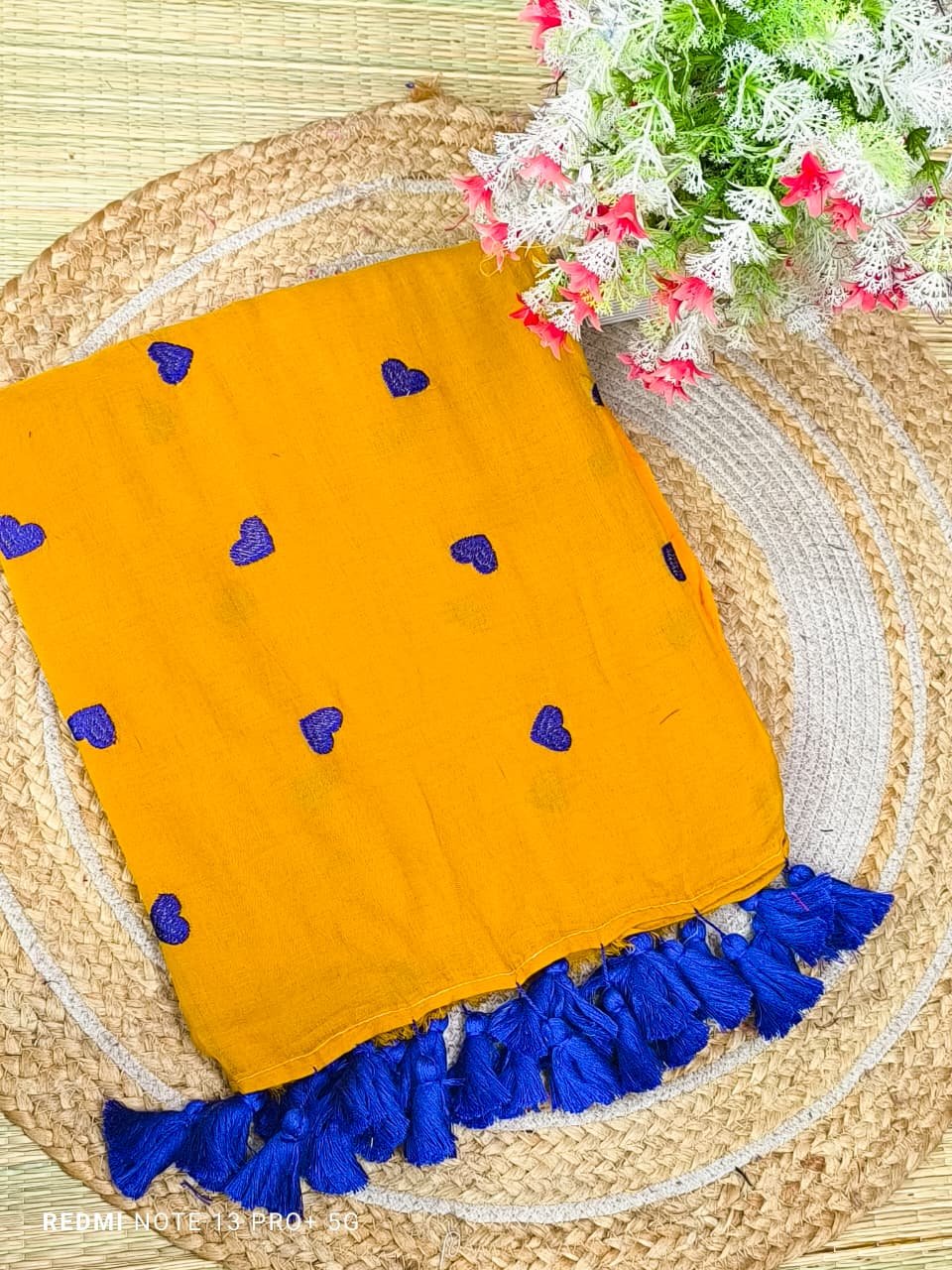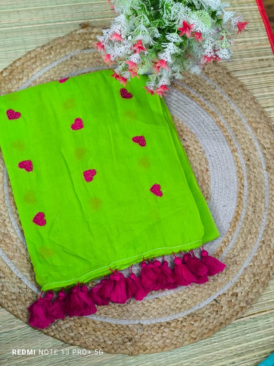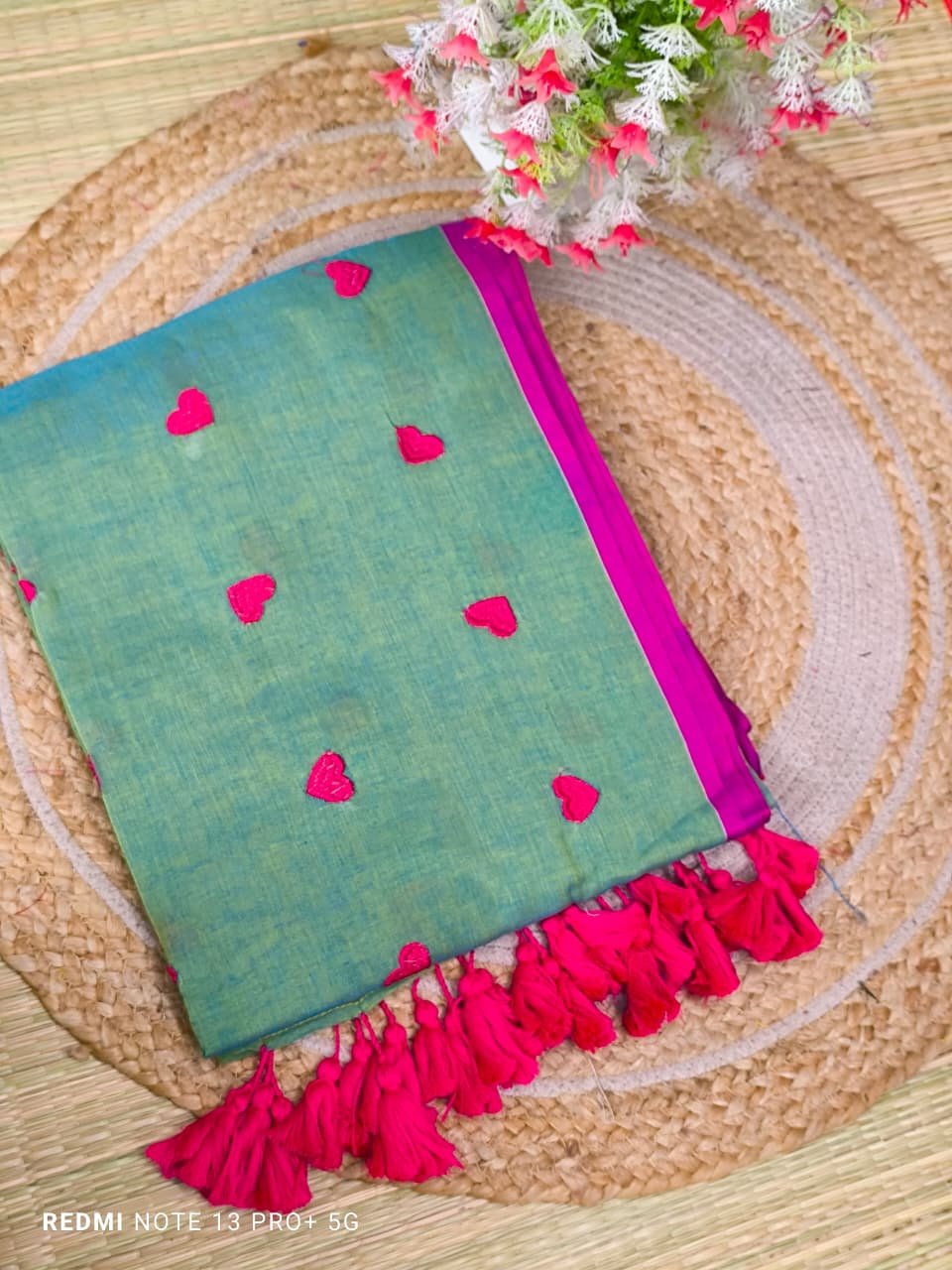 Mul cotton Saree with heart embroidery