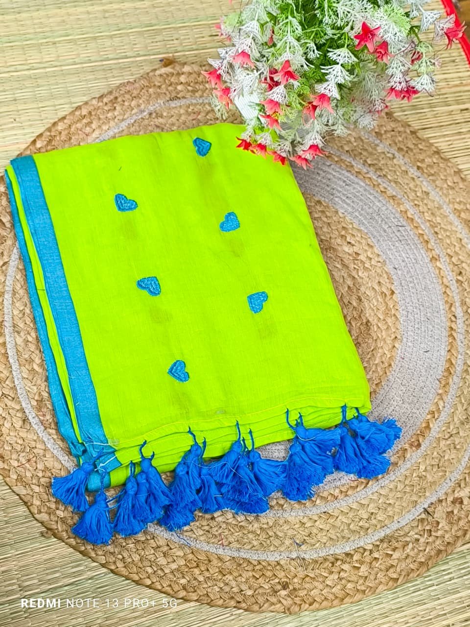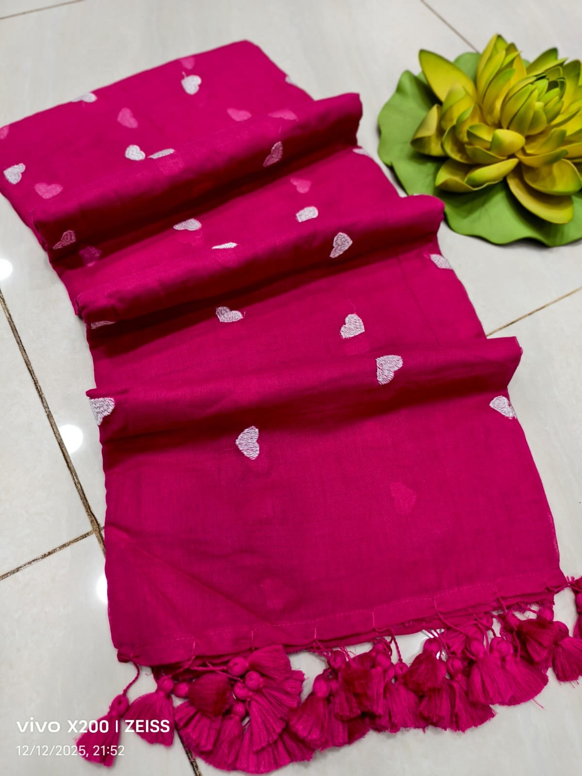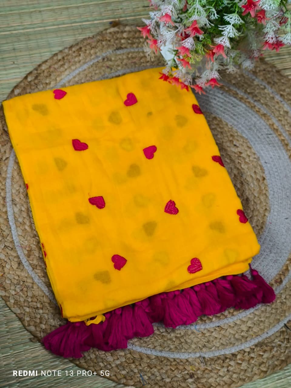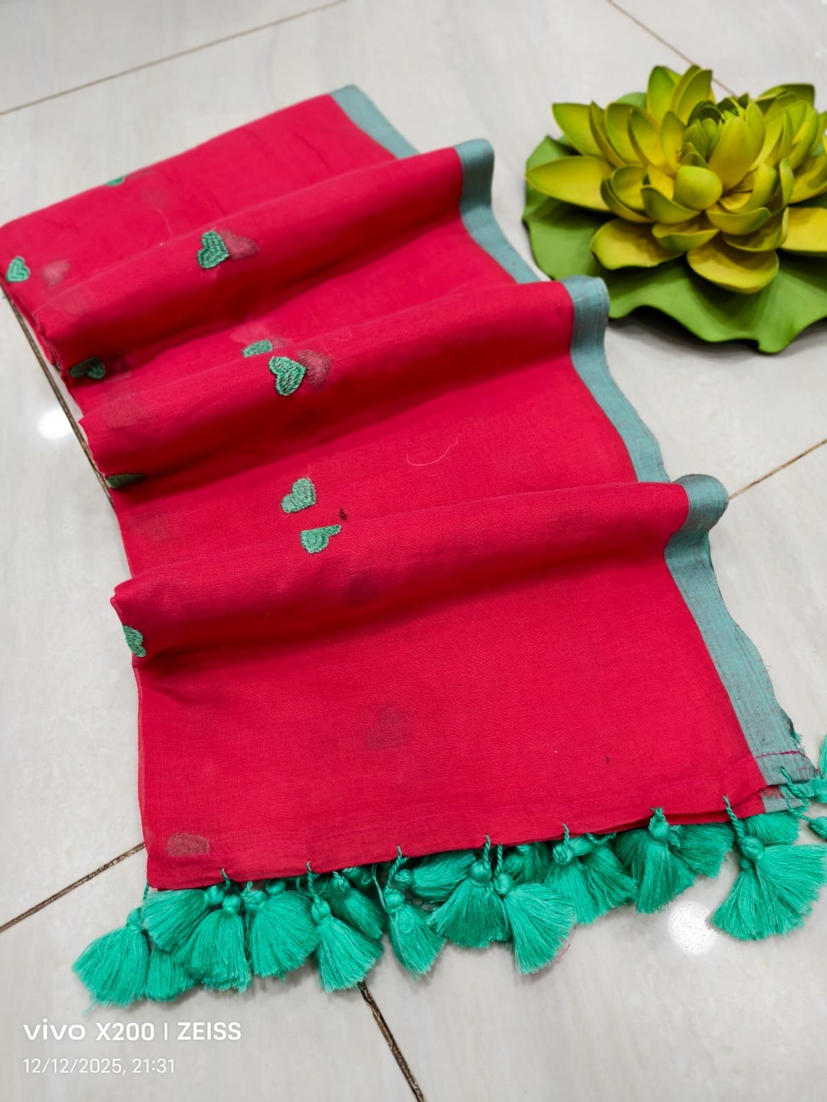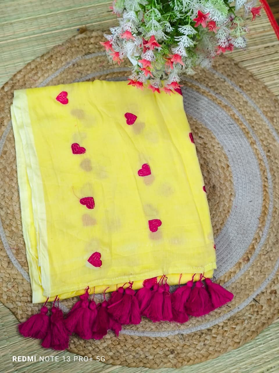 Mul cotton Saree with heart embroidery