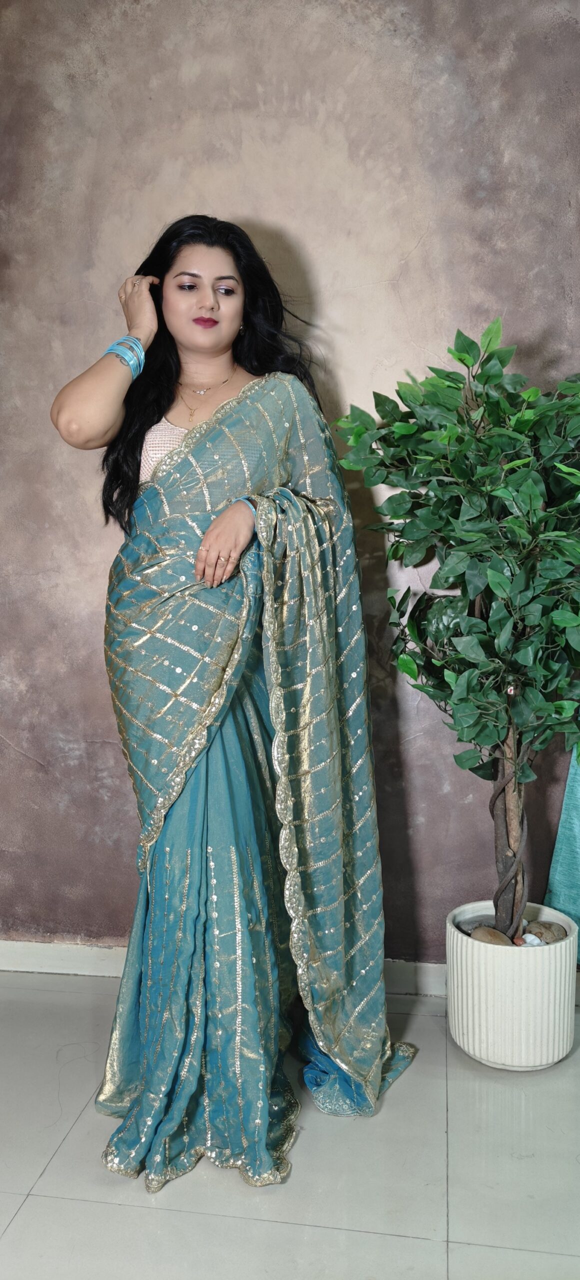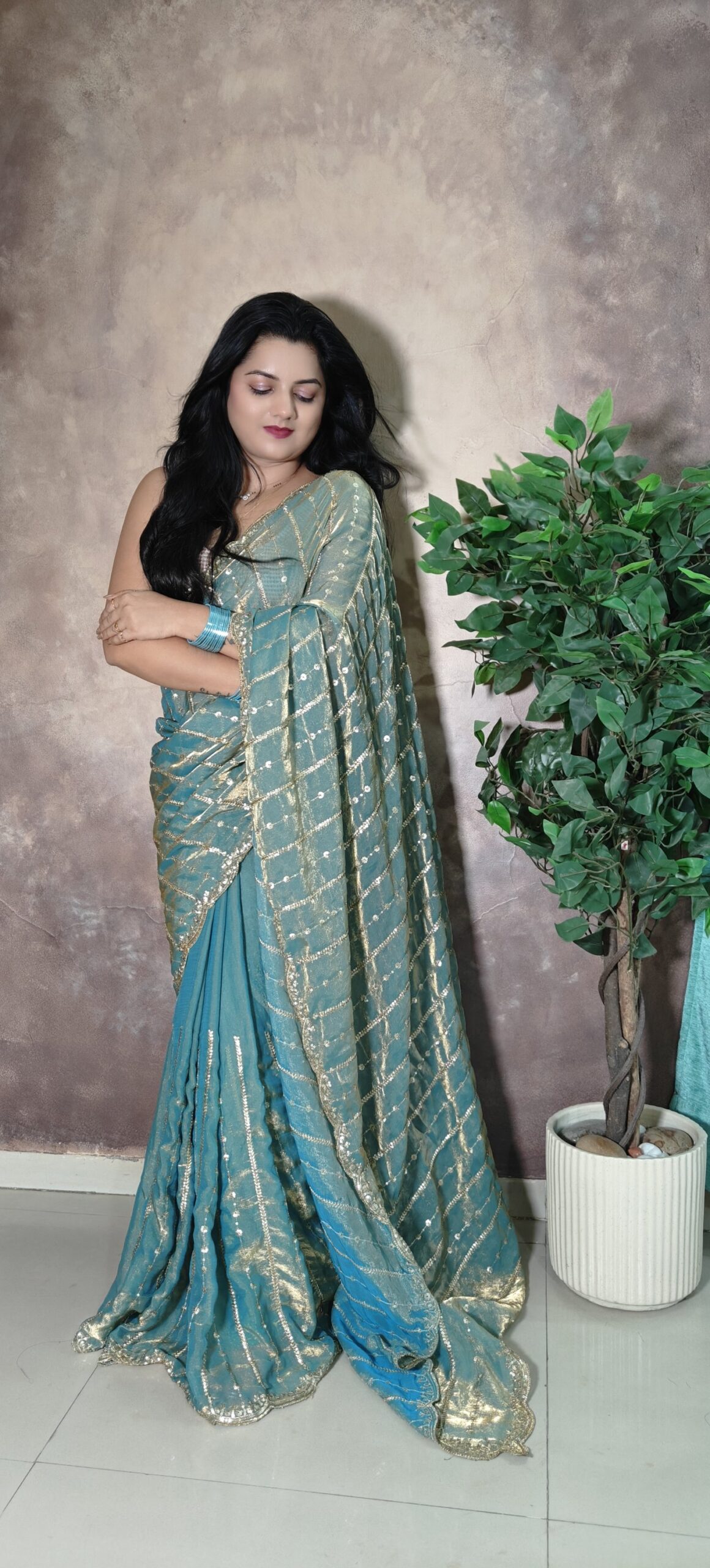 Classy festival perfect saree. Its shiny, its blingy yet its classy