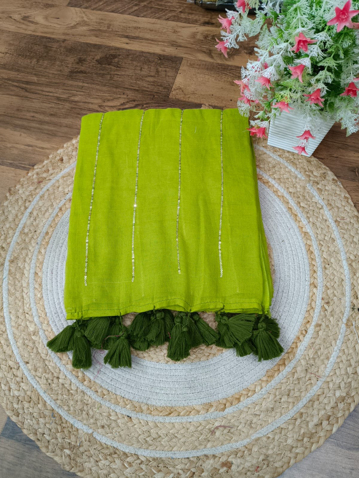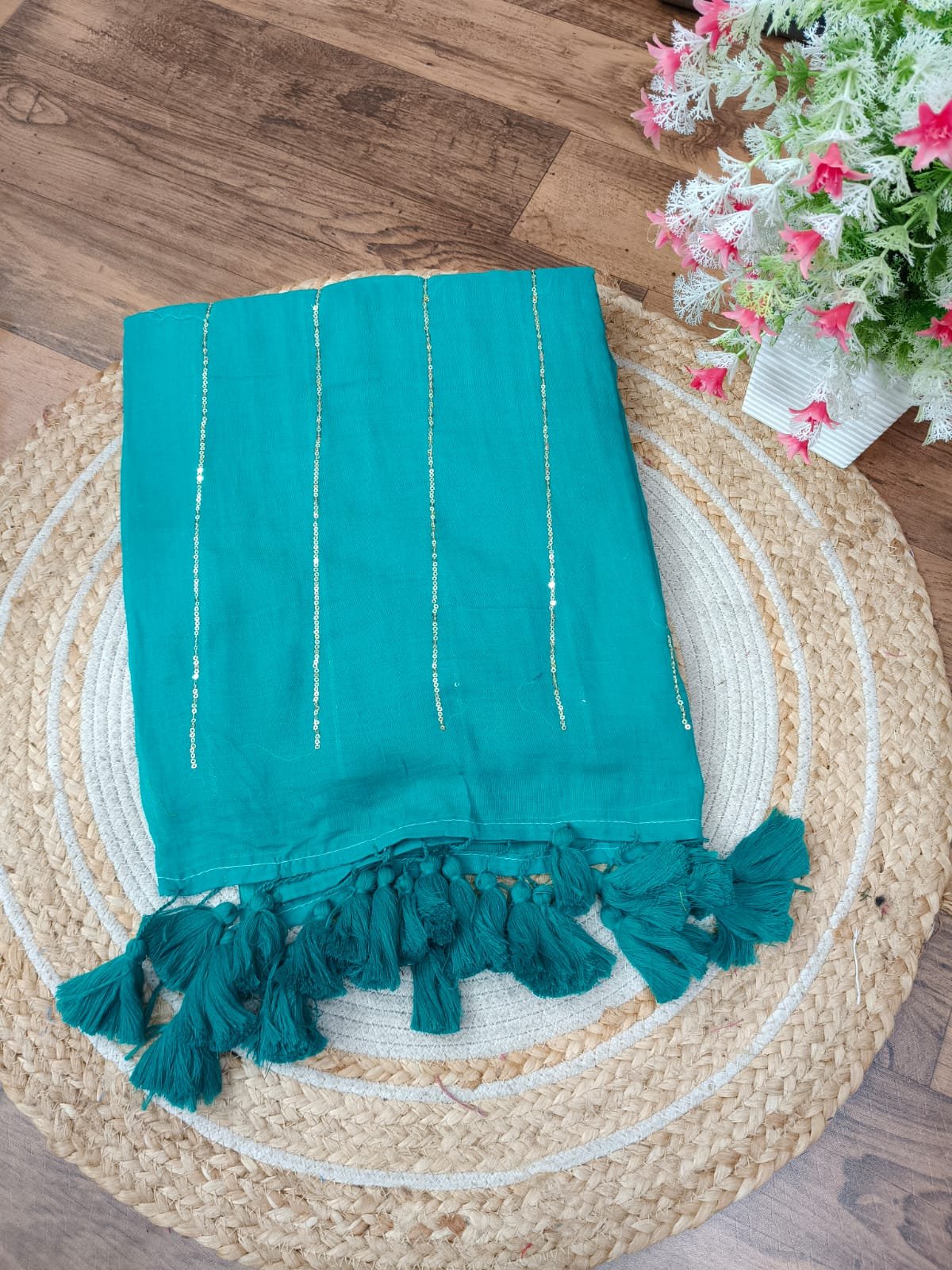 Exclusive summer special too soft all body gini sequence chain work 120 count mul cotton saree