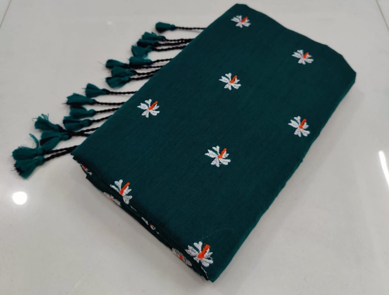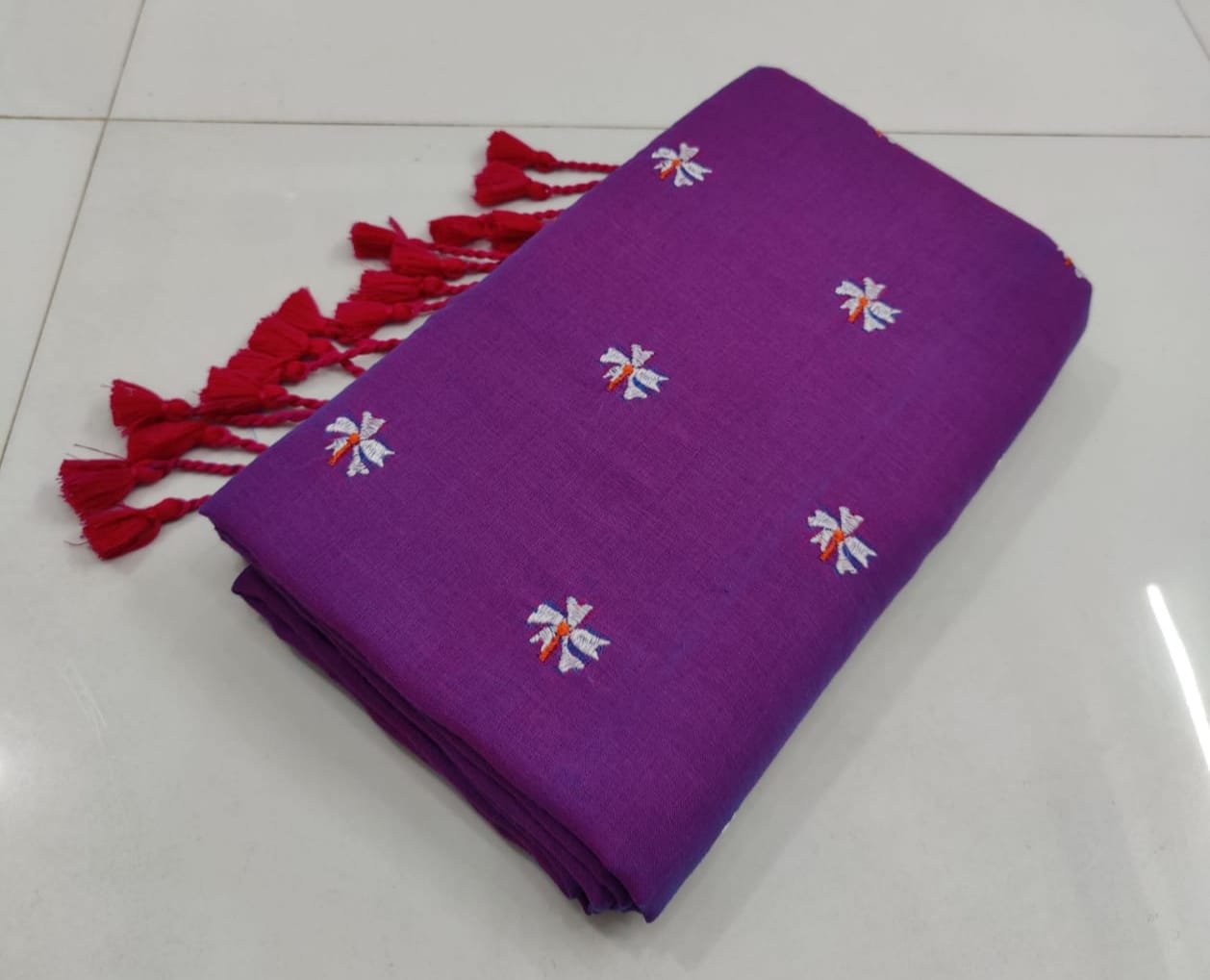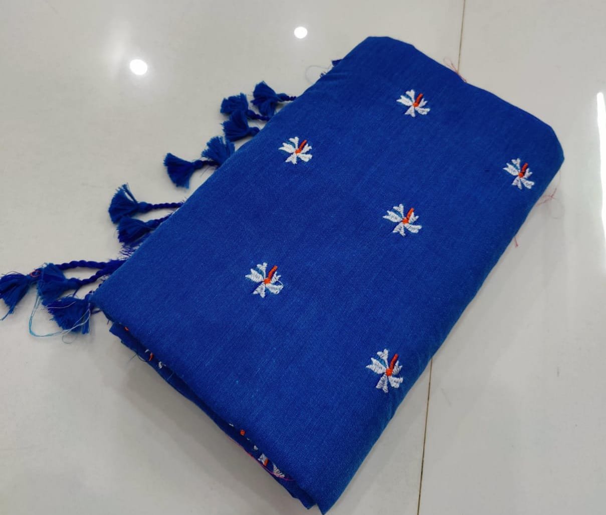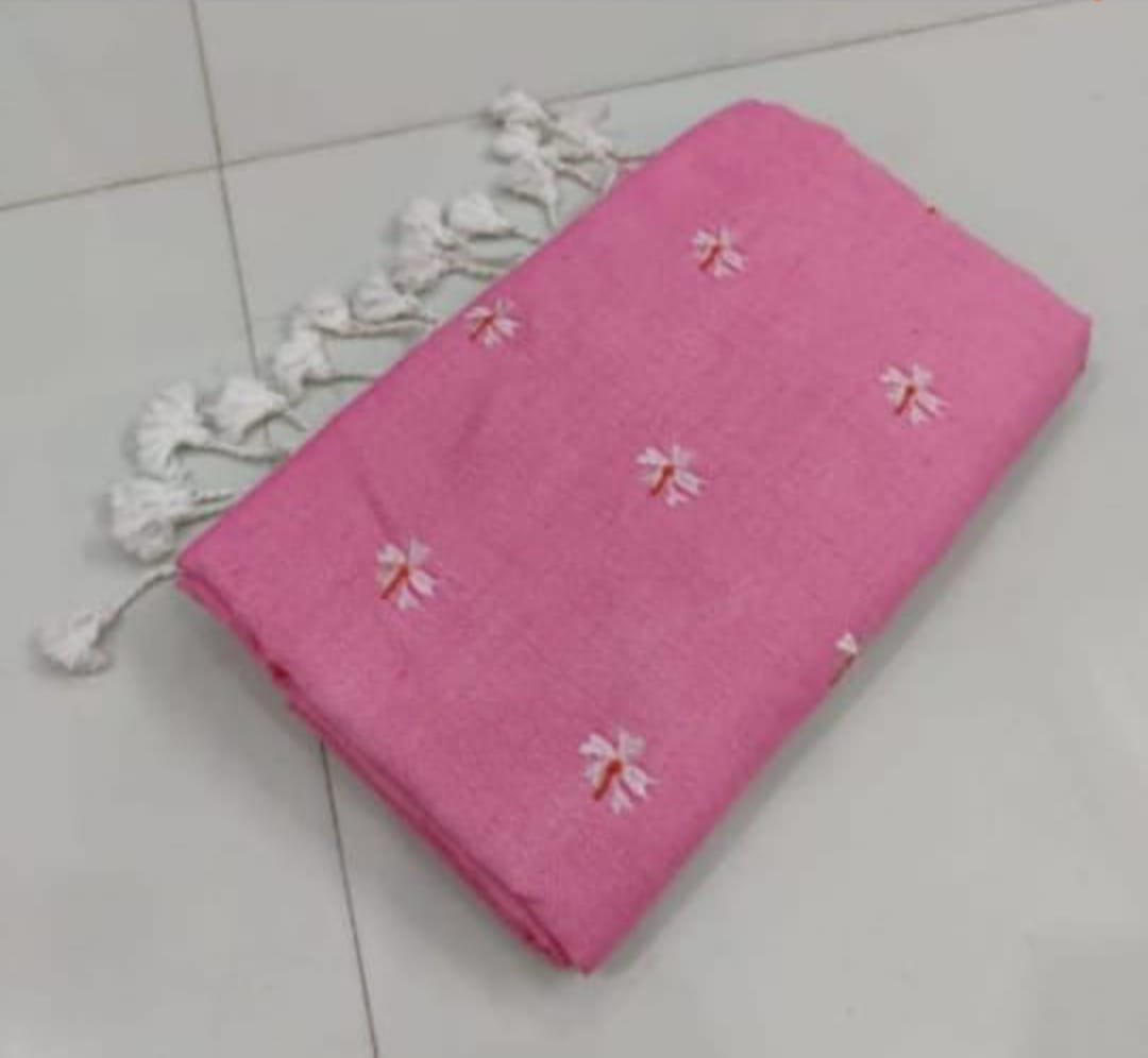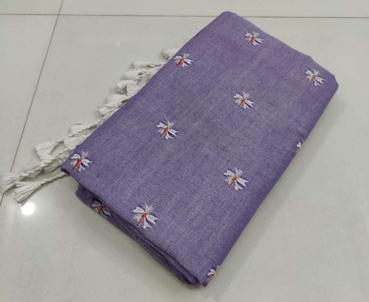 Beautiful elegant khadi cotton saree with parijatak flower embroidery design.
