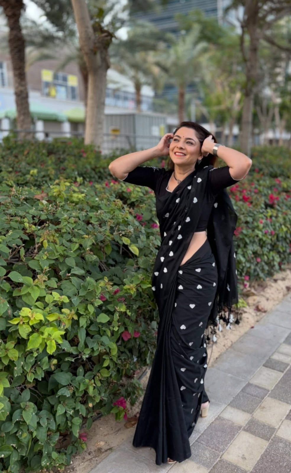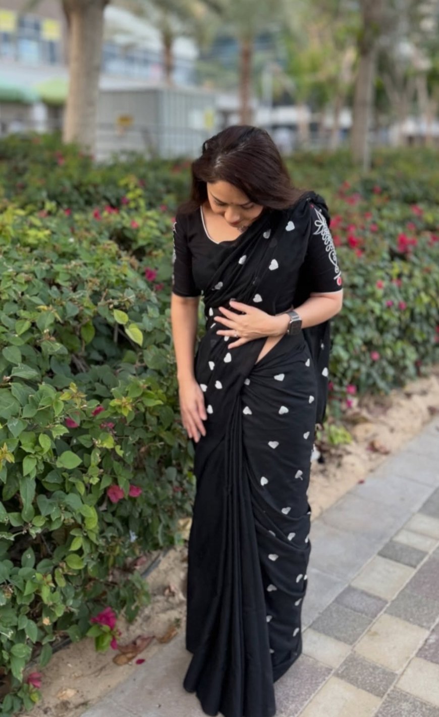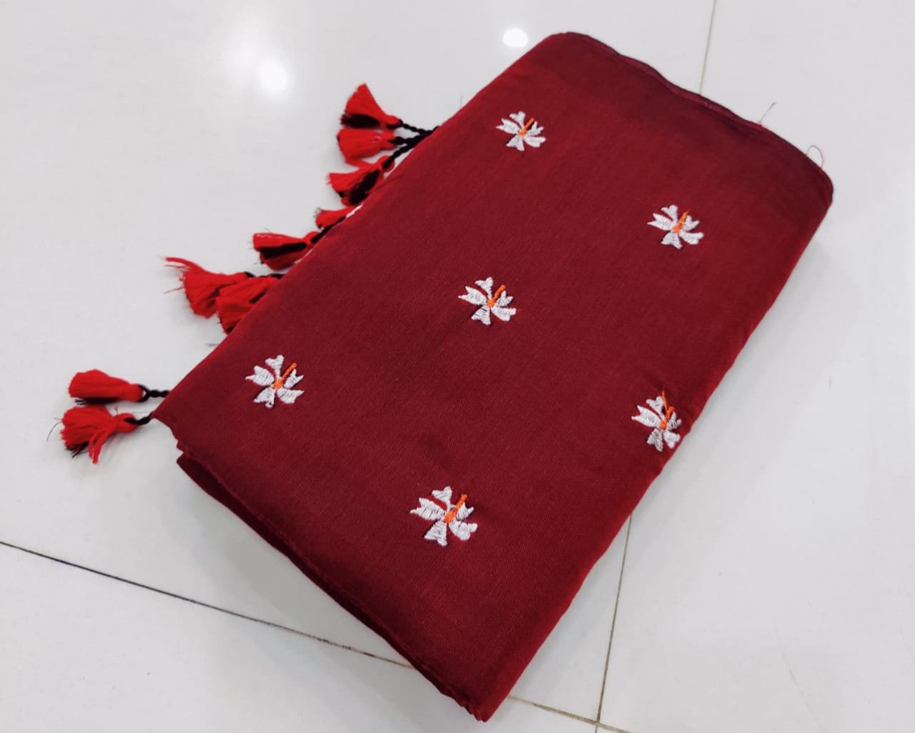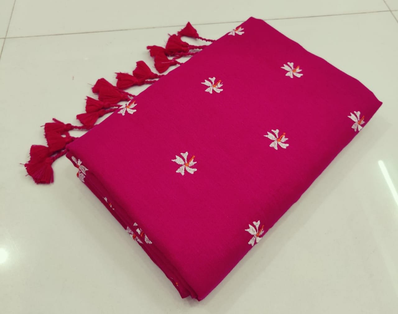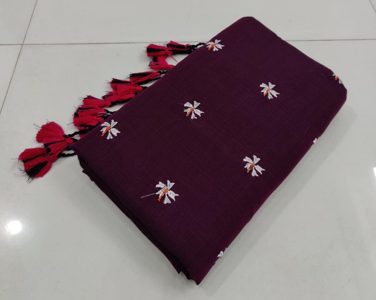 Beautiful elegant khadi cotton saree with parijatak flower embroidery design.