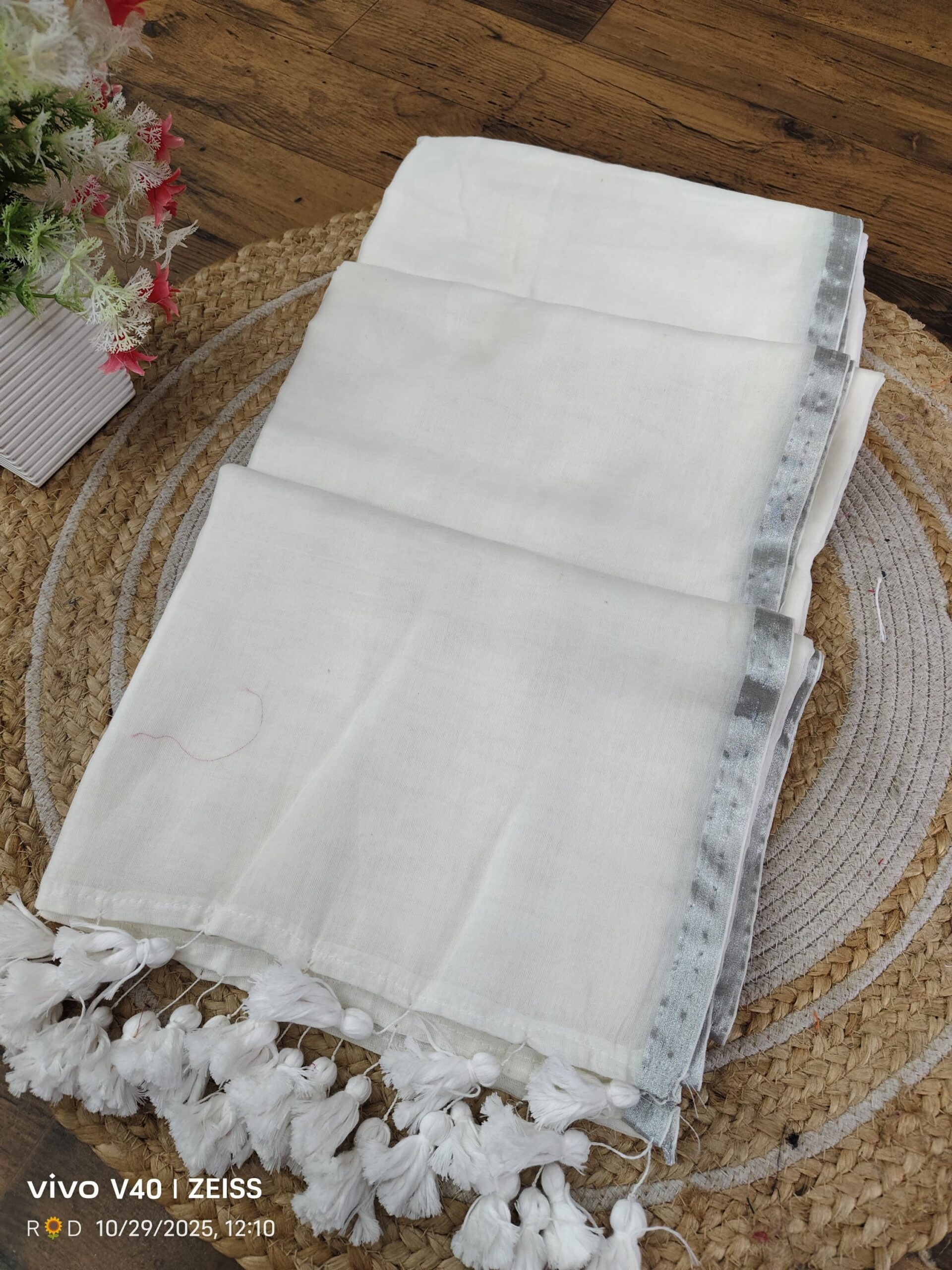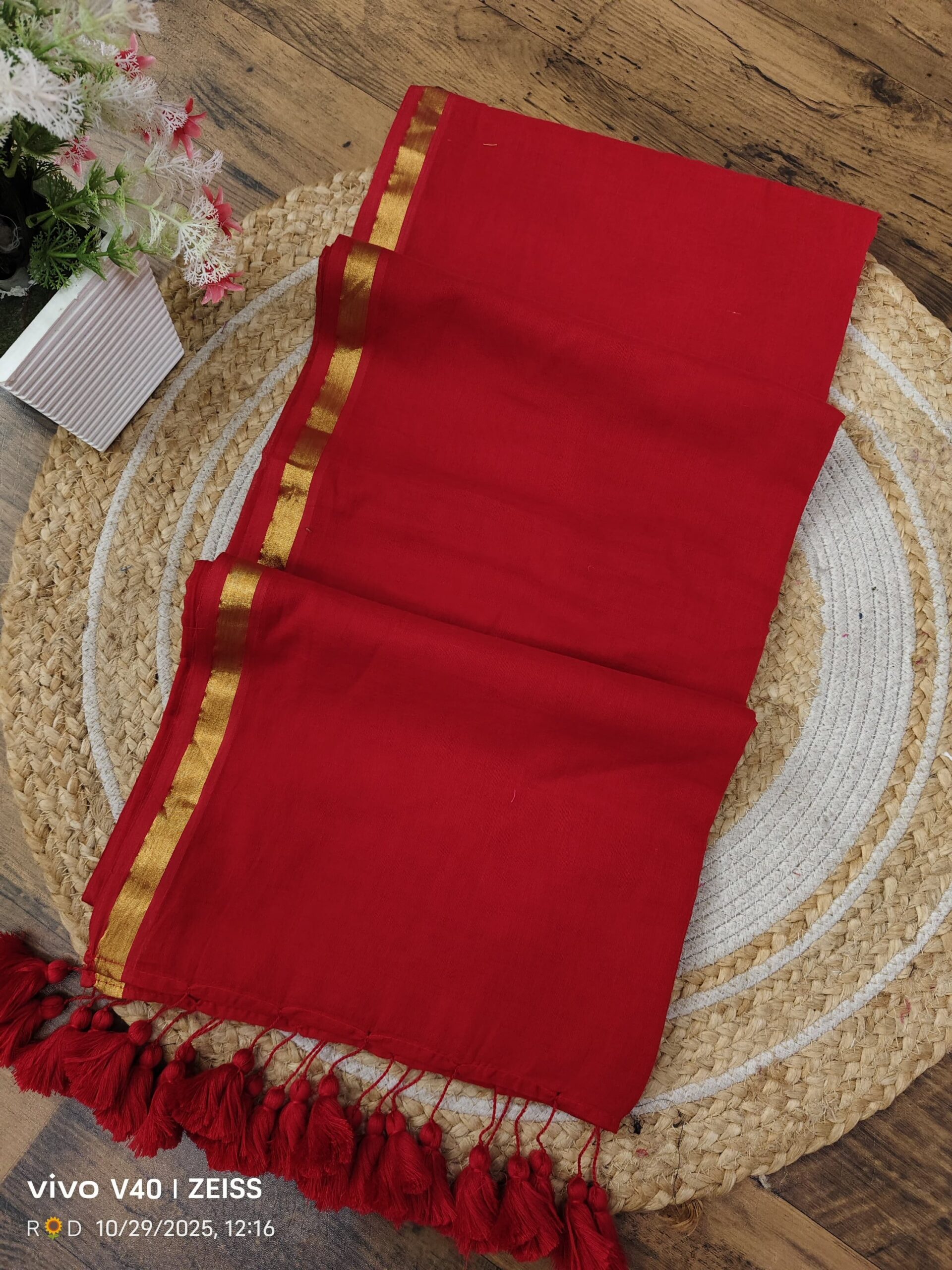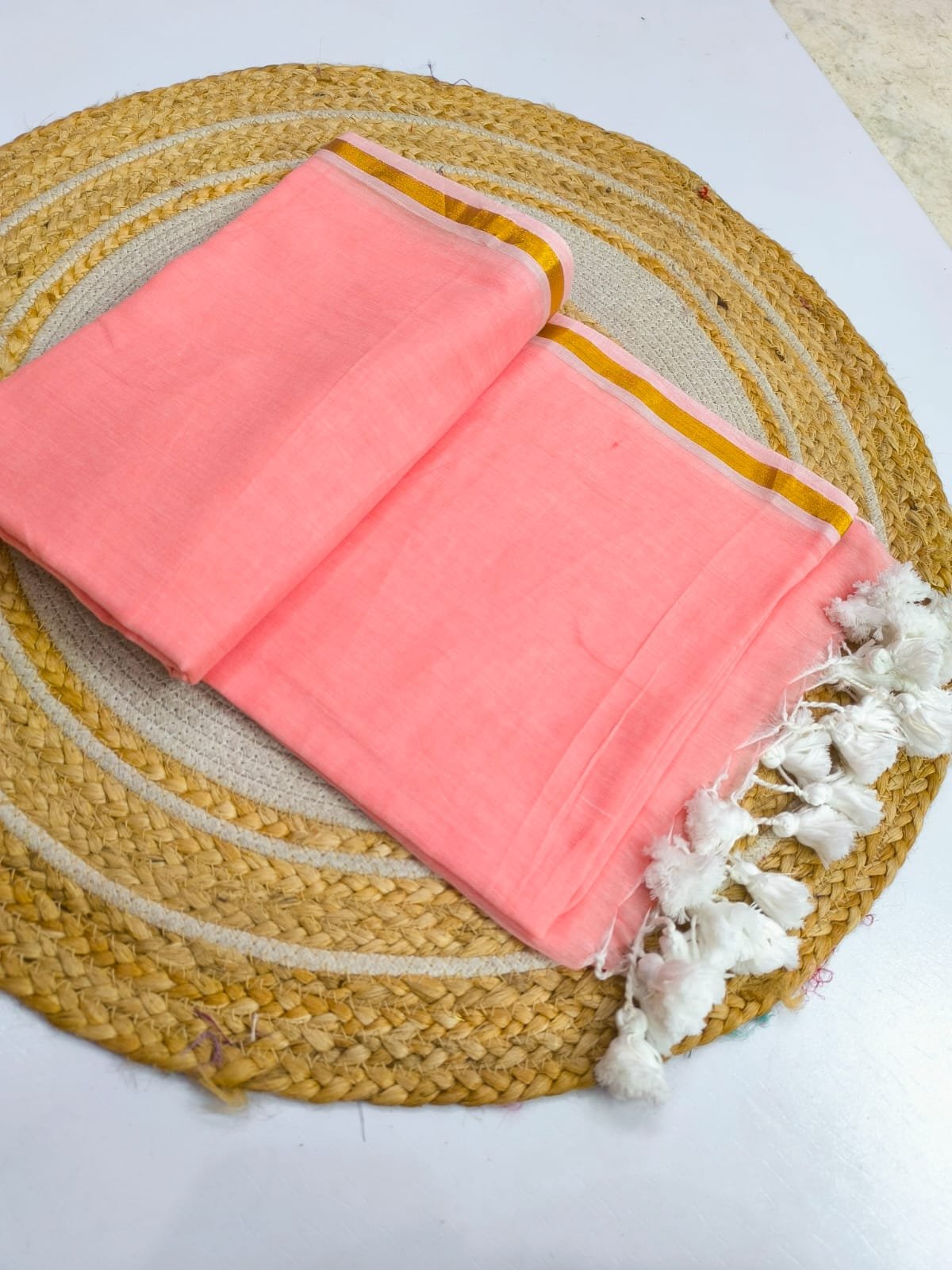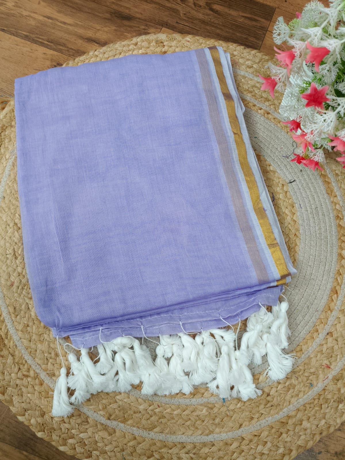 pure Mul cotton Saree with small golden jari border 5.5 mtr