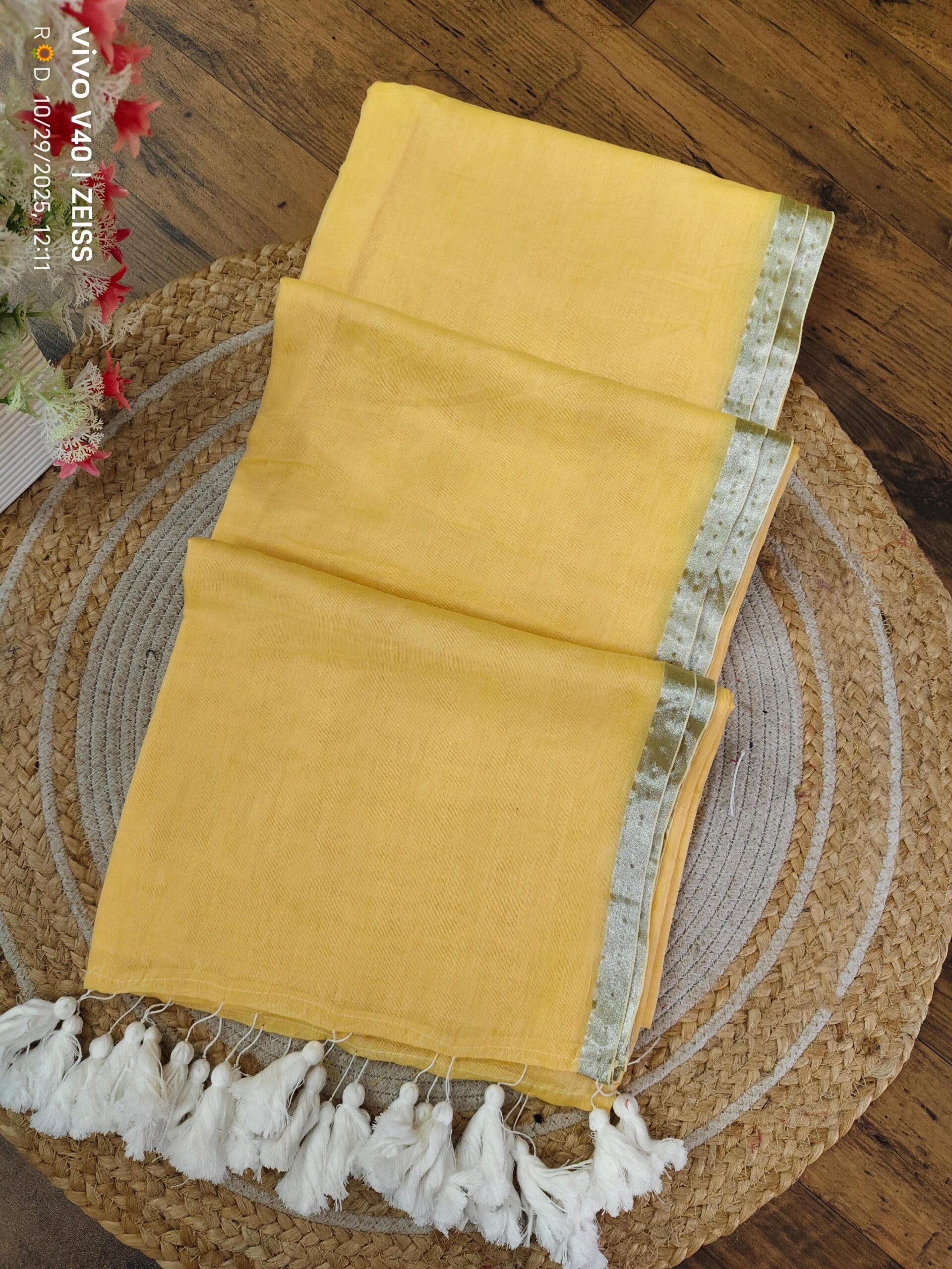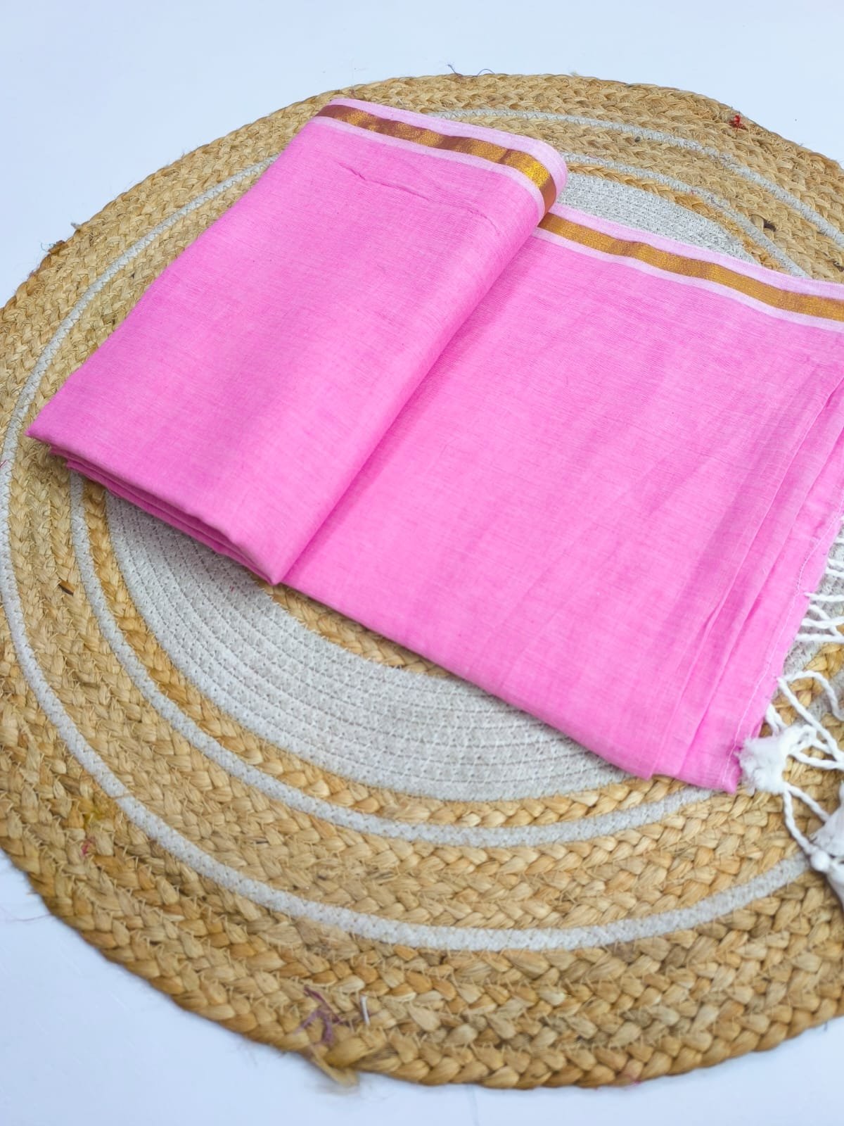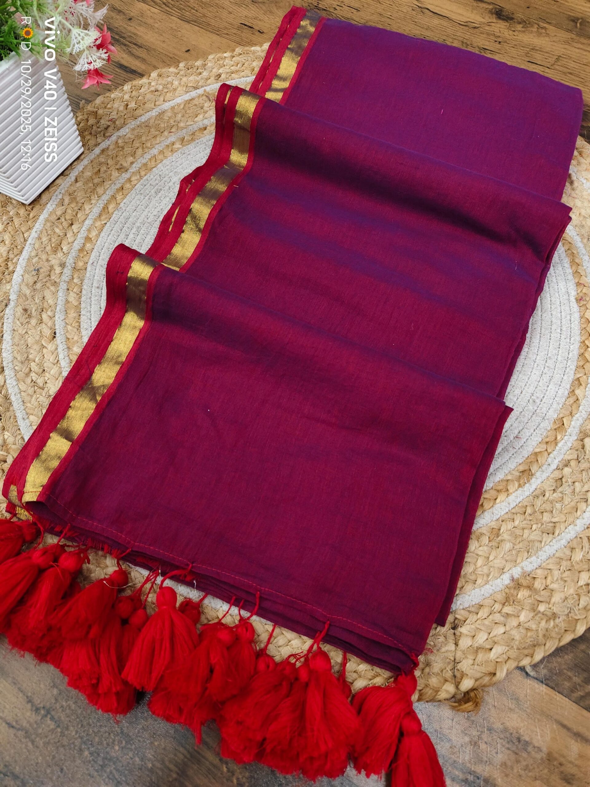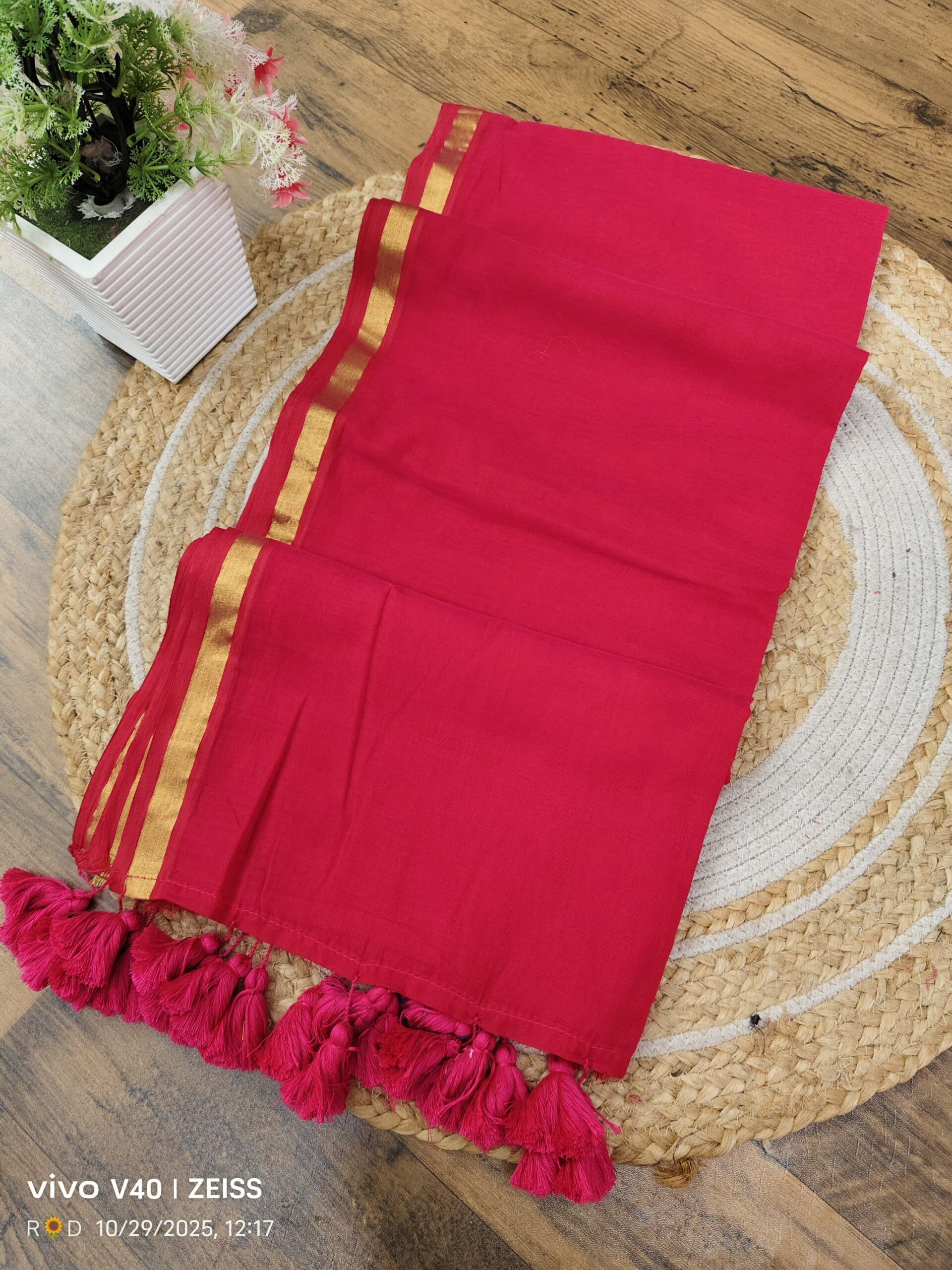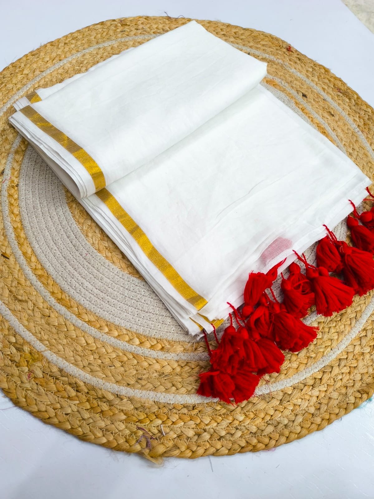 pure Mul cotton Saree with small golden jari border 5.5 mtr