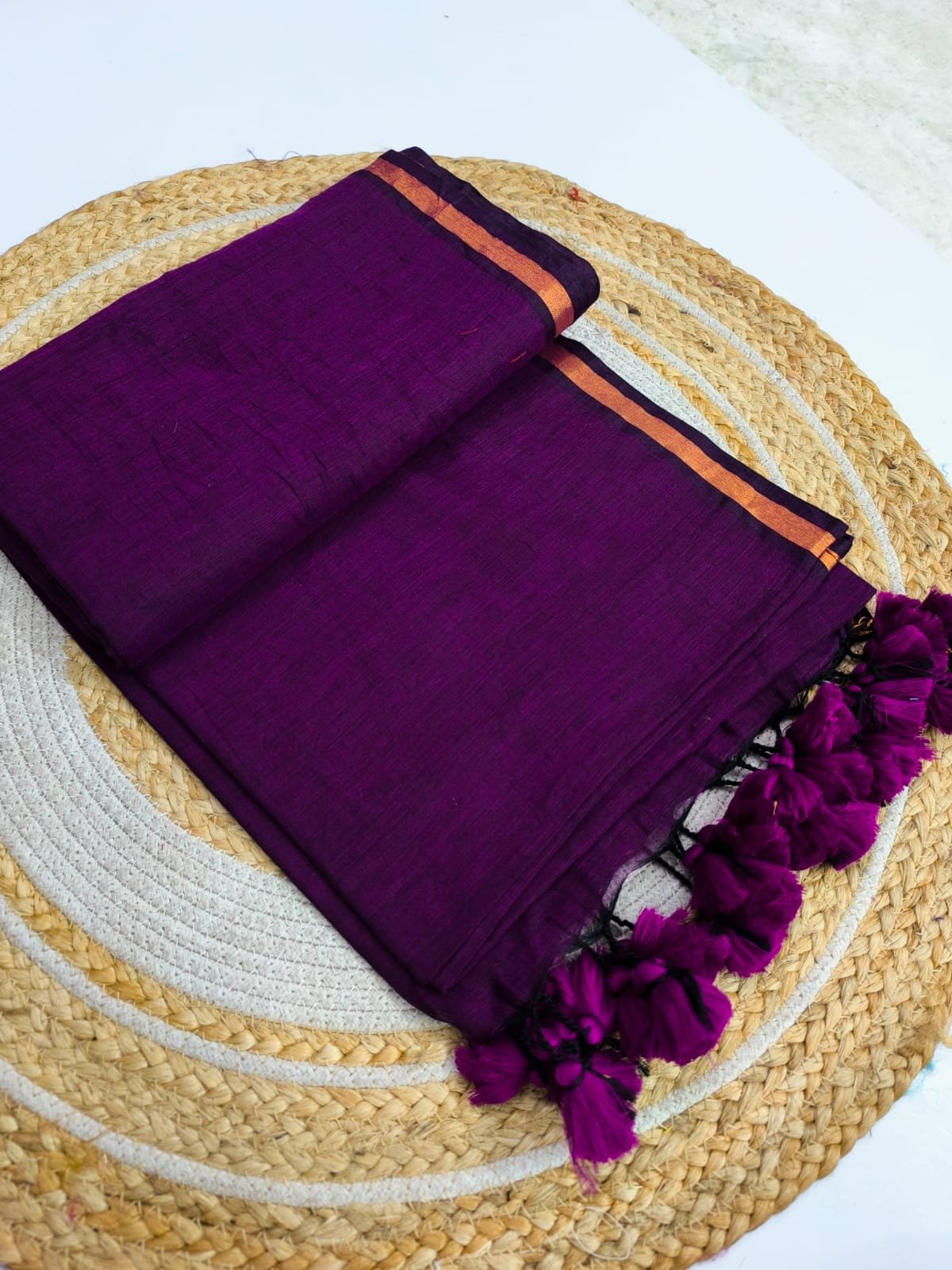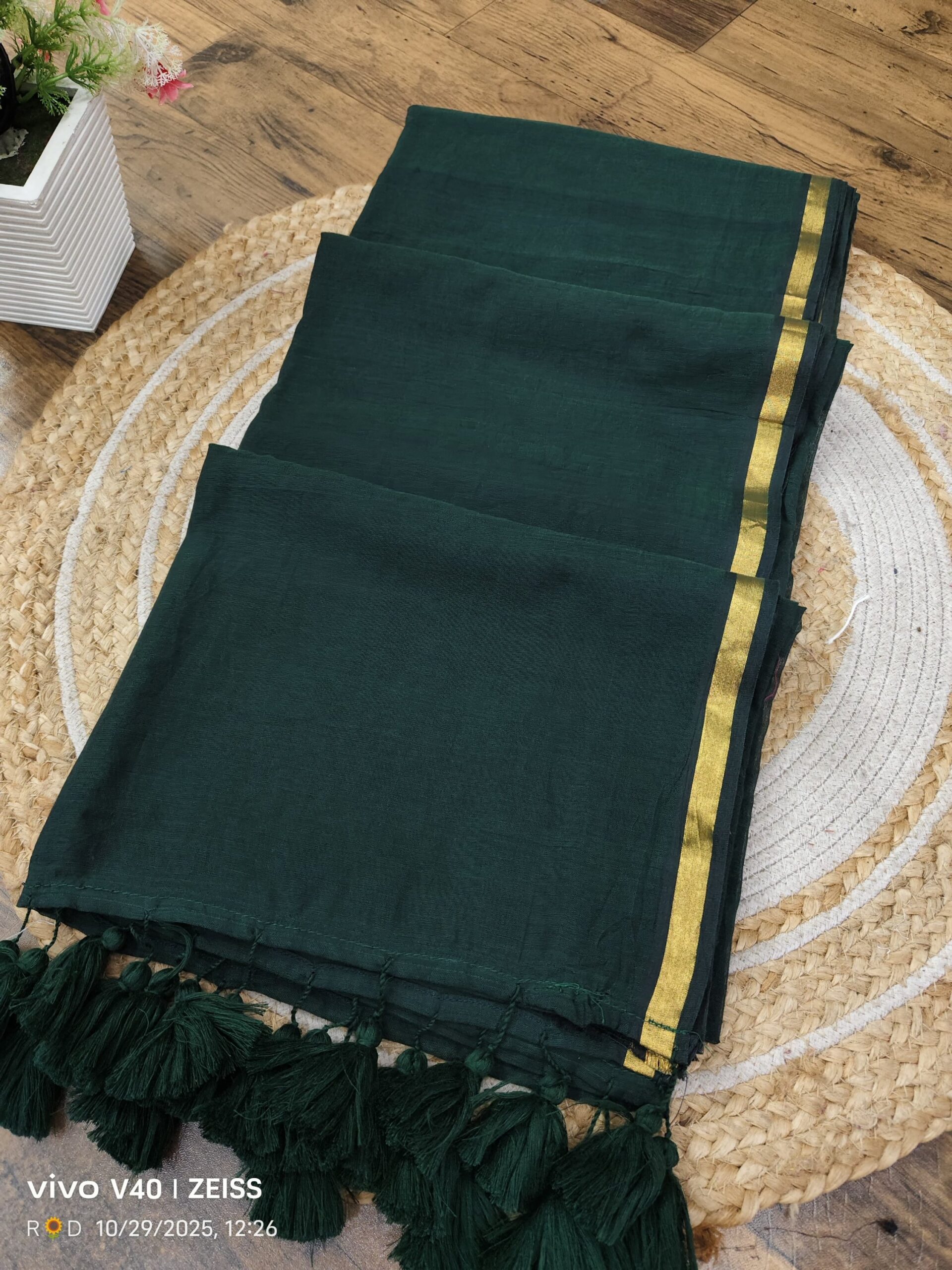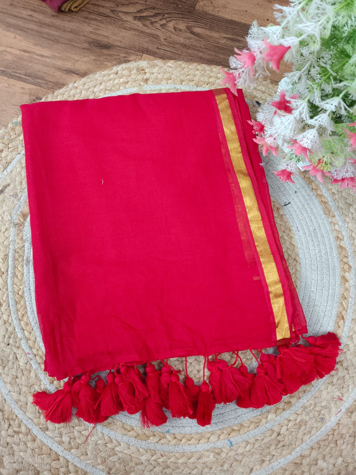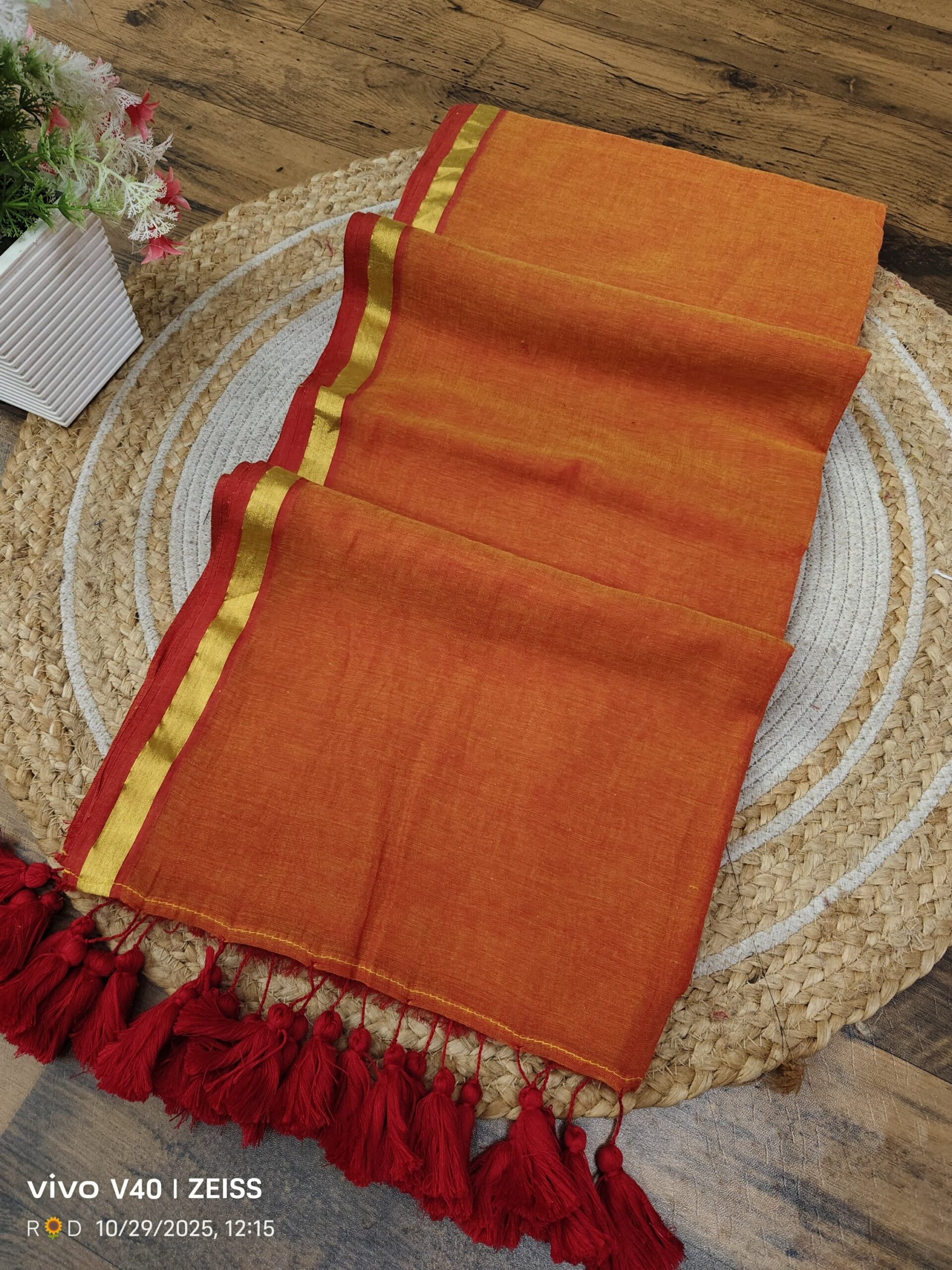 pure Mul cotton Saree with small golden jari border 5.5 mtr