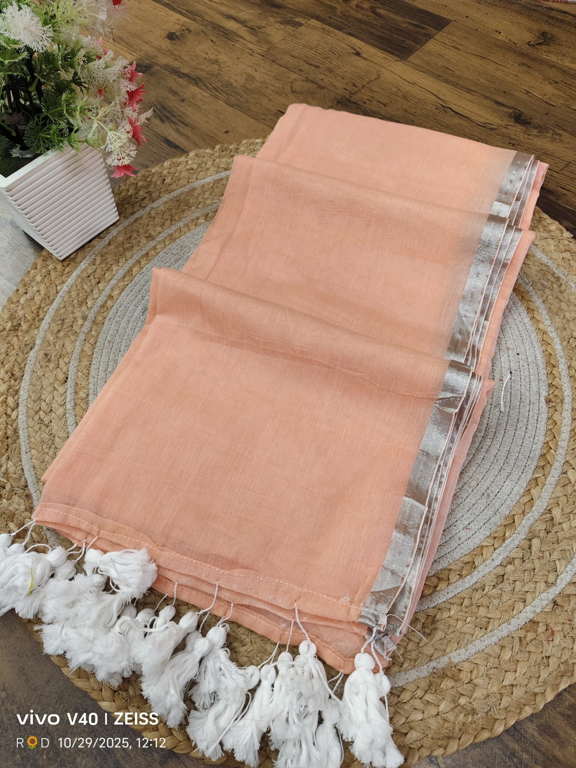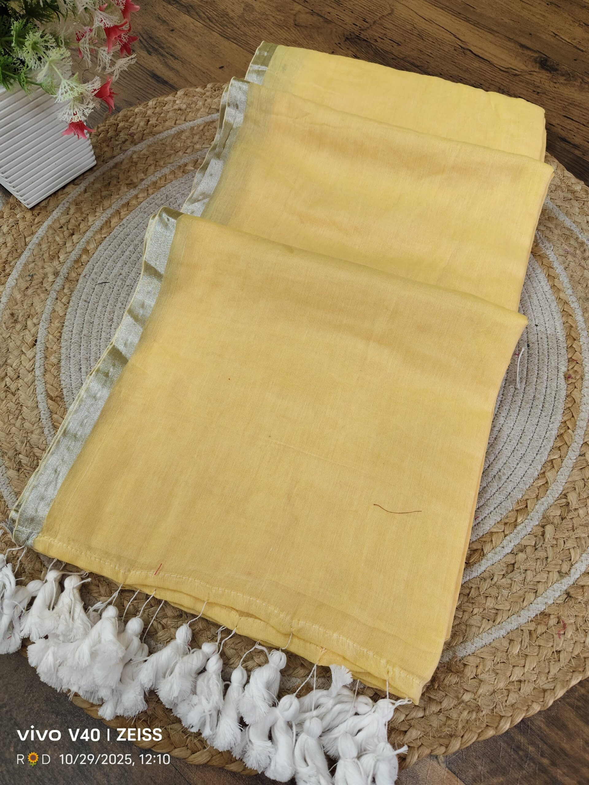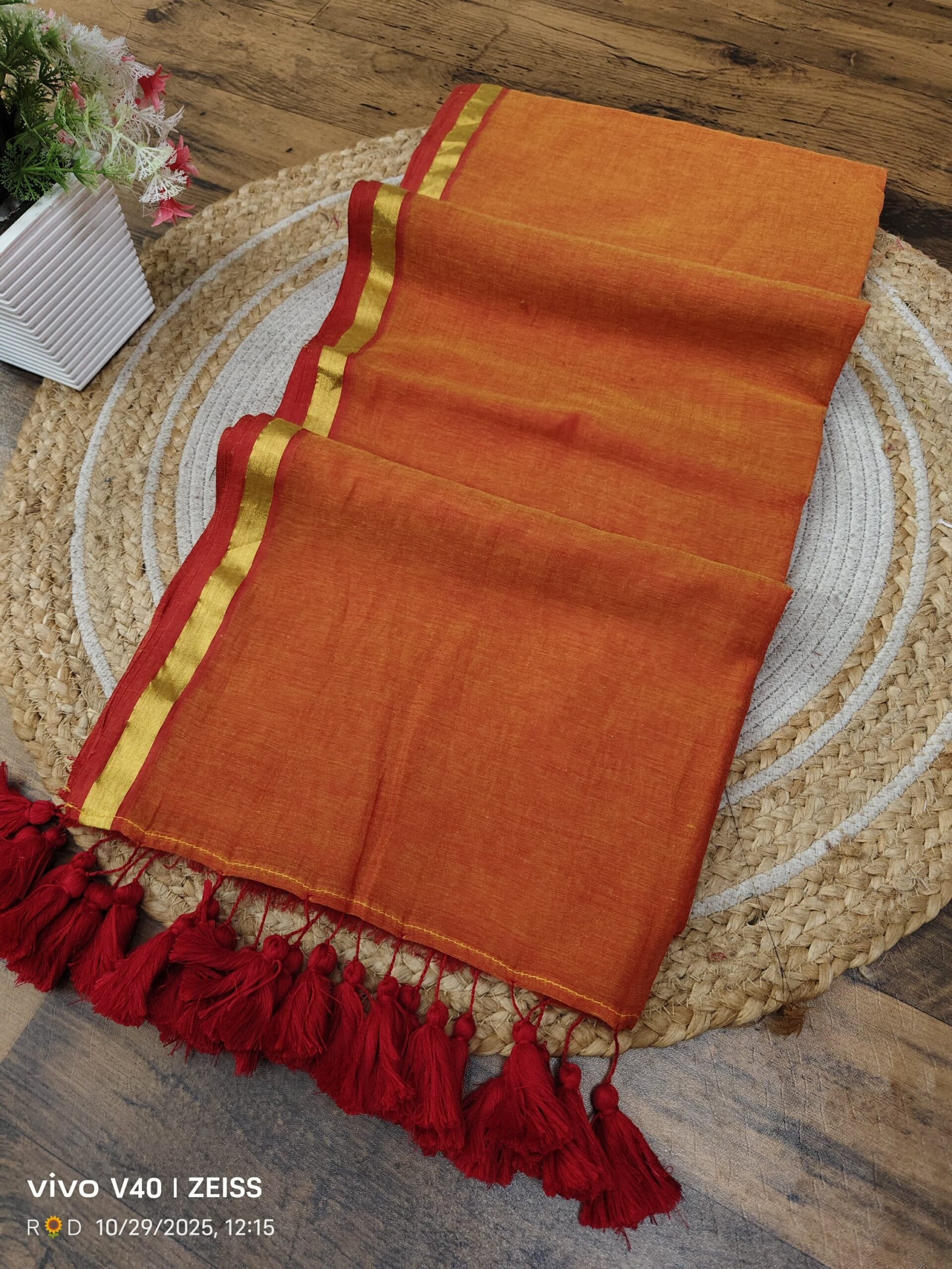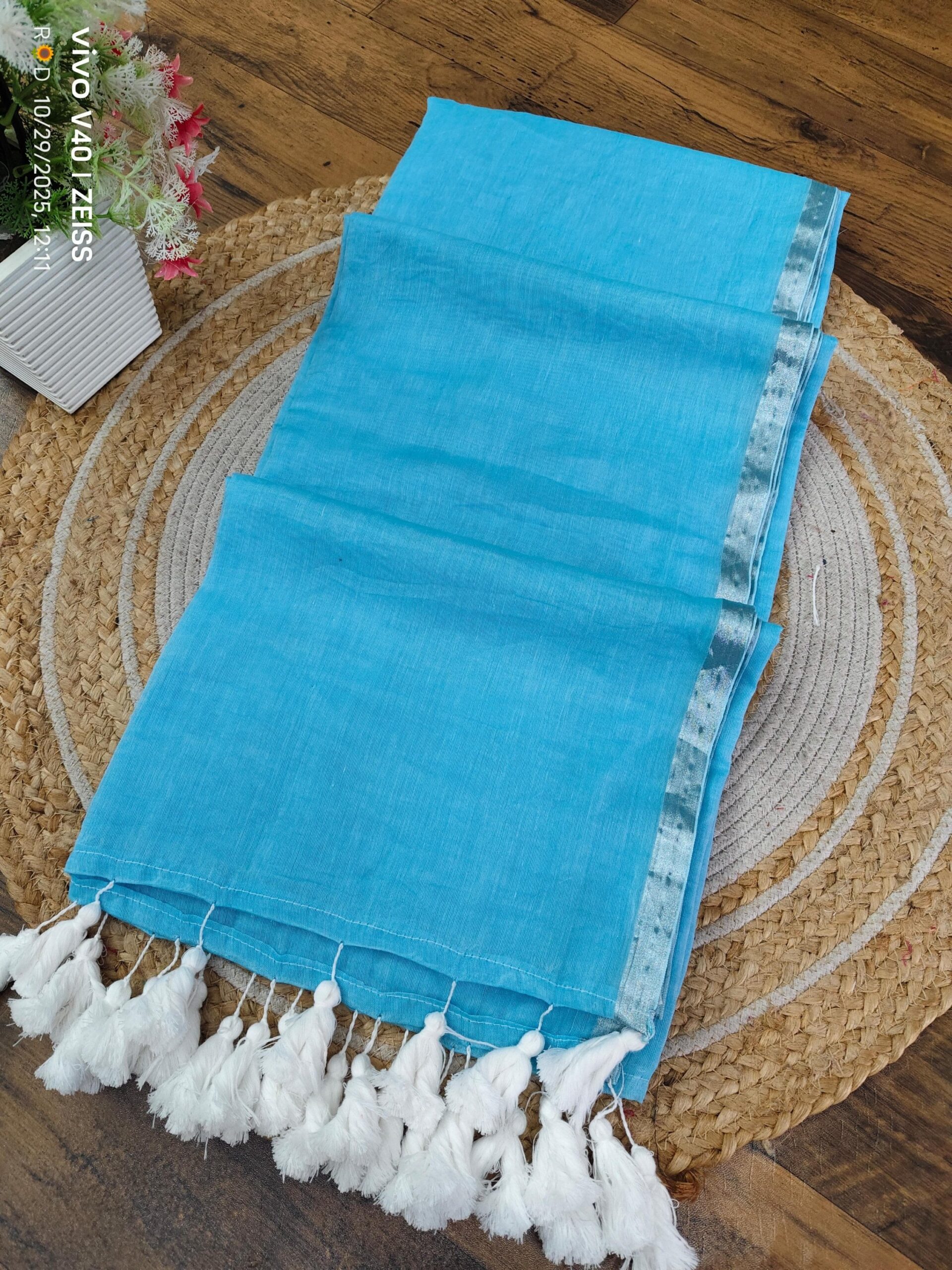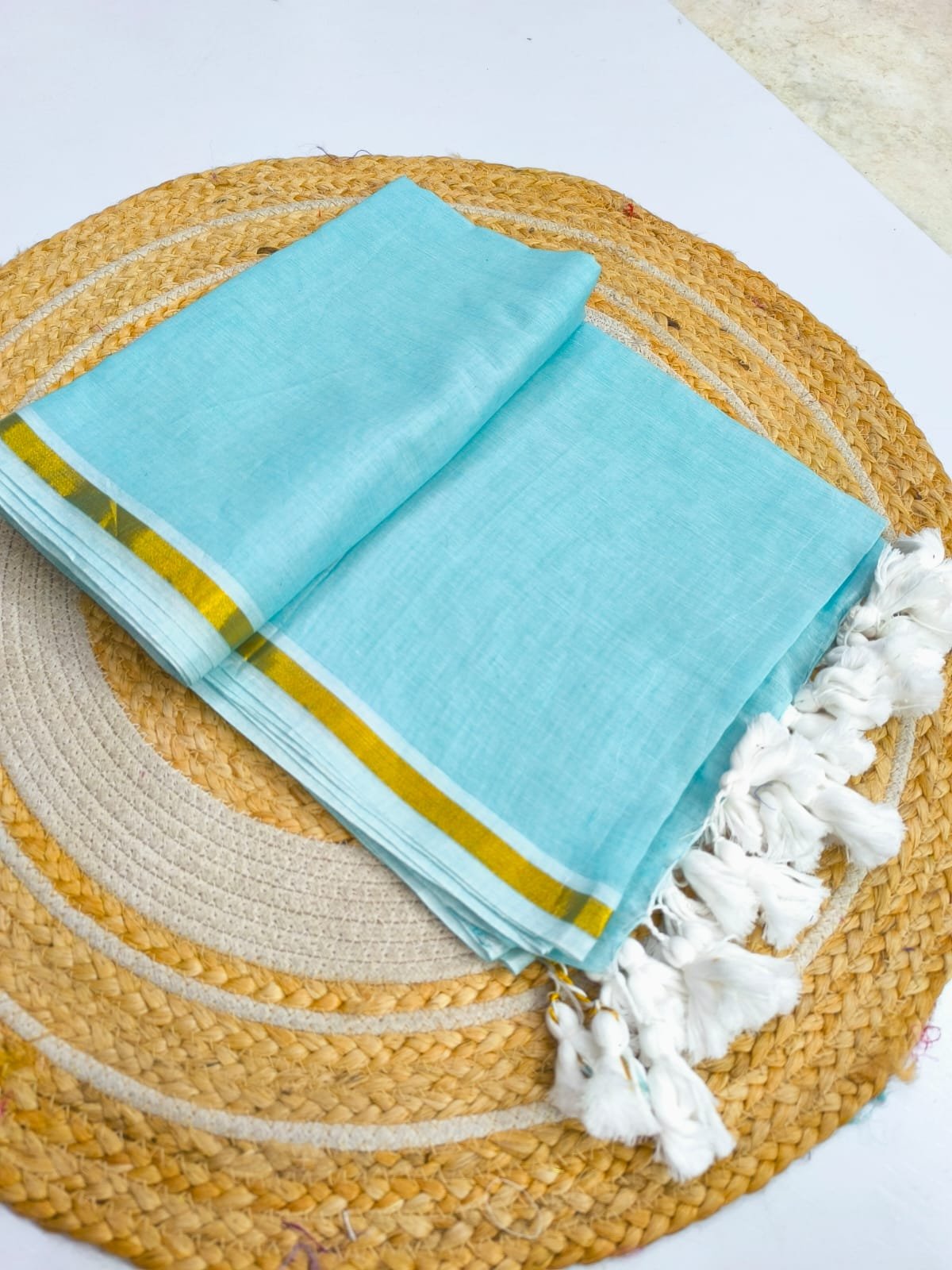 pure Mul cotton Saree with small golden jari border 5.5 mtr