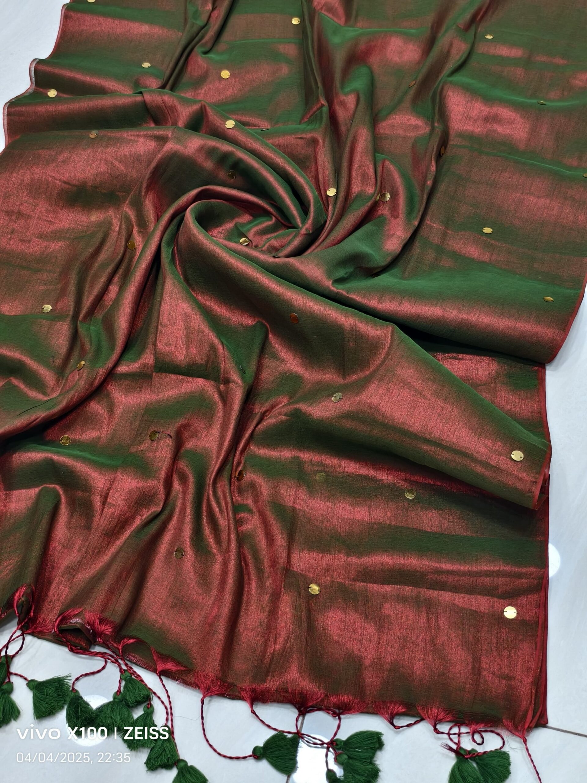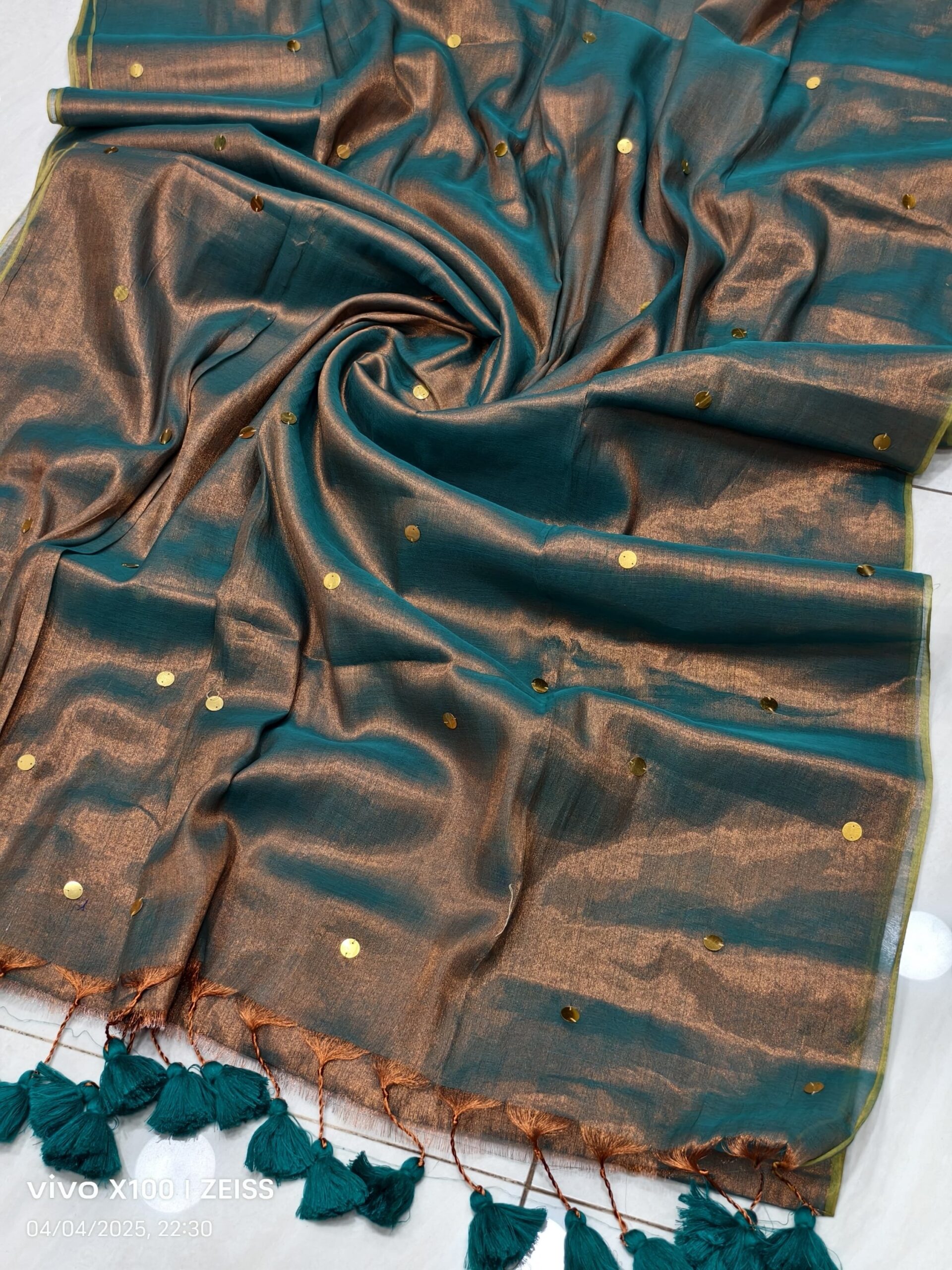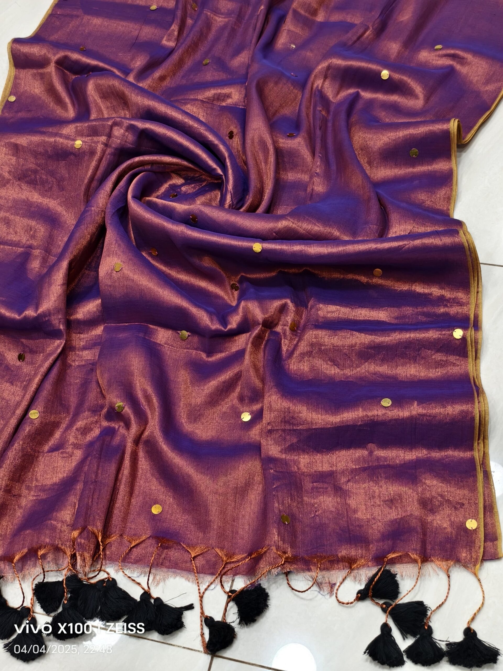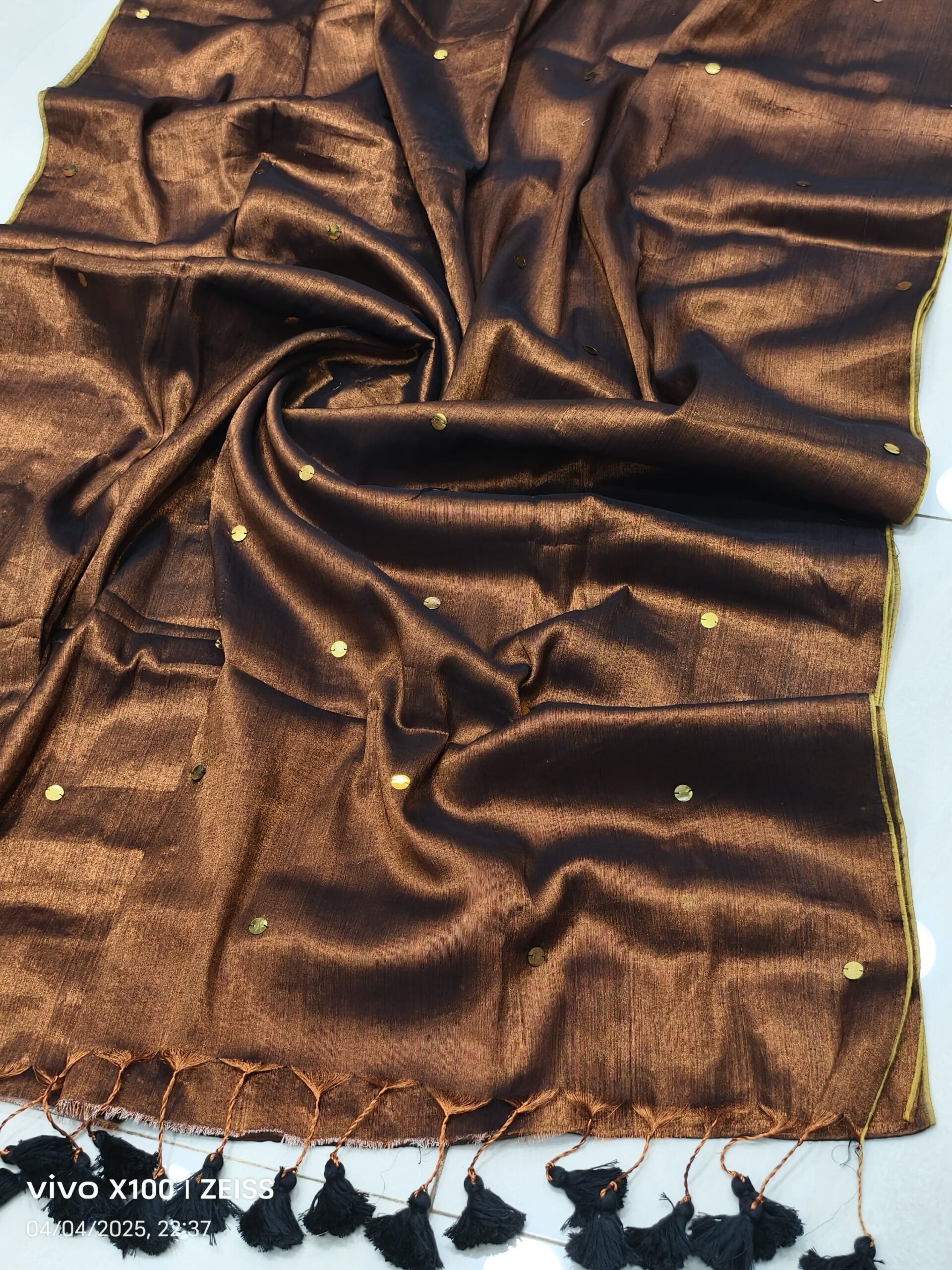 soft elegant shiny tissue silk saree with golden ginni