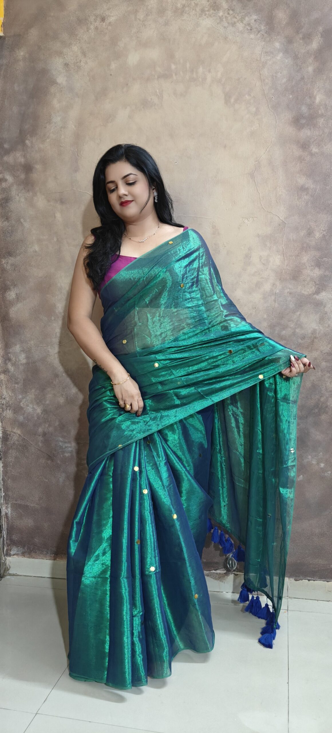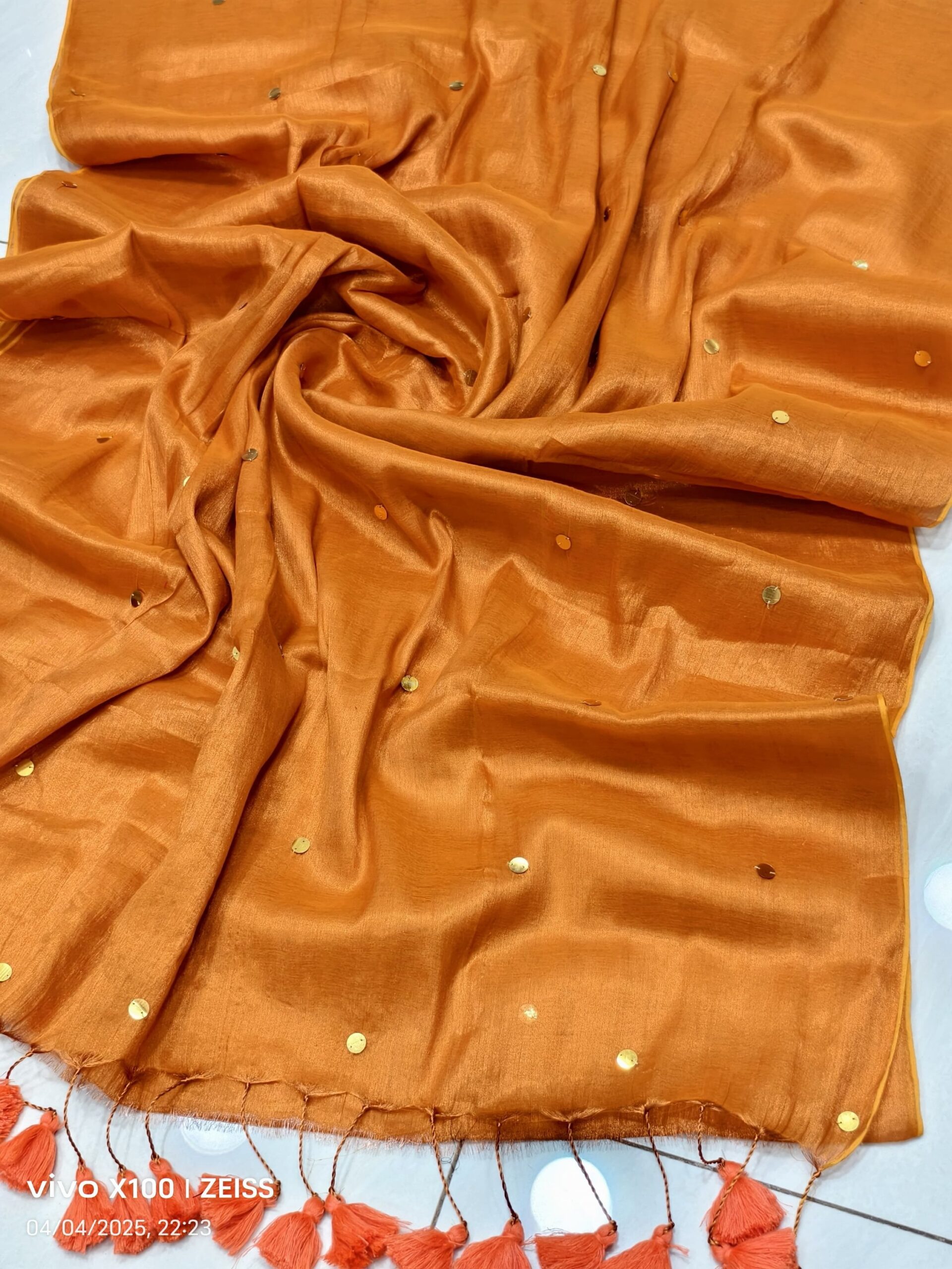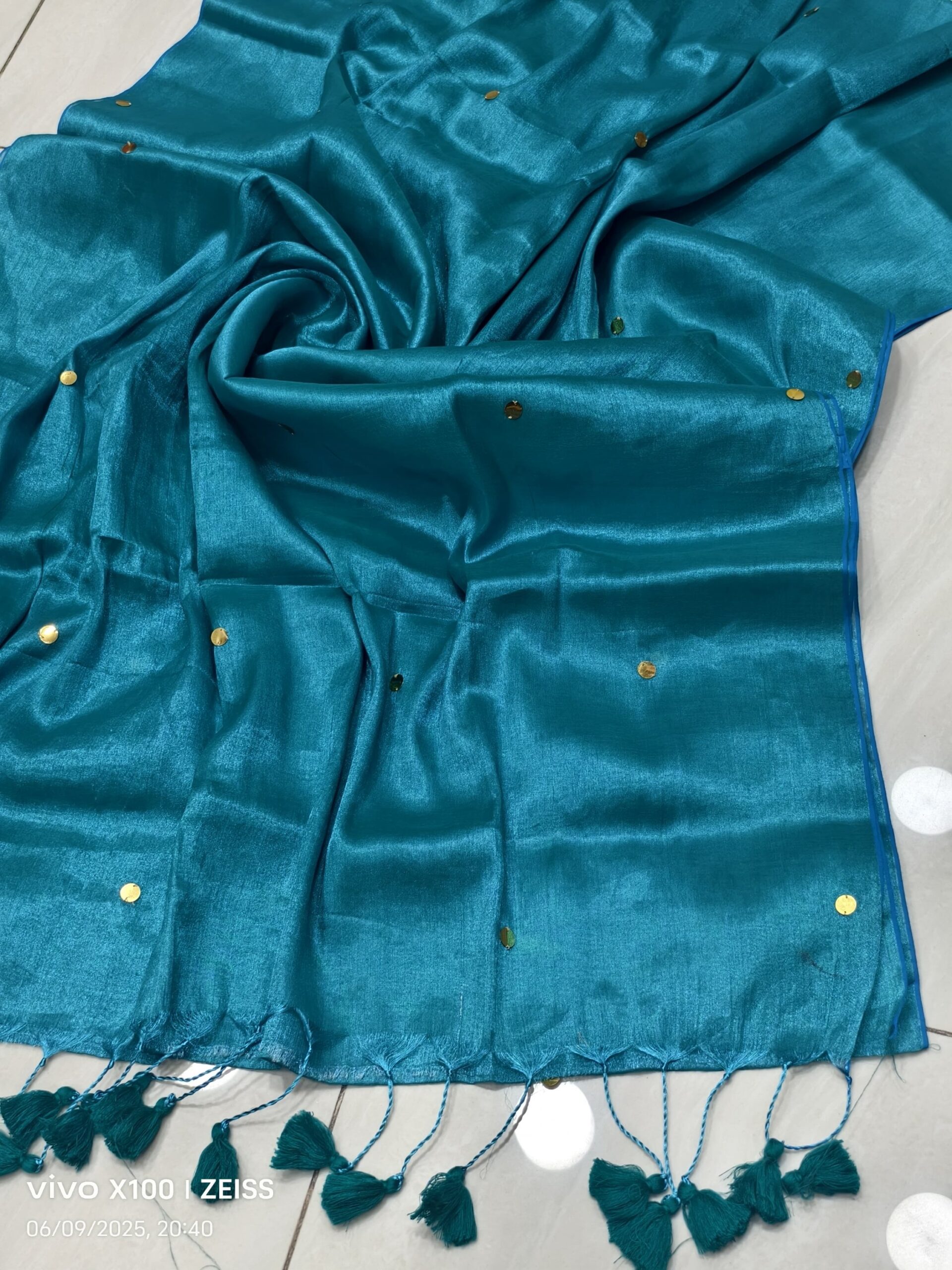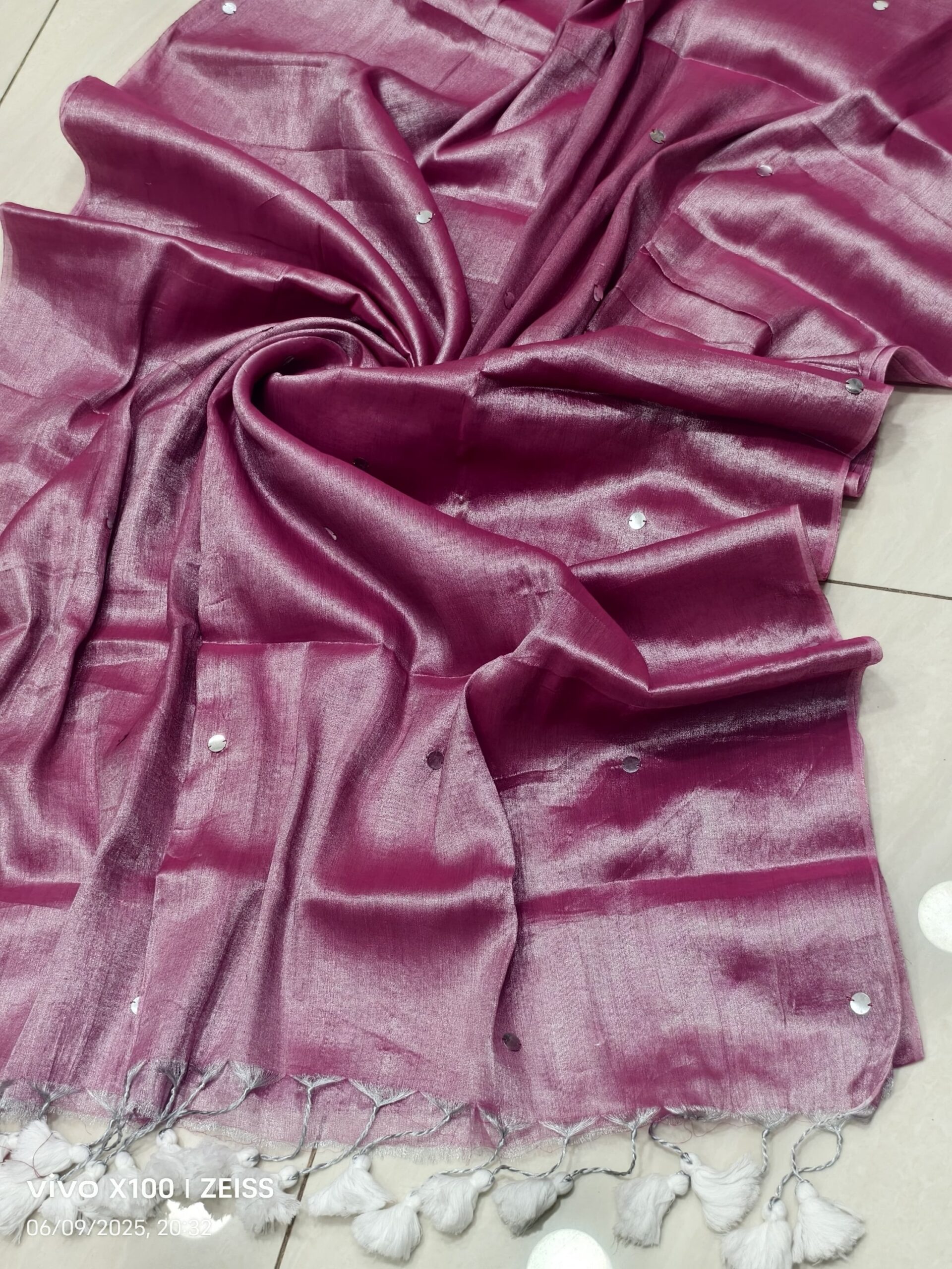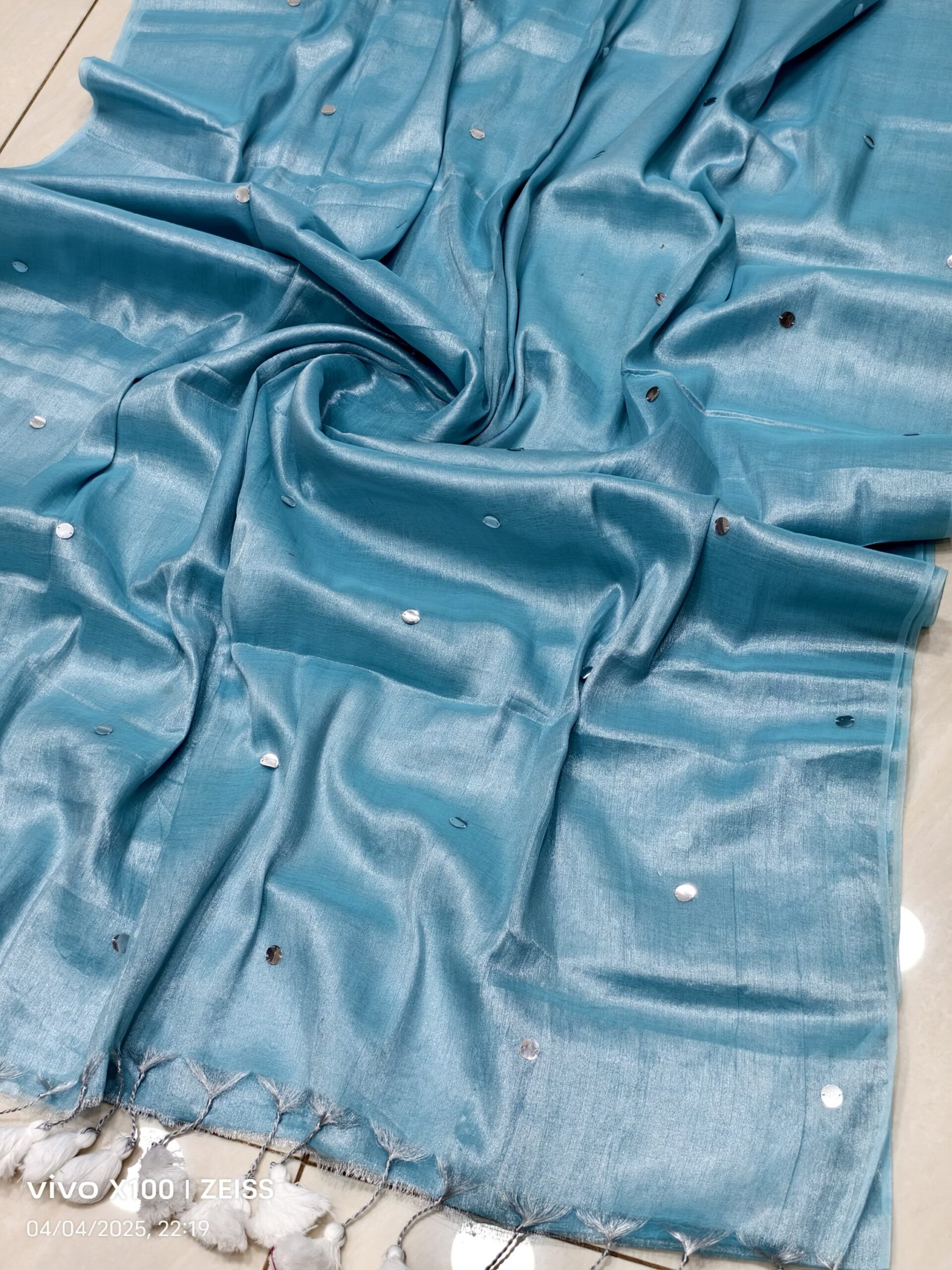 soft elegant shiny tissue silk saree with golden ginni