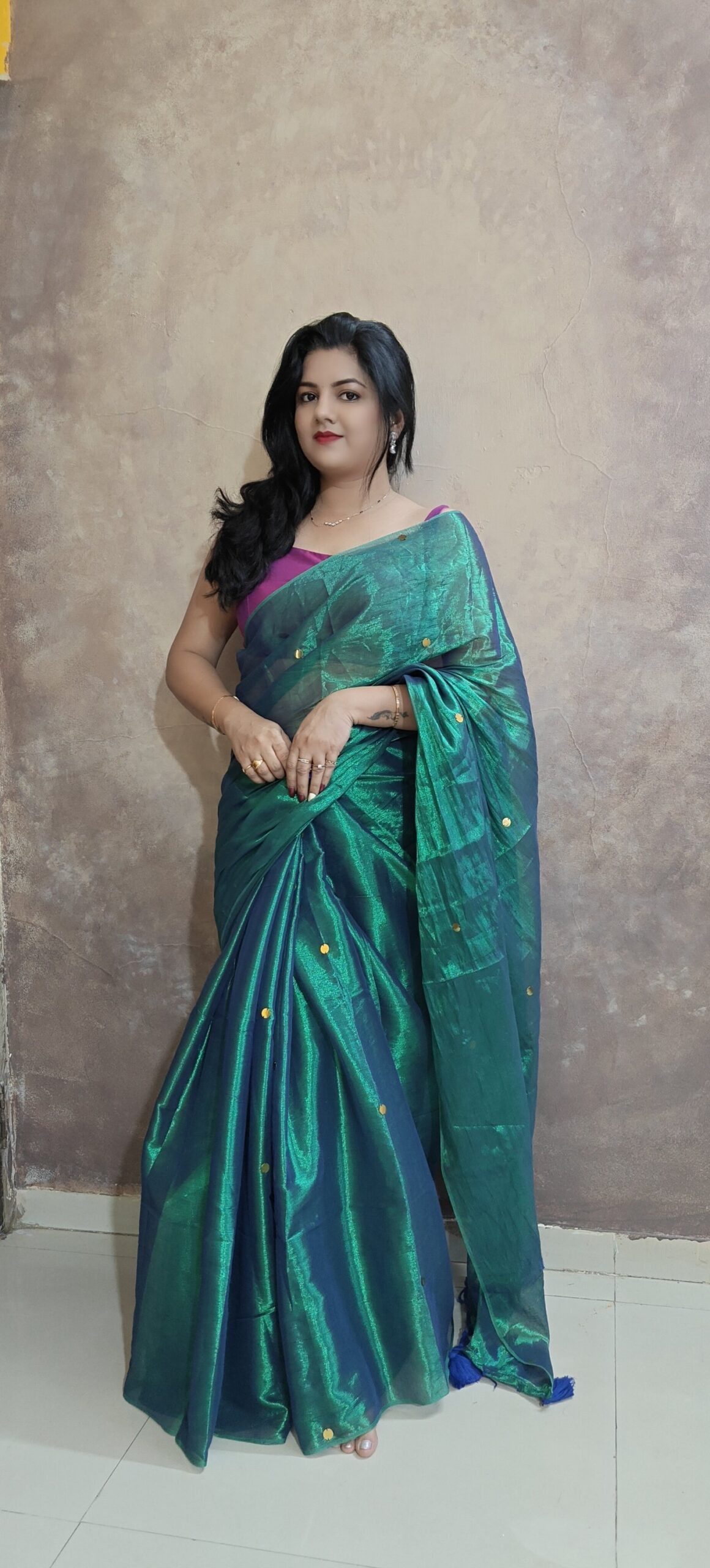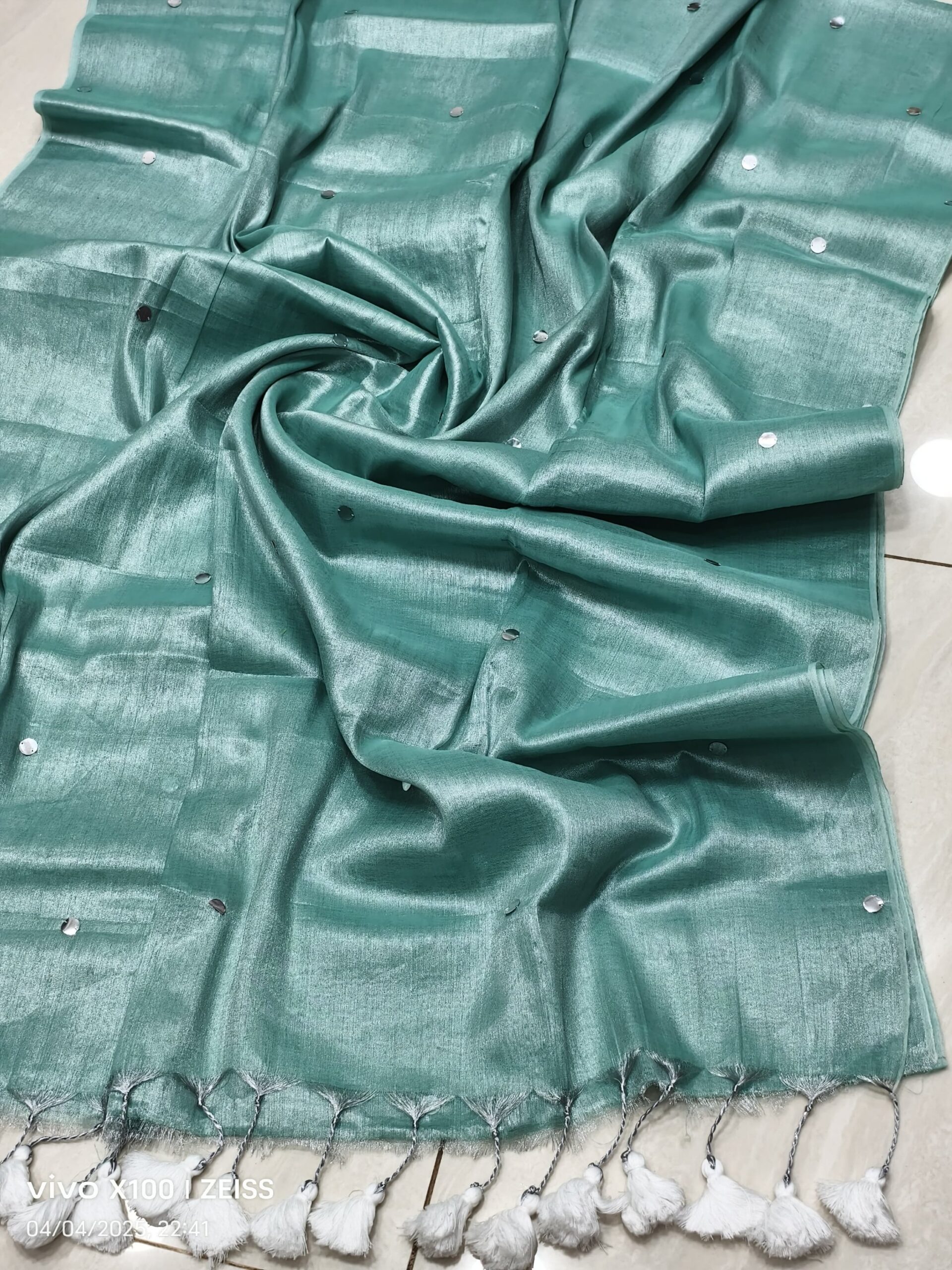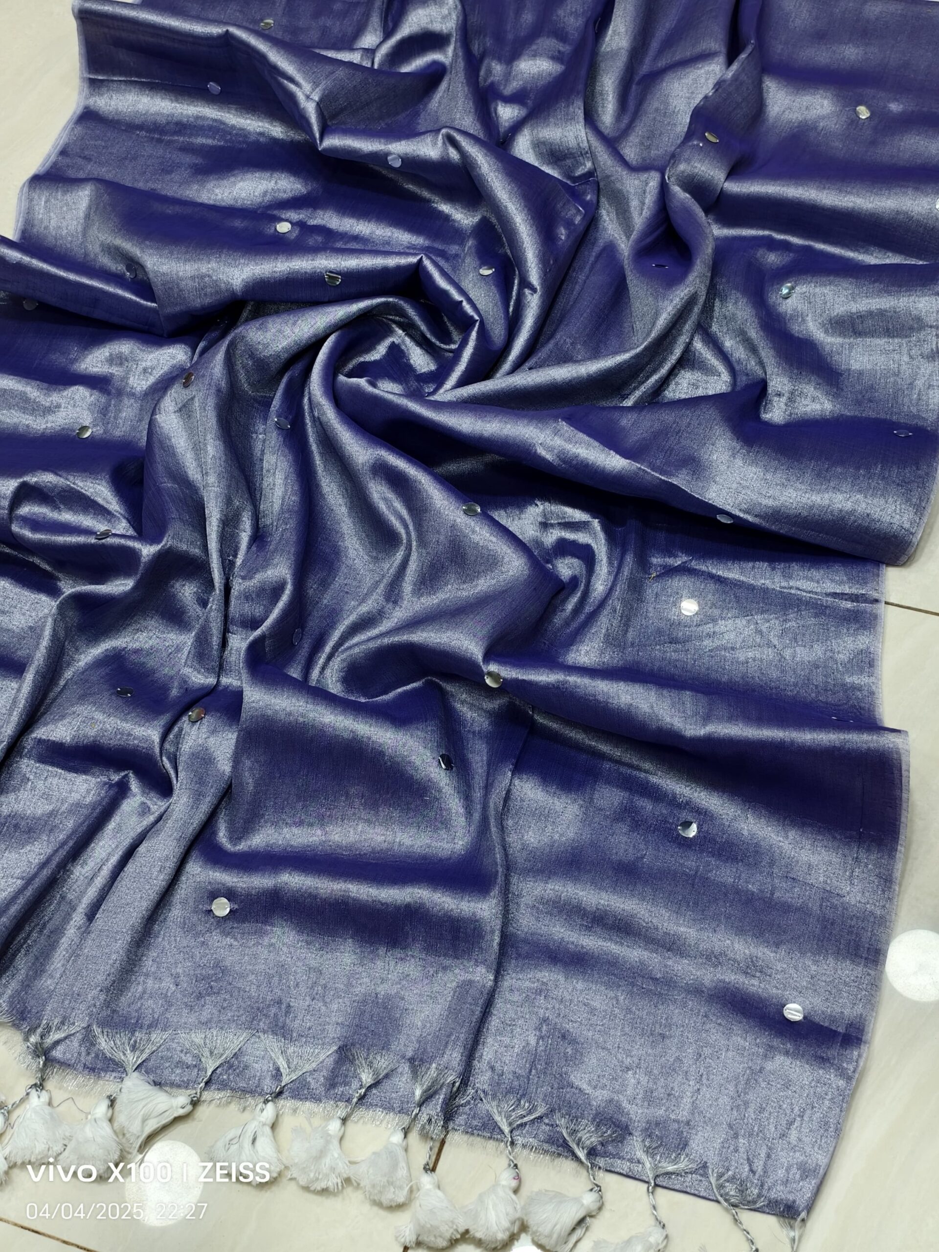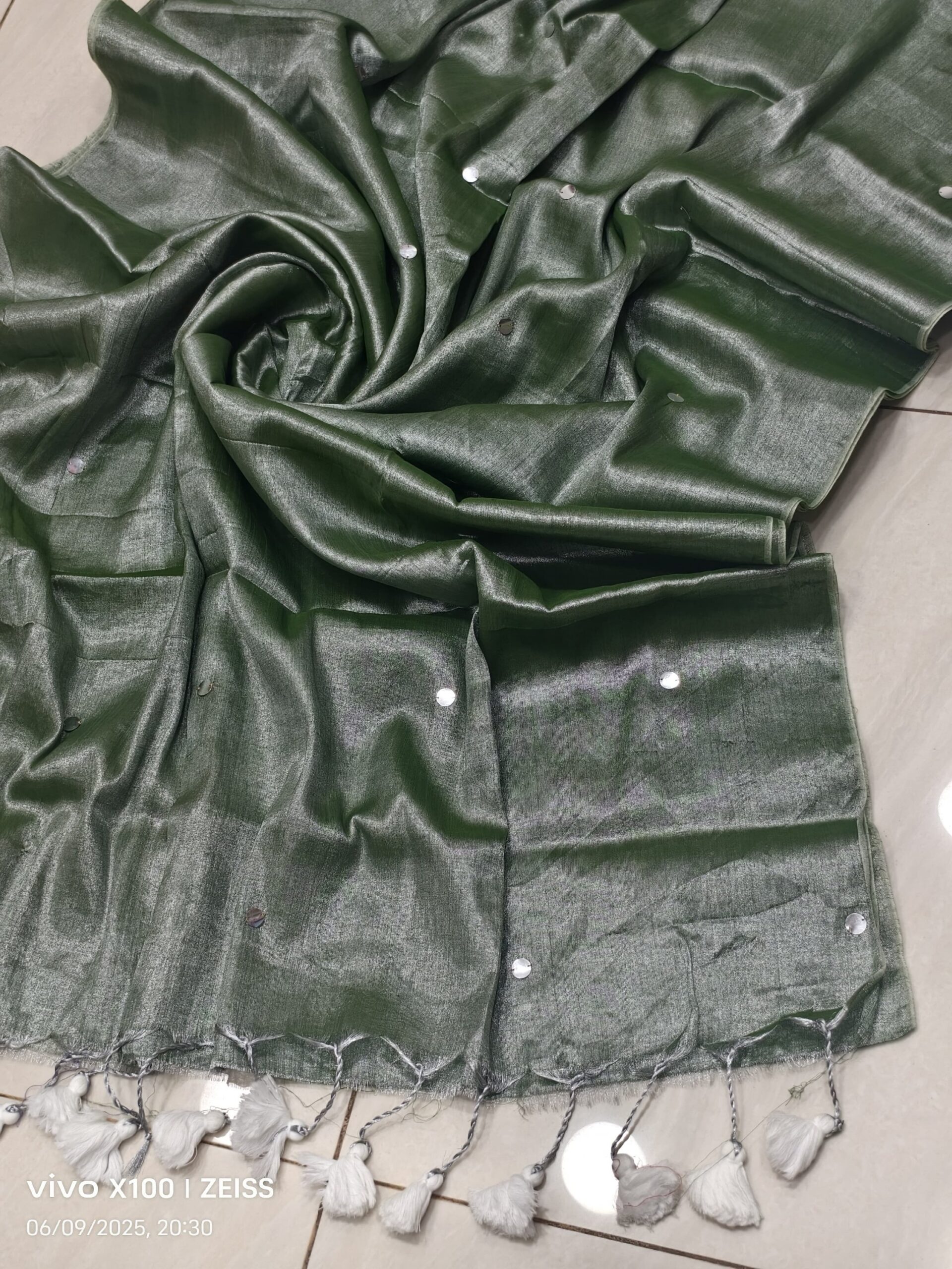 soft elegant shiny tissue silk saree with golden ginni